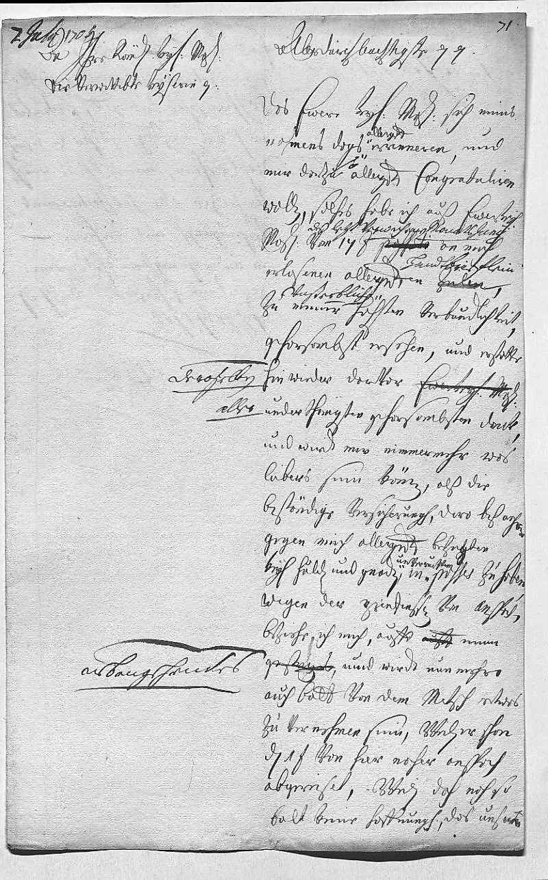 Dankt für die Namenstagsgrüße. – Verweist wegen der Prinzessin von Ansbach auf sein beiliegendes Schreiben und erwartet bald Nachrichten vom Metsch. – Denkt, dass seine Schwester (Hedwig Elisabeth), die Prinzessin in Polen, gut daran tut, ihren Gemahl zu besuchen.