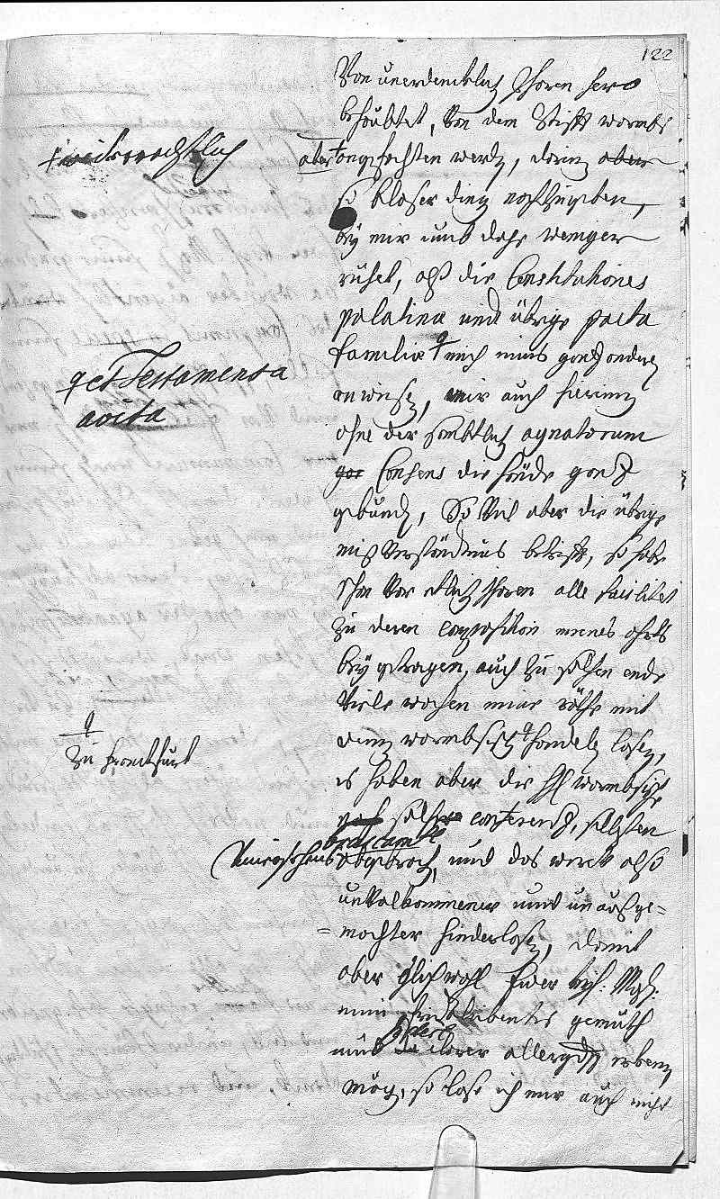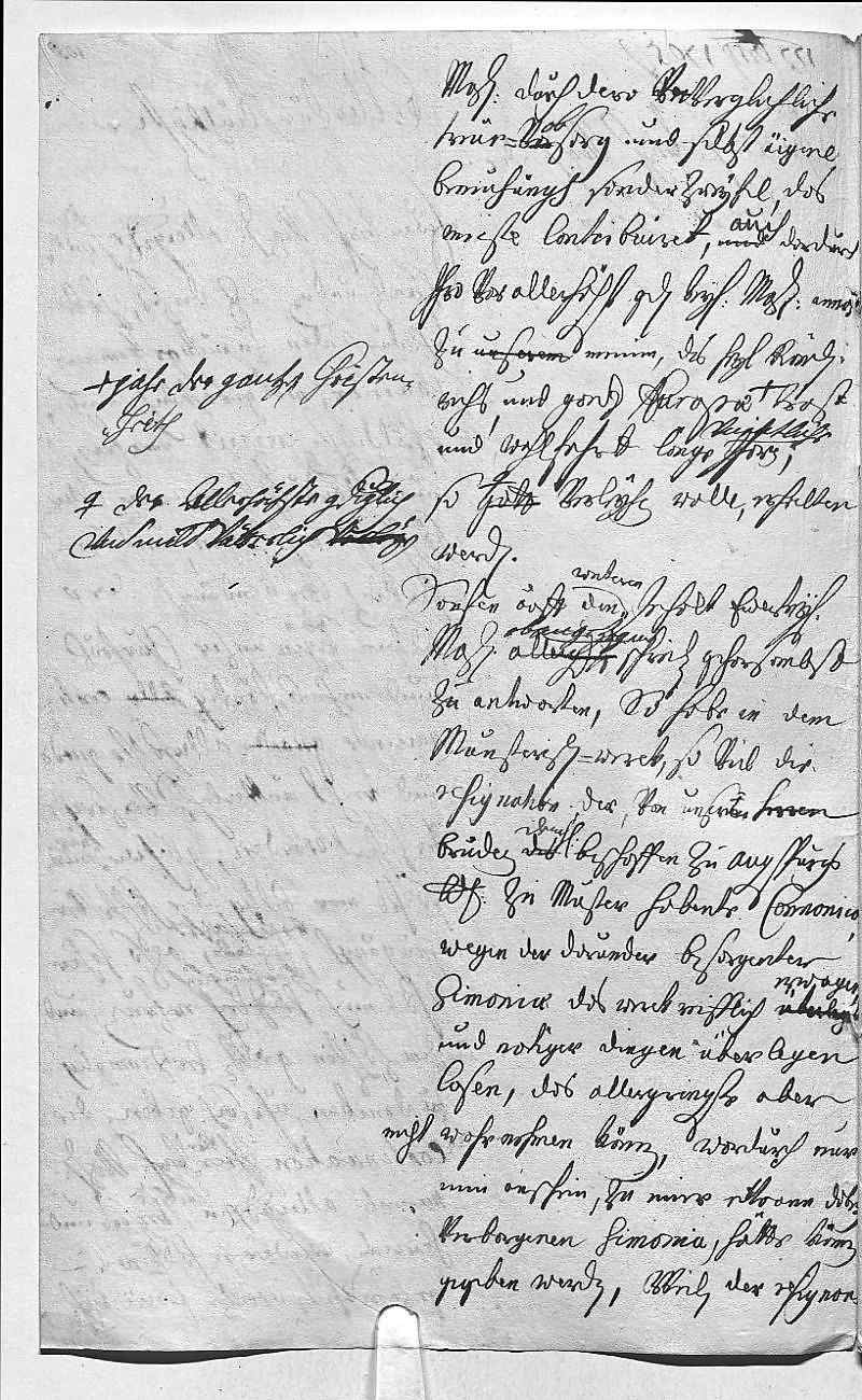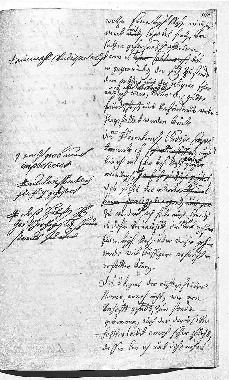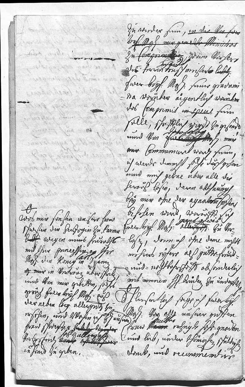 Freut sich, dass der Kaiser (Leopold I.) wieder genesen ist. – Kann bei dem Münsterer Kanonikat seines Bruders (Alexander Sigismund), des Bischofs von Augsburg, keine Gefahr der Simonie erkennen. EMT möge erwägen, ob nicht sein Bruder (Franz Ludwig), der Hoch- und Deutschmeister, sein Kanonikat an den Bischof von Paderborn resignieren sollte. – Dankt dafür, dass EMT an den Grafen Lazansky denken will. – Der von Almelo, Baron von Rechtern, ist holländischer Gesandter im Reich und hat wesentlich dazu beigetragen, dass die holländischen und englischen Truppen letzten Winter im Reich geblieben sind; er möchte in den Reichsgrafenstand erhoben werden. – Die 4.000 Mann, die JW nach Italien schicken soll, sind abmarschbereit. – Verlässt sich wegen der Oberpfalz ganz auf EMT. – Der preußische Gesandte hat JW zu verstehen gegeben, dass sein König nicht nur der Reichsacht (gegen Kurbayern und Kurköln) zustimmen würde, sondern auch, dass JW die erste Kurwürde, die Oberpfalz und einen Teil der bayerischen Länder bekäme, sofern vorher die Religionsfrage in der Pfalz gelöst würde. – Hat mit dem Bischof von Raab überlegt, dass es gut wäre, wenn EMT ihm einen (vorzeigbaren) Brief mit der Versicherung schriebe, dass der König (Karl) in Spanien um die Hand der Prinzessin von Ansbach anhalten würde, sobald sie bei JW und katholisch wäre. Sein Leibarzt Dr. Brunner hält die von EMT angesprochenen Beschwerden der Prinzessin nicht für sukzessionsrelevant; das andere ist nur abscheuliche Nachrede. – Wenn der Pater della Torre nur die kaiserliche Nominierung für die Koadjutorie schriftlich erhielte, würde JW für die päpstliche Konfirmation sorgen. – Der Herzog von Arenberg ist spanischer Grande und mit den vornehmsten spanischen Häusern verwandt (weshalb das Amt in dieser Nation bliebe); JW wird aber mit der Herzogin von Arenberg Rücksprache halten. – Freut sich, dass sein Bruder Pfalzgraf Karl (Philipp) bald Gouverneur von Tirol werden soll. Der preußische König hat ihm 350.000 Speciestaler für Karls litauischen Güter geboten; falls der Kaiserhof vielleicht aus politischen Gründen diese Transaktion nicht gerne sähe, hofft der Bruder auf Entschädigung. – Bedauert die anhaltenden Differenzen (des Kaiserhofs) mit Rom und sendet beiliegend, was er dem Conte di Fede befohlen hat. – Das Betragen des florentinischen Gesandten ist impertinent; JW erkundigt sich deswegen beim Großherzog (von Toskana). – Ist befremdet, dass der Banco noch nicht eingerichtet ist und kann sich als Grund nur vorstellen, dass er hintertrieben wird. Will selbst einen Banco gründen und dafür eine Garantie durch den jülisch-bergischen Landtag ausstellen lassen. – Wegen der Reichsvizekanzlerstelle hat der Kurfürst von Mainz JW zwar ebenfalls seinen Vetter, den jungen Grafen Schönborn, angetragen, aber auch mitgeteilt, dass er nichts gegen den Grafen Sinzendorf habe. – Ist bezüglich der Differenzen mit dem Stift Worms verhandlungsbereit, sobald der Hoch- und Deutschmeister (Bruder Franz Ludwig) seine Beschwerden schriftlich vorlegt, zumindest, soweit die Entscheidung nur bei JW und nicht bei allen pfälzischen Agnaten gemeinsam liegt. – Sendet beiliegend, was ihm seine Schwester (Dorothea Sophie), die Herzogin von Parma, wegen einer Heirat ihrer Prinzessin mit dem König Karl in Spanien geschrieben hat. – Dankt für alle Gnaden, die EMT der Mutter erwiesen hat. – Bittet, dass der nunmehrige Auditor Rotae, Graf Kaunitz , dem der Kaiser die Nachfolge im Erzbistum Prag versprochen hat, dort zum Koadjutor ernannt wird.