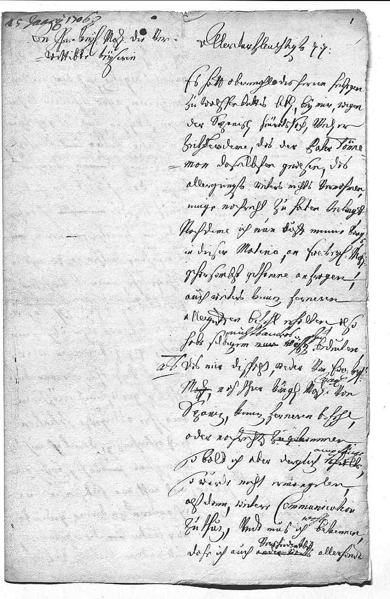 Der Herzog von Wolfenbüttel hat wieder wegen der spanischen Heirat nachgefragt; JW konnte nur antworten, dass er ebenfalls weder von EMT noch vom König (Karl von Spanien) Nachricht hat. Weiß, dass der Kaiserhof anderwärts verhandelt, und bittet, von EMTs Plänen informiert zu werden, um sich wenigstens zurückziehen zu können und nicht das Gesicht zu verlieren . Hat nur zum Wohl des Erzhauses gehandelt, es scheint aber, dass man ihm nicht vertraut, und er bittet daher um ausdrücklichen Befehl.