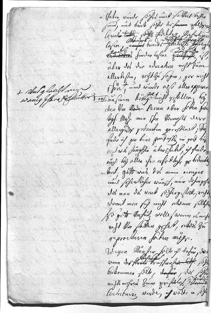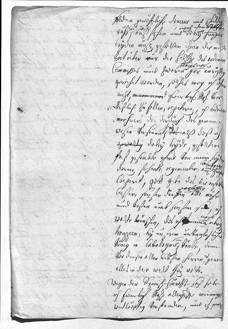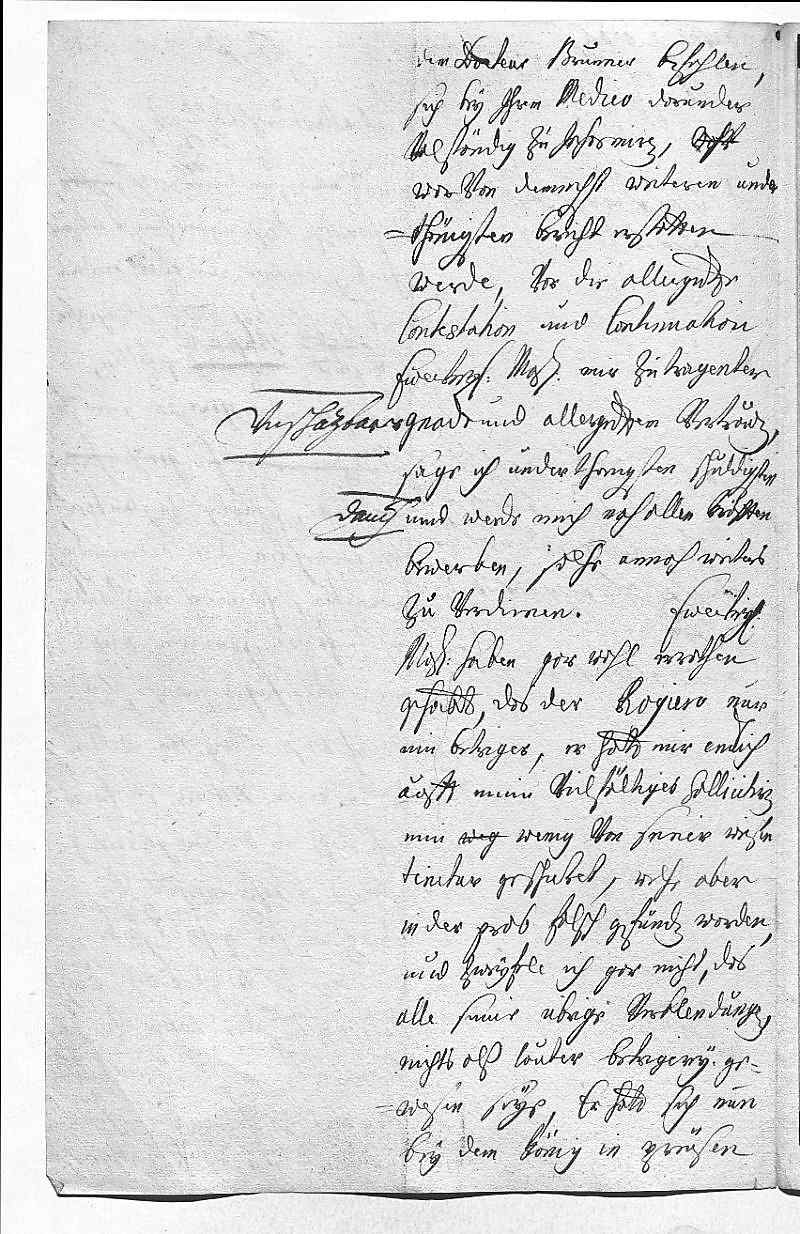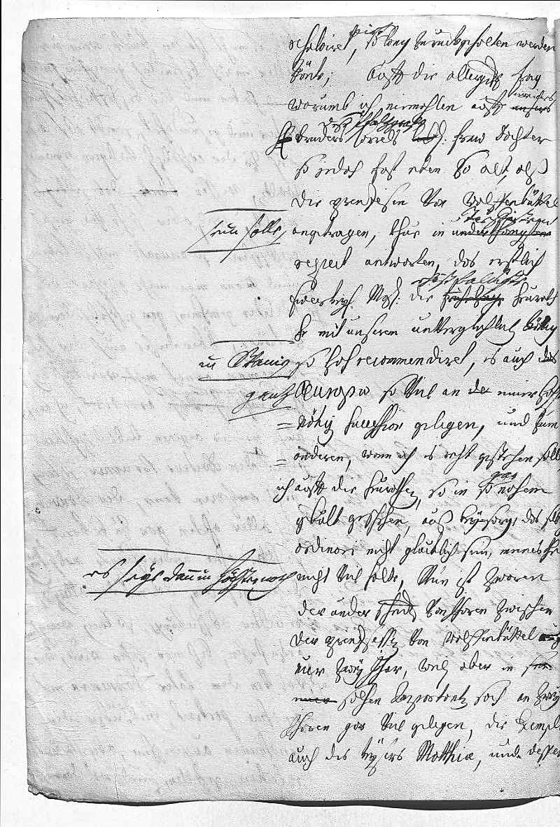EMTs Brief vom 3. Februar 1706 hat ihn sehr getröstet, da er befürchtet hatte, sie sei mit seiner aufrichtigen Meinung unzufrieden. – Ob die Wiedereinsetzung Böhmens in das Kurkollegium gleichzeitig oder direkt nach der Einsetzung Hannovers erfolgt, ist nicht wichtig, nur, dass sie erfolgt, da sonst ein großer Nachteil für den katholischen Glauben entstünde. – Die weiteren 1.000 Mann, die JW nach Italien schickt, warten bereits in Neuburg auf einen kaiserlichen Kommissar, der sie weiterführt. Verlässt sich darauf, dass sie besser versorgt werden als seine anderen Truppen bisher, die Not und Hunger leiden; fast alle Pferde seiner beiden Regimenter sind verhungert. – Schlägt in der spanischen Heiratssache vor, vorerst abzuwarten, bis der Pater Tönnemann bei König Karl (III. von Spanien) angekommen ist, ihm das Porträt gezeigt und seinen Bericht erstattet hat. Den Douven an andere Höfe zu schicken, wäre zu auffällig, weil er zu bekannt ist; den Dr. Brunner braucht JW wegen einer derzeit hier grassierenden Seuche vorerst selbst. – Hält wegen vieler Beispiele nichts von Ehen zwischen zu nah blutsverwandten Paaren und schlägt daher nicht die Tochter von (Bruder) Pfalzgraf Karl (Philipp) vor, die außerdem zwei Jahre jünger als die Prinzessin von Wolfenbüttel ist. Die Tochter des verstorbenen Bruders Philipp ist weder gut erzogen noch schön. Weiß keine weiteren Prinzessinnen im Reich als die, von denen er schon geschrieben hat. – Was der Hoch- und Deutschmeister (Bruder Franz Ludwig) EMT gesagt hat, wird nicht sein Ernst sein; der Bischof von Osnabrück hat jedenfalls keine Aussichten in Münster. – Wird wegen der Reichsacht und Brandenburgs Vorschlag einer Erbvereinigung nichts ohne EMTs Vorwissen tun; wünschte, ihr mündlich erzählen zu können, was in dieser Sache vorgefallen ist, weil er es nicht der Feder anvertrauen kann. – Wird überlegen, was man für den Grafen Hohenfeld tun kann. – Die Angelegenheit der von Fränz ist so gut wie erledigt. – Die Vollmacht aus Rom wird inzwischen gekommen sein; JW wird gerne auf EMTs Befehl unter der Hand zur Beilegung der Differenzen (zwischen päpstlichem und kaiserlichem Hof) beitragen. – EMT wird es nicht bereuen, dem Kaiser den Kölner Nuntius empfohlen zu haben für den Fall, dass der Davia weiter auf seiner Abreise von Wien beharrt . Hat zuverlässige Nachricht, dass der Piazza in diesem Fall die nötige Vollmacht vom römischen Hof erhielte. – Entschuldigt sich für den Fall, dass EMT in seinem letzten Schreiben das eine oder andere Wort gekränkt hat, und dankt für ihre anhaltende Gnade. – Hat bereits dem Dr. Brunner befohlen, sich beim Arzt der Prinzessin von Wolfenbüttel zu erkundigen, ob man tatsächlich versuche, den Gang der Natur bei ihr mit Medikamenten zu beschleunigen. – EMT hat richtig erraten, dass der Ruggiero ein Betrüger ist. Er hat sich nun beim König in Preußen engagiert, den JW aber unter der Hand gewarnt hat.