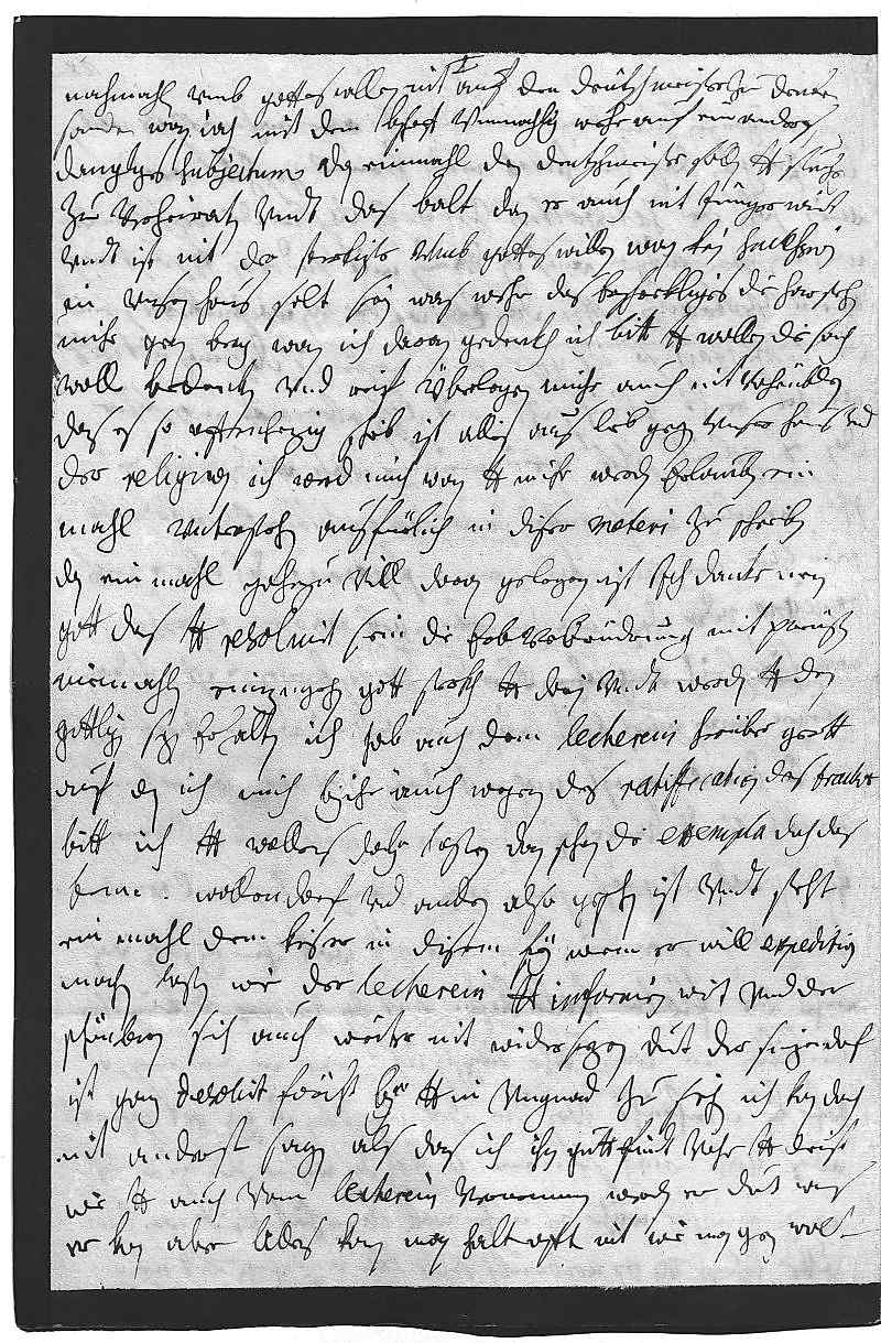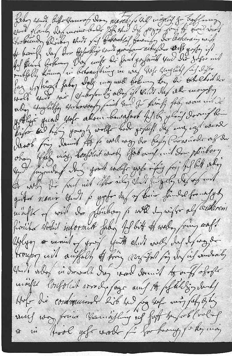 0064nochmahlen, vmb gottes willen nit auf den Deütschmeister zu denken, 0065sondren, wan iah mit dem Bischoff vnmochlig wehr, auf ein anders 0066daugliges subjectum, dan einmahl den Deutschmeister sollen dero Liebden suchen 0067zu verheiraten, vndt das balt, dan er auch nit junger wirt 0068vndt ist nit der sterkiste. Vmb gottes willen, wan kein sucession 0069in vnsren haus solt sein, was wehr das erschrekliges, die har stehen 0070mihr gen berg, wan ich daran gedenkh, ich bitt, dero Liebden wollen die sach 0071woll bedenken vnd reif überlegen, mihr auch nit vohrüblen, 0072das es so offenherzig schreib, ist allein aus lieb gegen vnser haus vnd 0073der religion. Ich werd mich, wan dero Liebden mihr werden erlauben, ein 0074mahl vnterstehen, ausfürlich in diser materi zu schreiben, 0075dan ein mahl gahrzu vill daran gelegen ist. Ich danke mein 0076gott, das dero Liebden resoluirt sein, die erbverbrüderung mit Preüßen 0077niemahlen einzugehn, gott sterkh dero Liebden darin, vndt werden dero Liebden den 0078gottligen segen erhalten. Ich hab auch mit dem Lecherein hirüber gerett, 0079auf den ich mich bezihe. Auch wegen des ratiffication des tractat 0080bitt ich, dero Liebden wollens dabey laßen, dan schon die exempla, dah das 0081bem Wollendorf vnd andren also geschen ist, vndt steht 0082ein mahl dem Keiser in disem frey, wen er will expedition 0083machen zu laßen, wie der Lecherein dero Liebden informiren wirt, vnd der 0084Schönborn sich auch weiter nit widersezen duet. Der Sinzendorf 0085ist ganz desolirt, förcht bey dero Liebden in vngnad zu seihn, ich kan doch 0086nit anderst sagen, als das ich ihn gutt findt vohr dero Liebden dienst, 0087wie dero Liebden auch vom Lecherein vernemmen werden. Er dut, was 0088er kan, aber alles kann man halt offt nit, wie man gern wolt,