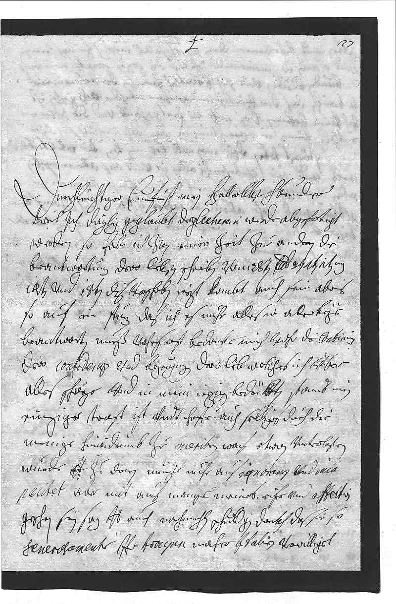 0001Durchleüchtiger Curfürst, mein herzallerlibster herr bruder 0002Weil ich däglig geglaubt, der Grav Lecherein werde abgefertigt 0003werden, so hab ich von einer zeit zue andern die 0004beantwortung dero liebsten schreiben vom 28ten februarij, 3ten, 4ten, 11ten merz, 000514ten vnd 18ten dis verschoben. Iezt kombt auch sein abreis 0006so auf ein sturz, das ich es nuhr alles in aller kürze 0007beantworten mueß. Vohrs erst bedanke mich vohr die continuirung 0008dero confidenz vnd bezeugungen dero lieb, welches ich über 0009alles schäze vnd in mein iezigen bedrübten standt mein 0010einziger trost ist vndt hoffe auch, selbiges durch die 0011meinige hinwidrumb zu meritiren. Was etwan vnterlasen 0012wurde, dero Liebden zu dienen, müeste nuhr aus ignoranz vnd inca- 0013pacitet, aber mit aus mangel meines eifer vnd affection 0014geschen sein. Sag dero Liebden auch nochmahlen schuldigen dankh, das sie so 0015generosamente ihr troupen nacher Italien verwilliget
