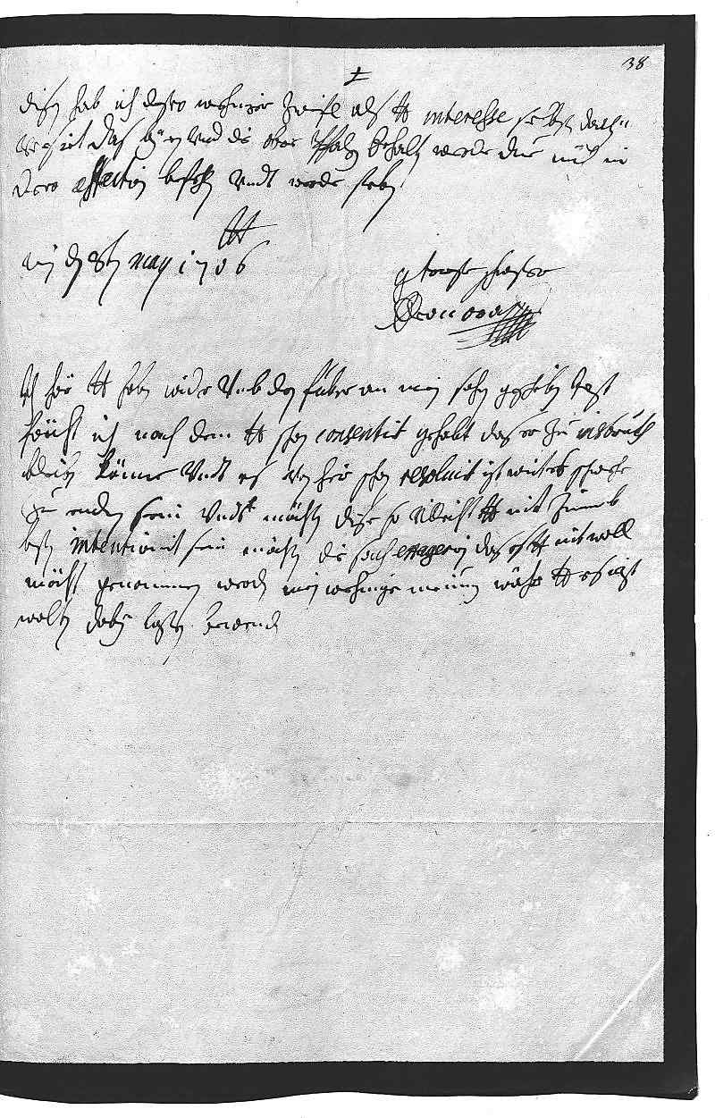0038disen hab ich desto wehniger zweifl, als dero Liebden interesse selbsten dahin0039versirt, das Beyren vnd die Obre Pfalzen erhalten werde. Due mich in 0040dero affection befehlen vndt werde sterben 0041dero Liebden 0042getrewste schwester 0043Eleonora 0044Wien den 8ten maij 1706 0045Ich hör, dero Liebden haben wider vmb den Fuker an mein sohn geschriben. Jezt, 0046förcht ich, nach dem dero Liebden schon consentirt gehabt, das er zu Insbrukh 0047bleiben könne vndt es von hier schon resoluirt ist, wirt es schwehr 0048zu endern sein, vndt möchten dise, so villeicht dero Liebden nit zummb 0049besten intentionirt sein möchten, die sach exageriren, das es dero Liebden nit woll 0050möcht genommen werden. Mein wehnige meinung währ, dass dero Liebden es iezt 0051wolten dobey laßen bewenden.