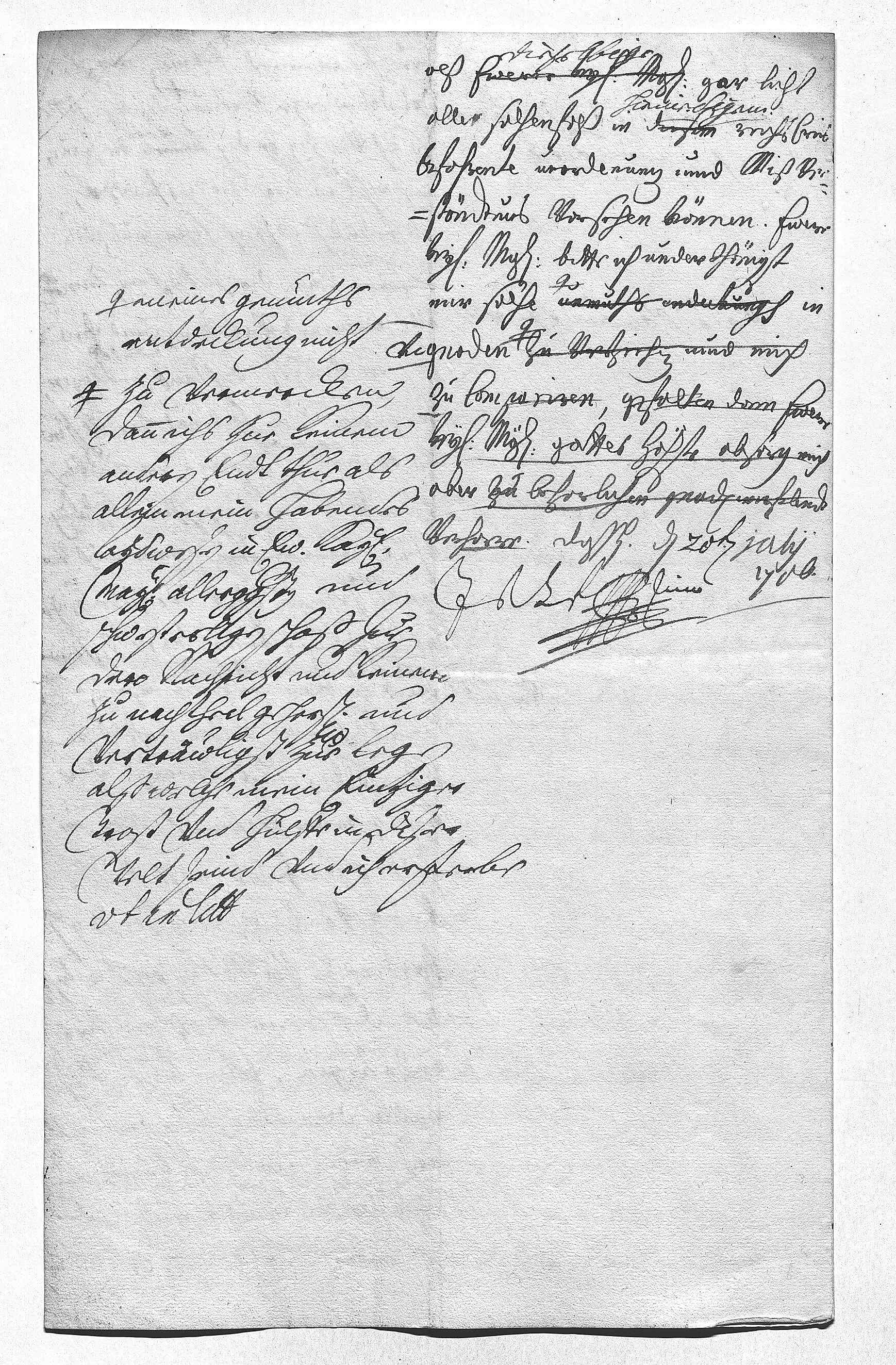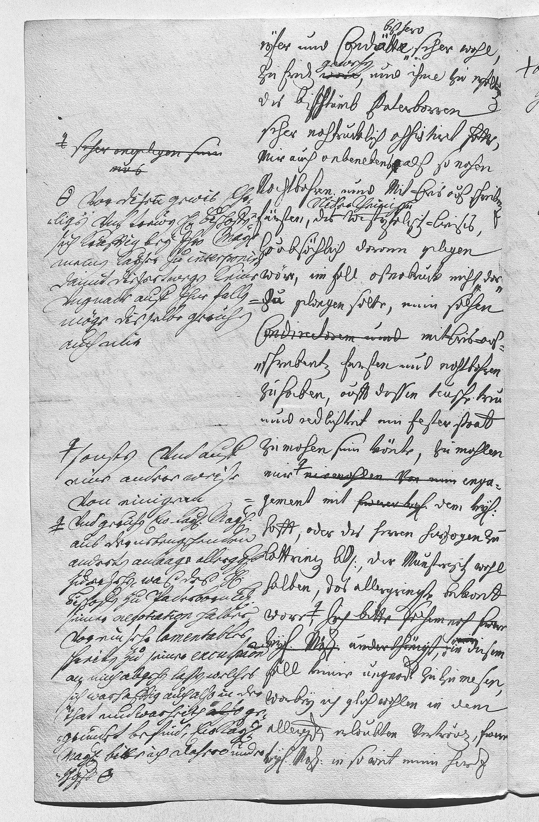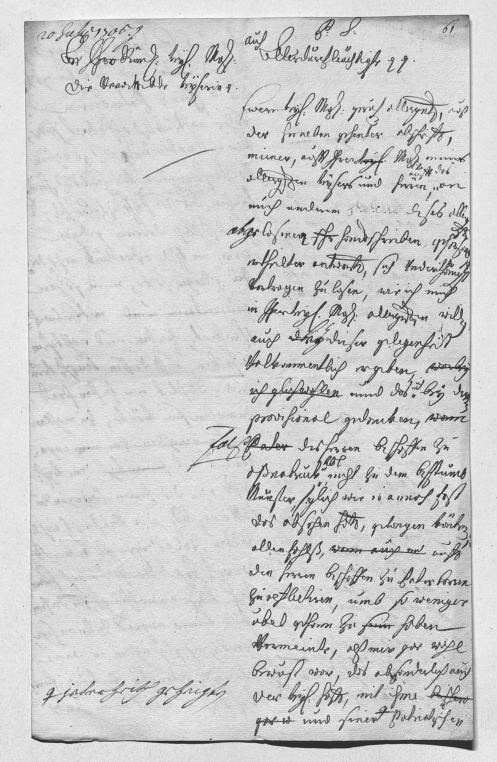 Hat die vom lothringischen Gesandten Marquis de Trichâteau gewünschten Empfehlungsschreiben für den Bischof von Osnabrück bei der Wahl in Münster abgeschickt. Der Baron von Stein ist im Auftrag von JWs Bruder (Franz Ludwig), des Hoch- und Deutschmeisters, hier eingetroffen, um zu sehen, ob dieser mit EMTs Erlaubnis auch antreten kann. JW schickt seinen Obristkämmerer, den Grafen Diemantstein, nach Münster für den Fall, dass der Bischof von Osnabrück keinen Erfolg hätte, für den Hoch- und Deutschmeister aber noch Hoffnung bestünde. Bedauert, dass dieser nicht früher antreten durfte; nun hat wohl (der Bischof von) Paderborn die besten Aussichten. – Falls der Bischof von Osnabrück nicht in Münster gewinnt, hätte JW lieber als jemand anderen den Bischof von Paderborn zum Nachbarn, auf dessen Treue und Redlichkeit er sich verlassen könnte. – Ist bekümmert zu erfahren, dass der kaiserliche Hof dem Kardinal von Sachsen(-Zeitz) erlaubt, in Münster anzutreten, und ihn nach dem Bischof von Osnabrück an zweiter Stelle unterstützen will, während dem (Hoch- und) Deutschmeister alle Bewerbungen verboten werden.
