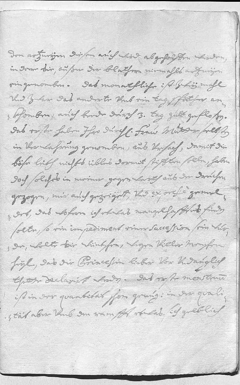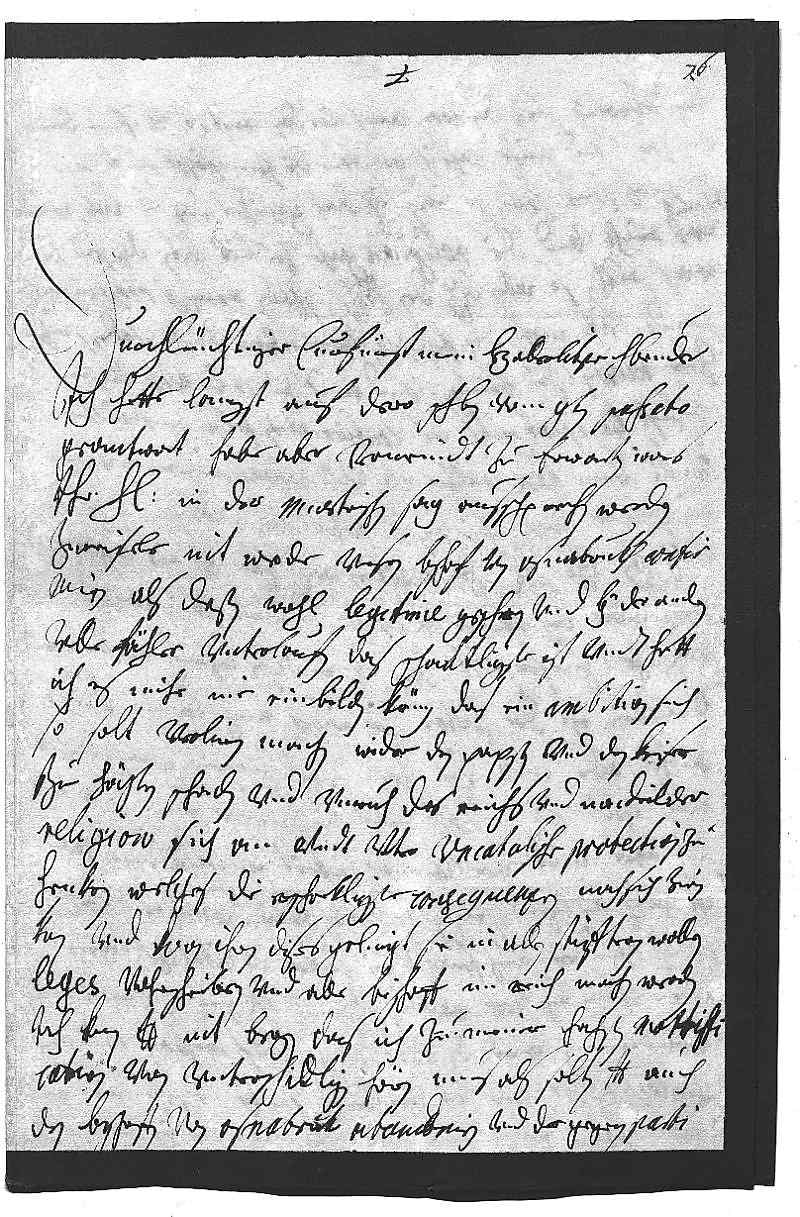 0001Durchleüchtiger Curfürst, mein herzallerlibster herr bruder 0002Ich hette langst auf dero schreiben vom 9ten passato 0003geantwort, habe aber vermeindt zu erwarten, was 0004ihr Heiligkeit in der munstrischen sag ausschprechen werden. 0005Zweifele nit, er werde vnsren Bischof von Osnabrukh confir- 0006miren, als deßen wahl legitime geschen vnd bey der andren 0007ville fähler vnterlaufen. Das schantligste ist, vndt hett 0008ich es mihr nie einbilden können, das ein ambition sich 0009so solt verliren machen, wider den Papsten vnd den Keiser 0010zu höchsten schaden vndt vnruh des Reichs vnd nachdeil der 0011religion, sich an vndt vnter vncatolische protection zu 0012henken, welches die erschrekligste consequenzen nach sich zien 0013kan, vnd wan ihnen dises gelingt, sie in allen stifftern wollen 0014leges vohrschreiben vnd alle bischoff im Reich machen werden. 0015Ich kan dero Liebden nit bergen das ich zu meiner hochsten nottiffi- 0016cation von vnterschidligen hören mus, als solten dero Liebden auch 0017den Bischoffen von Osnabrük abandeniren vnd der gegen parti