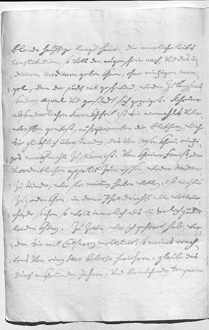 0018beförderlich sein, dan wan auch nit das wort, so dero Liebden ihnen dem 0019Keiser vnd mihr vohr ihn geben, vnd die freuntschafft, so dero Liebden vohr 0020selbiges haus haben, so bin ich doch gesichret, das dero Liebden das publicum 0021wie auch das Reichs vnd die religion gahr zu lieb haben, das sie zu 0022was solchen, so allen disen den höchsten schaden bringst, cooperiren wurden, 0023sondern vill mehr den Bischoff von Paterborn vnd die Herren Staden suchen 0024zur raison zu bringen vnd auch zu Rohm vohr vnsern 0025Bischoff von Osnabrukh die confirmation helfen auswürken 0026vndt dem Fedl, welcher schon vill passus gedahn, dauon ich gesichert 0027bin, das er von dero Liebden kein befehl gehabt haben wirt, scharf befehlen, 0028niks bey ihr Heiligkeit zu negotiren, was ihm dero Liebden nit befehlen vnd 0029was wider den Kaißer vnd den Bischoff könte sein. Ich hab dise 0030ganzlige zuefersicht, das dero Liebden in disen bestendig verharen werden. 0031Im übrigen ist der Hertot hier wider angelangt, vnd seint 0032mihr alle mitt ihm gahr übel zuefriden gewesen, das er 0033nit nach dero Liebden befehl auf Düßeldorf gangen ist. Er hatt 0034sich aber mit der vnmöglikeit entschuldiget, wie 0035dero Liebden aus beyligenden seinen schreiben werden ersehen, welches ich herbey 0036schließ, vnd er aus forcht, ein fähler in titul zu begehen, 0037nit überschrieben hatt, waraus auch dero Liebden sein vollige relation 0038vernemmen werden. Den Garelli haben auf Preßlaw vndt Prag 0039geschikt, von Preslaw hab nachricht, das er sie sehr lobt, aber 0040noch allzu jung vndt nit ausgewaksen oder in stand zu heiraten gefunden .