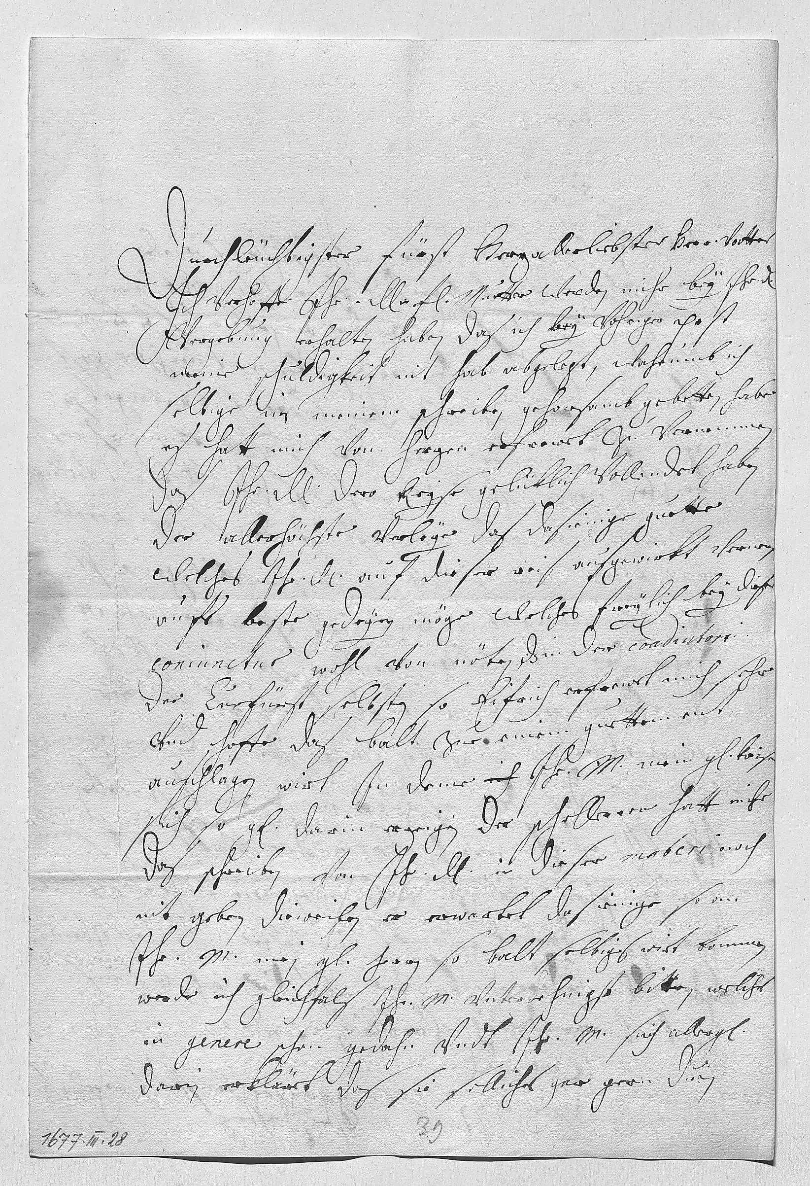 0001Durchleüchtigster Fürst, herz allerliebster herr vatter 0002Ich verhoffe, ihr Durchlaucht die fraw muetter werden mihr bey ihr Durchlaucht 0003vergebung erhalten haben, das ich bey vohriger post 0004meine schuldigkeit nit hab abgelegt, wahrumb ich 0005selbige in meinem schreiben gehorsamb gebetten habe. 0006Es hatt mich von herzen erfrewet zu vernemmen, 0007das ihr Durchlaucht dero reyse gelüklich vollendet haben. 0008Der allerhöchste verleye, das dasienige guette, 0009welches ihr Durchlaucht auf dieser reis ausgewirkt, verners 0010aufs beste gedeyen möge, welches freylich bey dieser 0011coniunctur wohl von nöten. Das in der coadiutori 0012der Curfürst selbsten so eifrich, erfrewet mich sehr 0013vnd hoffe, das balt zue einem guettem ent 0014auschlagen wirt, in deme ich ihr Mayestät, mein gnädigster Kaiser, 0015sich so gnädig darin erzeigen. Der Schellerer hatt mihr 0016das schreiben von ihr Durchlaucht in dieser materi noch 0017nit geben, dieweilen er erwartet dasienige, so an 0018ihr Mayestät, mein gnädigsten herrn, gesendet wurde. So balt selbiges wirt kommen, 0019werde ich gleichfals ihr Mayestät vnterdehnigst bitten, welches 0020in genere schon gedahn vndt ihr Mayestät sich allergnädigst 0021darin erkläret, das sie solliches gar gern duen