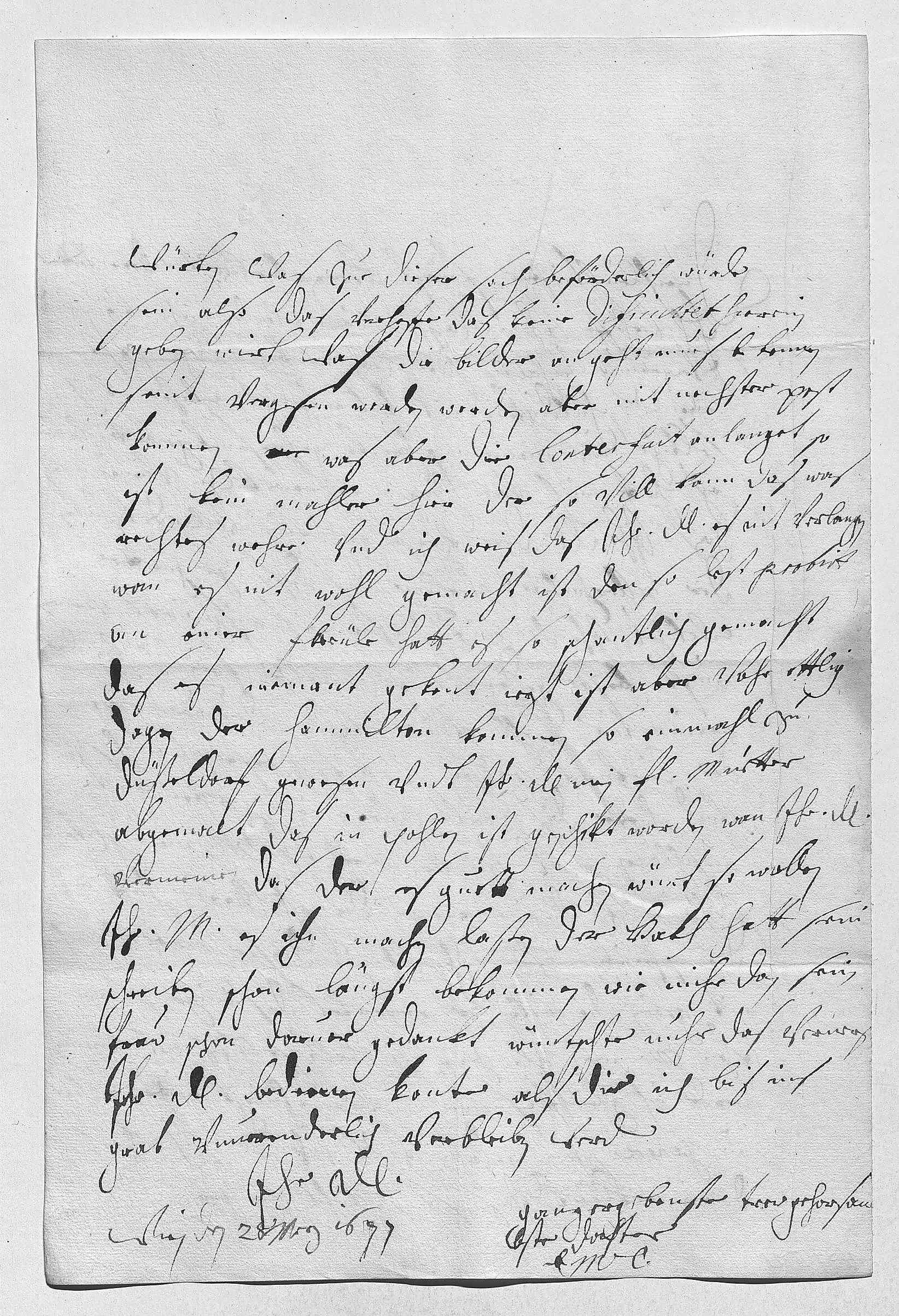 0022würten, was zue dieser sach beförderlich würde 0023sein, also das verhoffe, das keine dificultet hierein 0024geben wirt. Was die bilder an geht, mues bekennen 0025seint vergesen worden, werden aber mit nechster post 0026kommen. Was aber die conterfait anlanget, so 0027ist kein mahler hier, der so vill kann, das was 0028rechtes wehre, vnd ich weis, das ihr Durchlaucht es nit verlangen, 0029wan es nit wohl gemacht ist. Den, so lest probirt 0030an einer freüle, hatt es so schantlich gemacht, 0031das es niemant gekent. Iezt ist aber vohr ettlig 0032dagen der Hammilton kommen, so einmahl zu 0033Düßeldorf gewesen vndt ihr Durchlaucht mein frau muetter 0034abgemalt, das in Pohlen ist geschikt worden. Wan ihr Durchlaucht 0035vermeinen, das der es guett machen würt, so wollen 0036ihr Mayestät es ihn machen laßen. Der Hakh hatt sein 0037schreiben schon längst bekommen, wie mihr dan sein 0038fraw schon daruor gedankt. Wüntschte nuhr, das verners 0039ihr Durchlaucht bedienen konte als die ich bis ins 0040grab vnuerenderlich verbleiben werde 0041ihr Durchlaucht 0042ganz ergebenste trewgehorsam- 0043bste dochter 0044EMT 0045Wien den 28 merz 1677