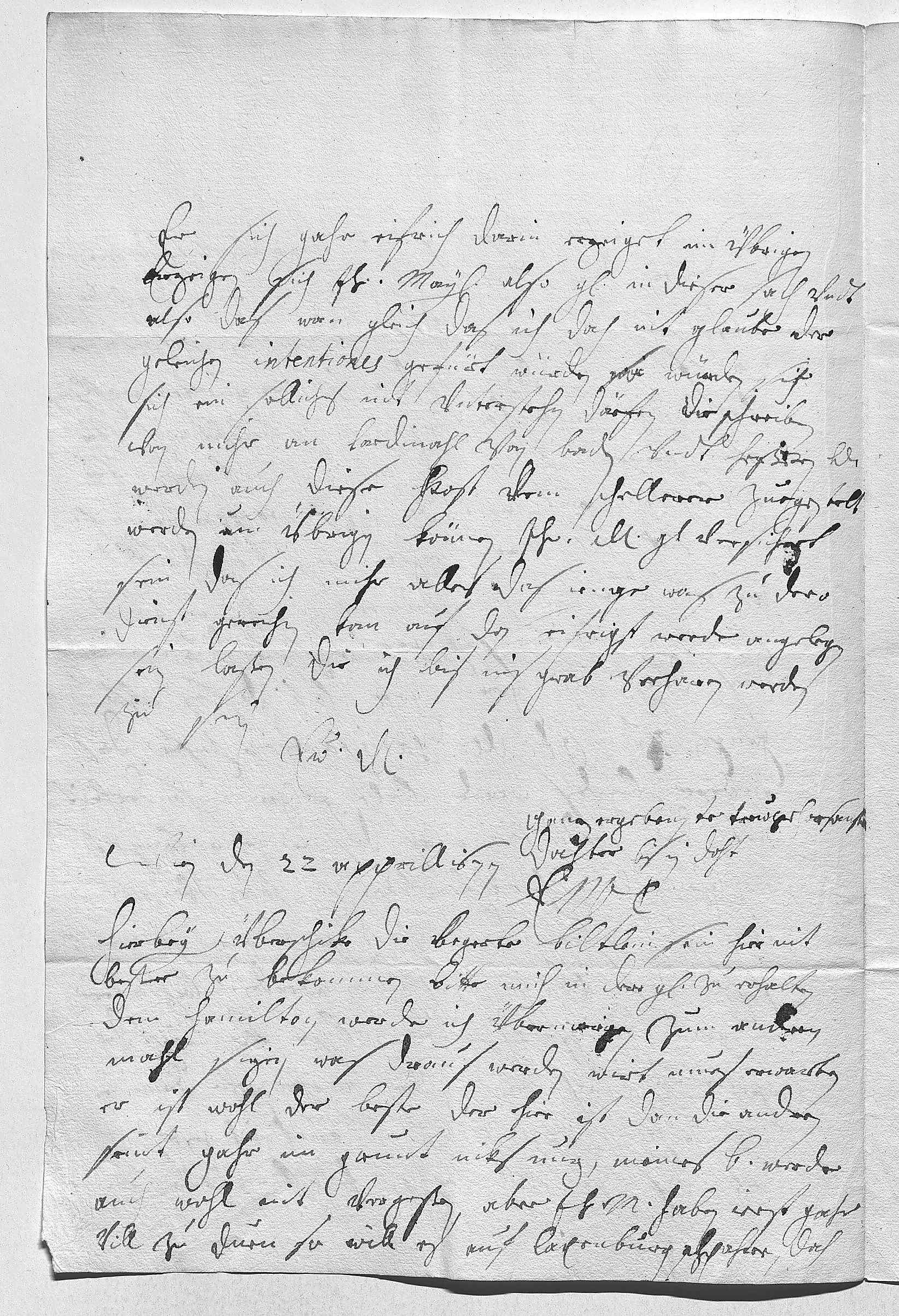 0022er sich gahr eifrich darin erzeiget. Im übrigen 0023erzeigen sich ihr Mayestät also gnädig in dieser sach vndt 0024also, das wan gleich, das ich doch nit glaube, der 0025geleichen intentiones gefürt würden, so würden sih 0026sich ein solliches nit vnterstehn dörfen. Die schreiben 0027von mihr an Cardinahl von Baden vndt Heßen Liebden 0028werden auch diese post dem Schellerer zuegestelt 0029werden. Im vbrigen können ihr Durchlaucht gehorsamst versichert 0030sein, das ich mihr alles das ienige, was zu dero 0031dienst gereichen kan, auf das eifrigst werde angelegen 0032sein laßen, die ich bis ins grab verharen werden 0033zu sein 0034ewer Durchlaucht 0035ganz ergebenste trewgehorsamste 0036dochter bis in doht 0037EMT 0038Wien den 22 apprill 16770039Hierbey überschike die begerte biltlein, sein hier nit 0040beßer zu bekommen, bitte mich in dero gnade zu erhalten. 0041Dem Hamilton werde ich übermorgen zum anderen 0042mahl sizen, was draus werden wirt, mues erwarten. 0043Er ist wohl der beste, der hier ist, dan die andren 0044seint gahr im grunt niks nuz. Meines brudern werde 0045auch wohl nit vergeßen, aber ihr Mayestät haben izt gahr 0046vill zu duen, so will es auf Laxenburg schpahren, doch