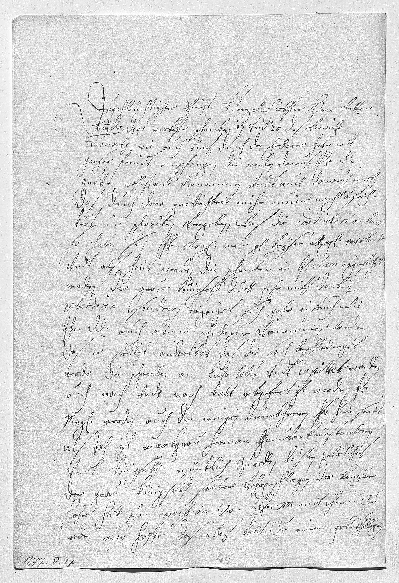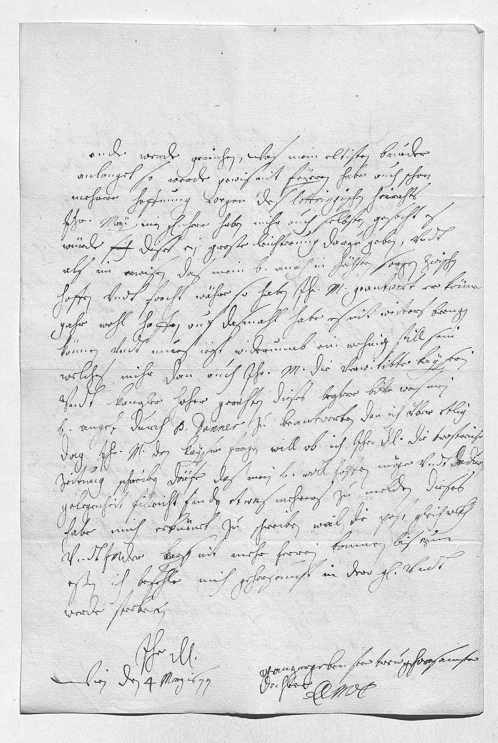 0022ende werde gereichen. Was mein eltisten brueder 0023anlanget, so werde gewis nit feyeren, habe auch schon 0024mehrere hoffnung wegen des lottringischen heirahts. 0025Ihr Mayestät, mein gnädigster herr, haben mihr auch selbsten gesacht, es 0026würde sich dises ein große leichterung darzu geben, vndt 0027als im erwisen, das mein bruder anoch in höchsten sorgen zwischen 0028hoffen vndt forcht währe, so haben ihr Mayestät geantwort, er könne 0029gahr wohl hoffen. Auf dasmahl habe es nit weiters brengen 0030können vndt mues iezt widerumb ein wehnig still sein, 0031welches mihr dan auch ihr Mayestät, die verwitibte Kayserin, 0032vndt Kanzler Hoher gerahten. Dieses leztere bitte, was mein 0033bruder anget, durch Pater Danner zu beantworten, dan ich über etlig 0034dag ihr Mayestät den Kayser fragen will, ob ich ihr Durchlaucht die trostreiche 0035zeitung schreiben dörfe, das mein bruder woll hoffen möge, vndt dadurch0036gelegenheit filleicht finden, etwas mehrers zu melden. Dieses 0037habe mich erküenet zu schreiben, weil die post gleich wekh 0038vndt ihr Mayestät der Kayser nit mehr herrein kommen bis zum 0039eßen. Ich befehle mich gehorsamst in dero gnade vndt 0040werde sterben 0041ihr Durchlaucht 0042ganzergebenste trew gehorsamste 0043dochter 0044EMT 0045Wien den 4 merz 1677