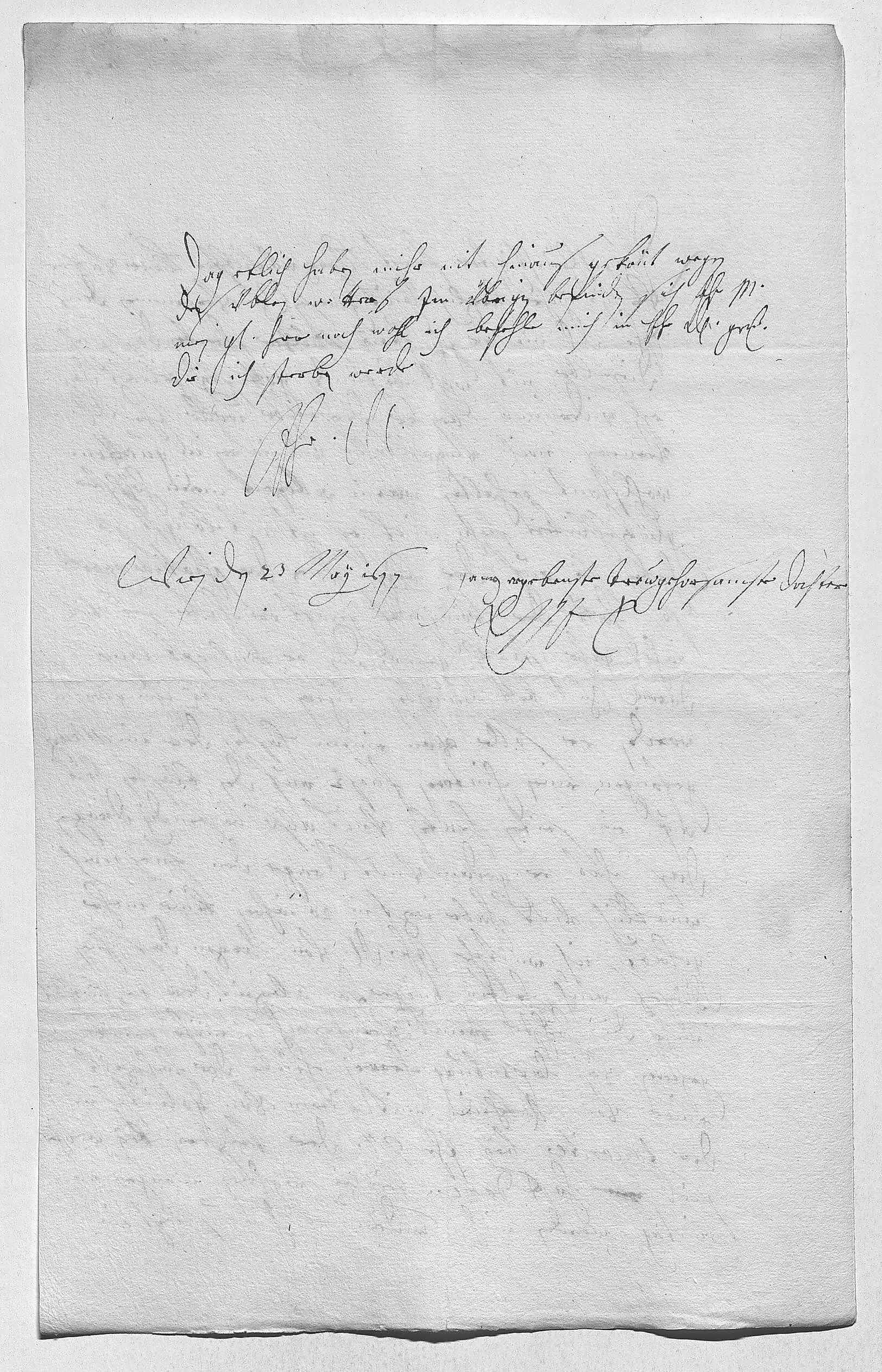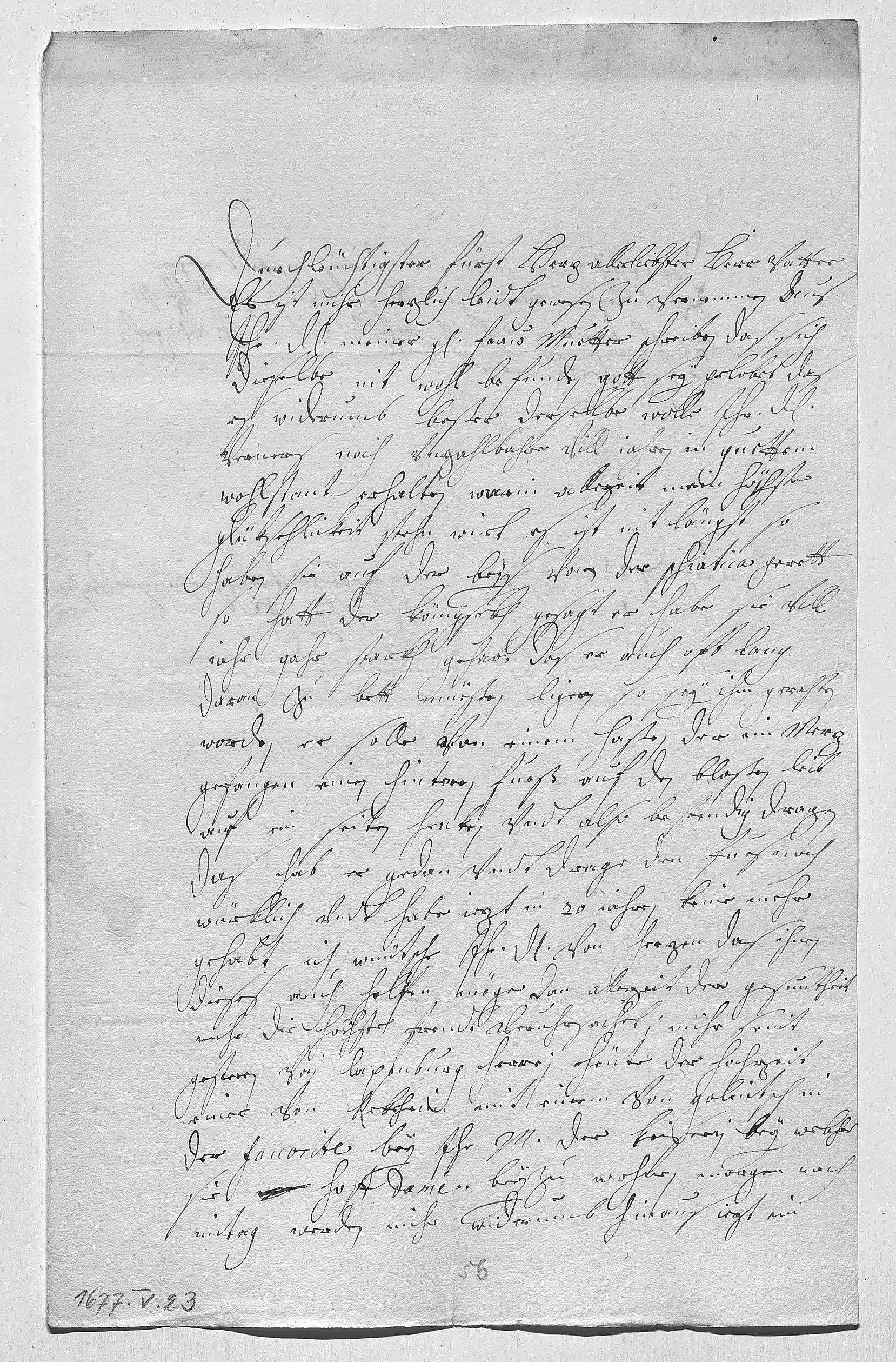 0026dag etlich haben mihr nit hinaus gekönt wegen 0027des üblen wetters. Im übrigen befinden sich ihr Mayestät, 0028mein gnädigster herr, noch wohl. Ich befehle mich in ihr Durchlaucht gnade, 0029die ich sterben werde 0030ihr Durchlaucht 0031ganz ergebenste trewgehorsamste dochter 0032EMT 0033Wien den 23 may 1677