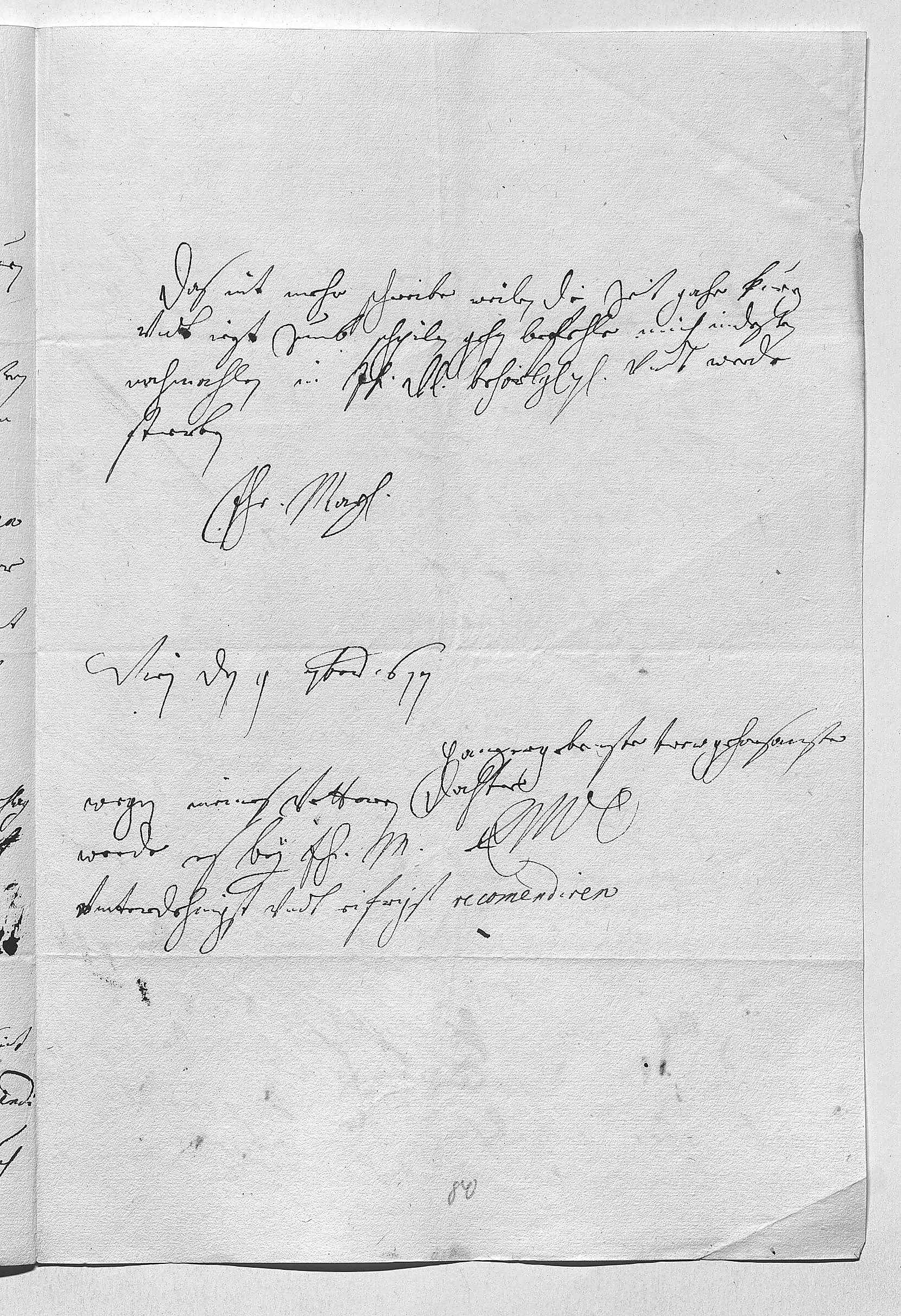 0020Ihr Mayestät, mein gnädigster Kaiser, haben mit dem Grauen 0021Forbeni geret vndt ihme die sach eifrich befohlen, 0022wie auch ich mit ihme geret, auch ihr Mayestät durch 0023den Kanzler Hoher noch mehrer ihme zuereden laßen. 0024Er hatt sich zwar offerirt es , er wohlte in allem 0025ihr Mayestät befehl suechen zu gehorsammen, wie auch 0026meinen bruederen ser suechen in allem zu obligiren, 0027aber weiters precisa was zu versprechen, hatt er 0028sich auf keine weis einlasen wollen mit vohrwant, 0029man müeße erwarten, was der heilige geist 0030vndt sein gewisen ihme einwürde geben, wan 0031es zu der wahl kommen würde. Was den vorschlag 0032anbelangt, werde ich ihr Mayestät solches gehorsamist 0033vohrbringen, hab sie in ihrer krankheit nit mögen 0034darmit molest sein. Ich weis aber gewis, das ihr 0035Mayestät alles, was nuhr moglich sein wirt, duen 0036werden, dan sie selber gahr eifrig darin seint. 0037Habe aber vnterdeßen es dem Konigsek recomendi- 0038ren laßen, welcher sich alles anerbotten. Bitte auch