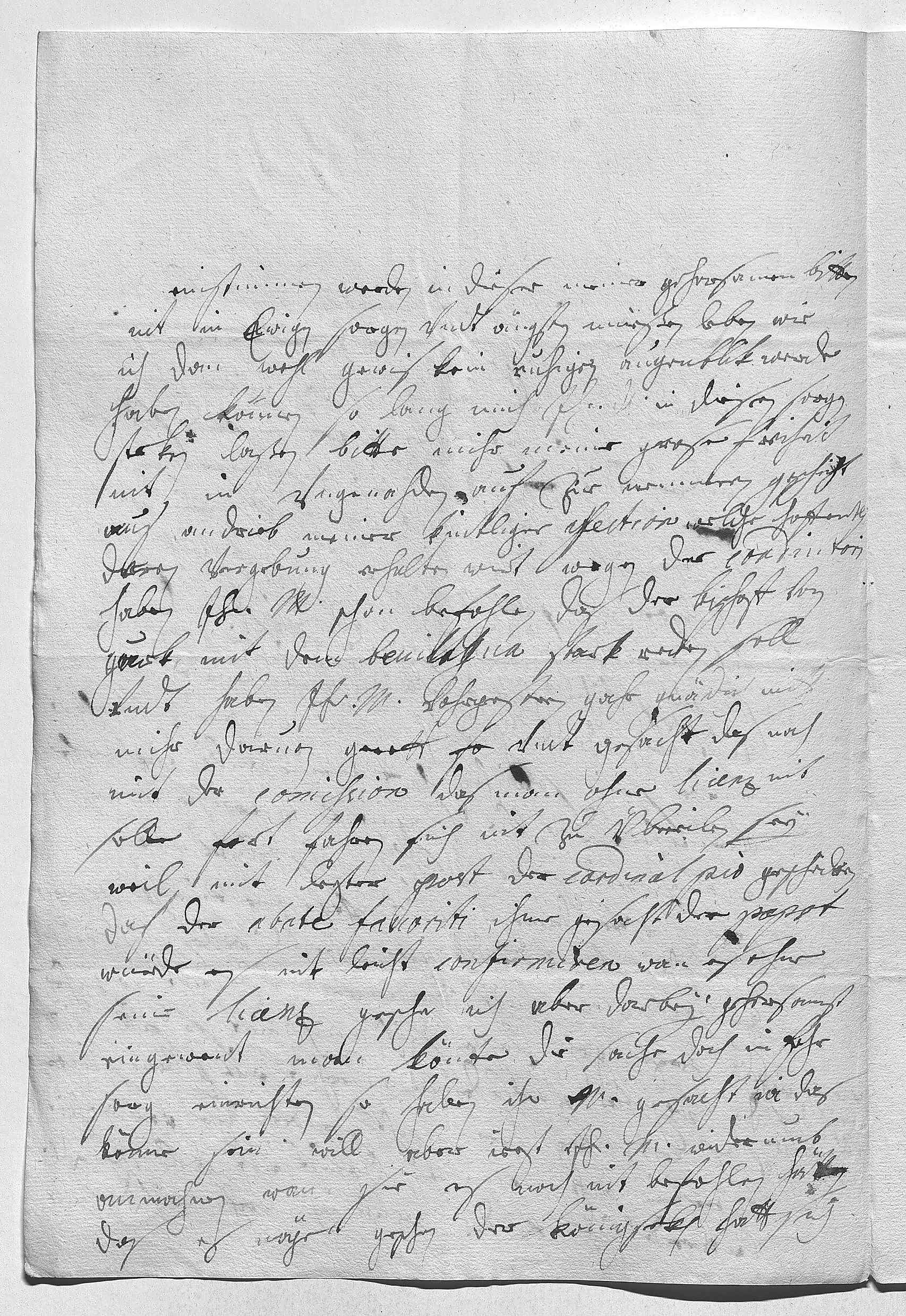 0024einstimmen werden in dieser meiner gehorsamen bitten, 0025nit in ewigen sorgen vndt ängsten müeßen leben, wie 0026ich dan wohl gewis kein ruhigen augenblik werde 0027haben können, so lang mich ihr Durchlaucht in diesen sorgen 0028steken laßen. Bitte mihr meine grose freiheit 0029nit in vngenahden auf zue nemmen, geschicht 0030aus andrieb meiner kintliger affection, welche hoffentlich 0031deren vergebung erhalten wirt. Wegen der coadiutori 0032haben ihr Mayestät schon befohlen, das der Bischoff von 0033Gurk mit dem Beuilaqua stark reden soll, 0034vndt haben ihr Mayestät vohrgestern gahr gnädig mit 0035mihr daruon gerett so vndt gesacht, das noch 0036mit der comission, das man ohne licenz nit 0037solle fort fahren, sich nit zu übereilen sey, 0038weil mit lezter post der Cardinal Pio geschriben, 0039das der abate Fauoriti ihme gesacht, der Papst 0040würde es nit leicht confirmiren, wan es ohne 0041seine licenz geschehe. Ich habe aber darbey gehorsamst 0042eingewent, man könte die sache doch in fohr- 0043sorg einrichten, so haben ihr Mayestät gesacht, ia, das 0044könne sein, will aber iezt ihr Mayestät widerumb 0045anmahnen, wan sie es noch nit befohlen hätten, 0046das es möge geschehen. Der Königsekh hatt sich