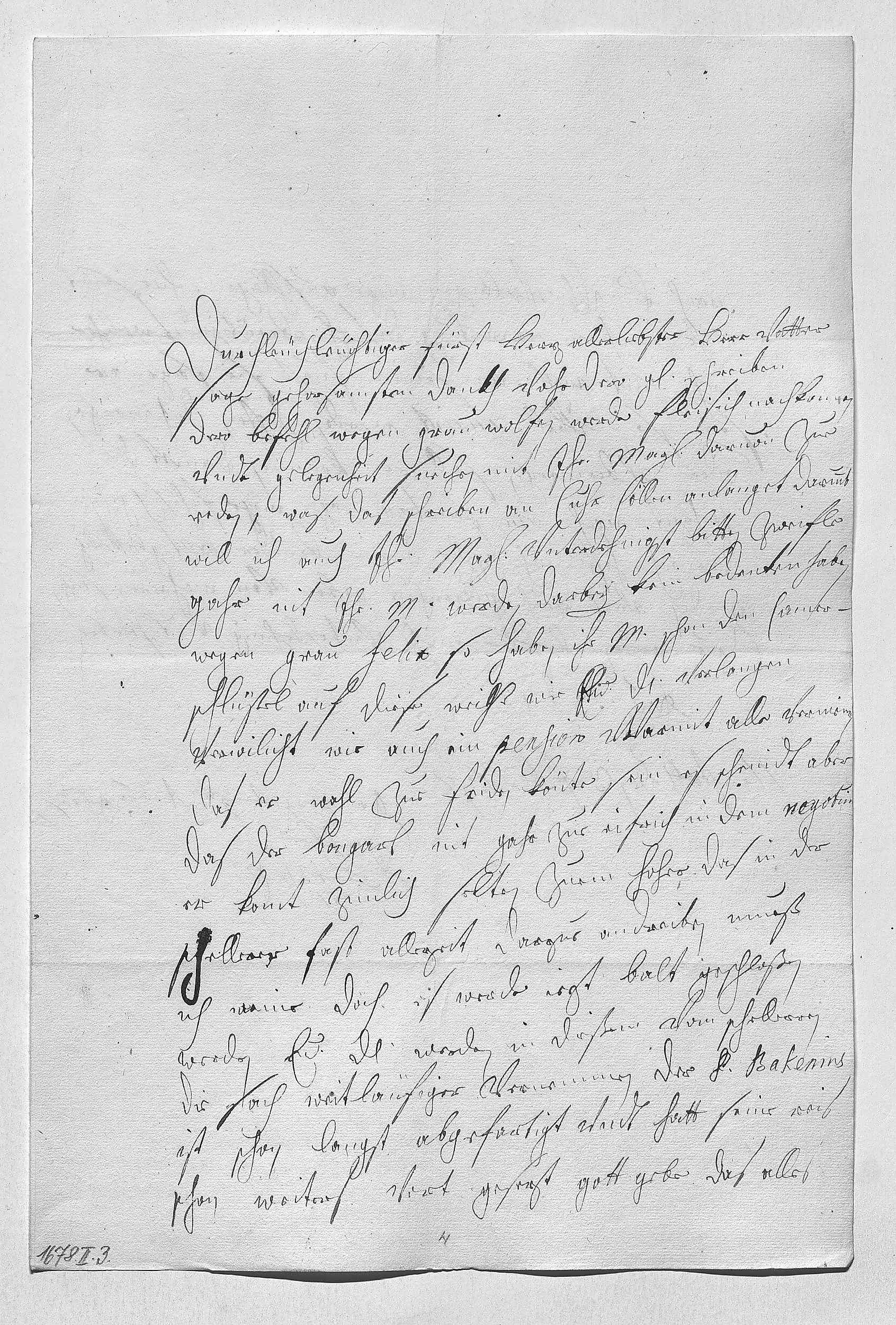 0001Durchleüchleüchtiger Fürst, herz allerliebster herr vatter 0002Sage gehorsamsten dankh vohr dero gnädiges schreiben. 0003Dero befehl wegen Grau Wolfen werde fleisich nachkomen 0004vndt gelegenheit suechen, mit ihr Mayestät daruon zue 0005reden. Was das schreiben an Cuhr Cöllen anlanget, darumb 0006will ich auch ihr Mayestät vnterdehnigst bitten, zweifle 0007gahr nit, ihr Mayestät werden darbey kein bedenken haben. 0008Wegen Grau Felix, so haben ihr Mayestät schon den camer- 0009schlüßel auf diese weiß, wie ewer Durchlaucht verlangen, 0010verwilicht wie auch ein pension, darmit alle vermeinen, 0011das er wohl zue friden könte sein. Es scheindt aber, 0012das der Bongart nit gahr zue eifrich in dem negotium, 0013er komt zimlich selten zuem Hoher, das in der 0014Schellerer fast allezeit darzue andreiben mueß. 0015Ich meine doch, es werde iezt balt geschloßen 0016werden, ewer Durchlaucht werden in dießem vom Schellerren 0017die sach weitläufiger vernemmen. Der Pater Bakenius 0018ist schon langst abgefartigt vndt hatt seine reis 0019schon weiters vort gesezt, gott gebe, das alles