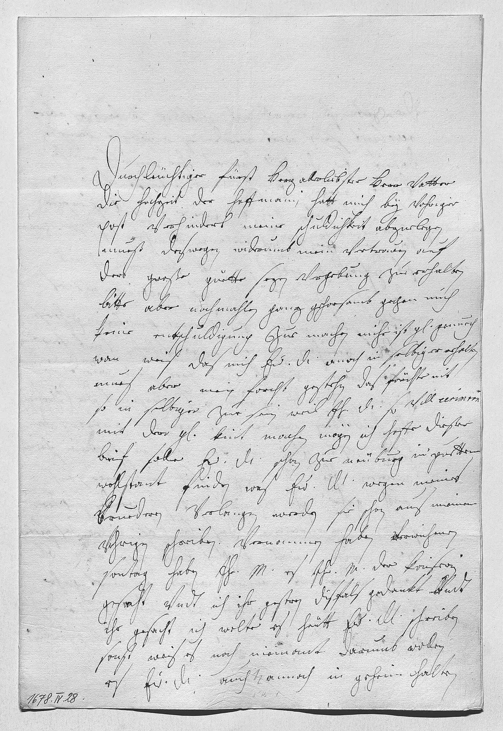 0001Durchleüchtiger Fürst, herz allerliebster herr vatter 0002Die hochzeit der Hoffmanin hatt mich bey vohriger 0003post verhindert, meine schuldichkeit abzuelegen, 0004mueß deswegen widerumb mein vertrauen auf 0005dero große güette sezen, vergebung zu erhalten. 0006Bitte aber nochmahlen ganz gehorsamb, gegen mich 0007keine entschuldigung zue machen, mihr ist gnade genuech, 0008wan ich weis, das mich ewer Durchlaucht anoch in selbiger erhalten. 0009Mues aber mein forcht gestehn, das förchte, nit 0010so in selbiger zue sein, weil ihr Durchlaucht so vill cerimoni 0011mit dero gehorsamsten kint machen mögen. Ich hoffe, dießer 0012brif solle ewer Durchlaucht schon zue Neüburg in guettem 0013wohlstant finden. Was ewer Durchlaucht wegen meines 0014bruederen verlangen, werden sie schon aus meinem 0015vohrigen schreiben vernommen haben. Verwichenen 0016sontag haben ihr Mayestät es ihr Mayestät der Kaiserin 0017gesacht vndt ich ihr gestern disfals gedankt vndt 0018ihr gesacht, ich wolte es heütt ewer Durchlaucht schreiben. 0019Sonst weis es noch niemant, darumb wollen 0020es ewer Durchlaucht auch annoch in geheim halten.