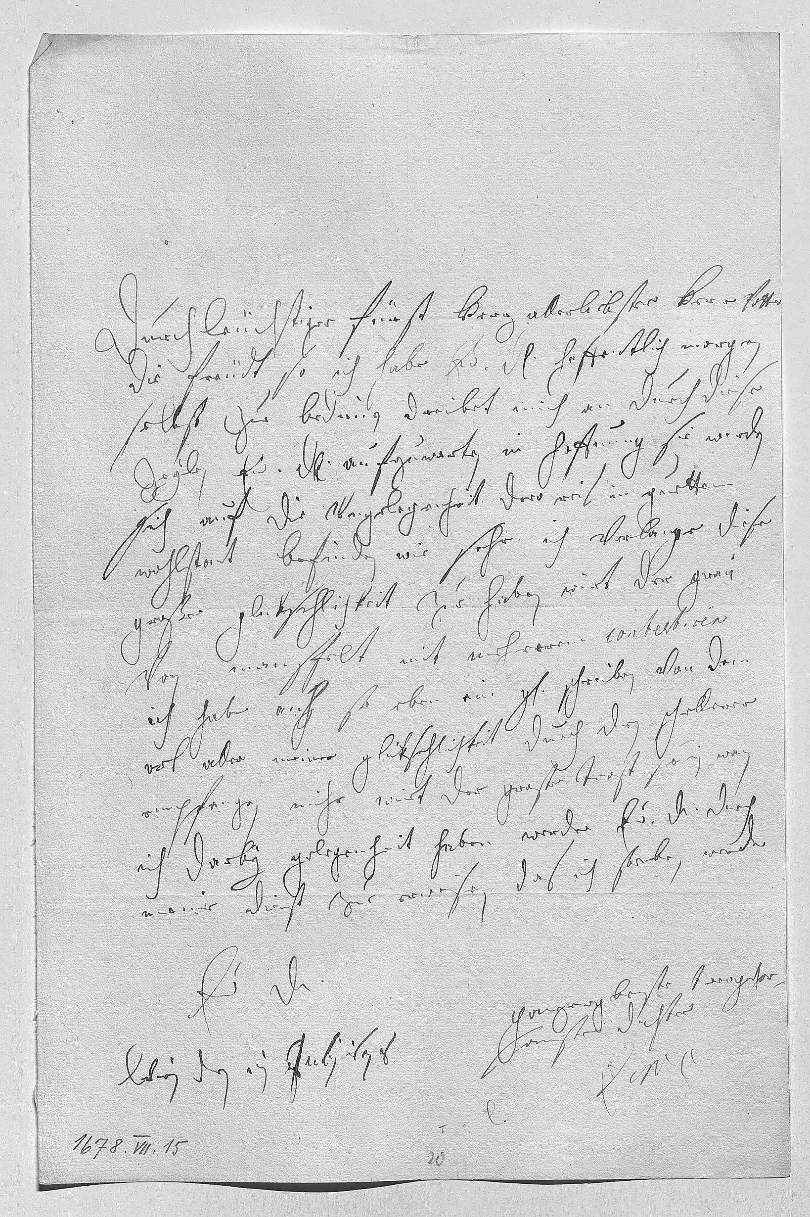 0001Durchleüchtiger Fürst, herz allerliebster herr vatter 0002Die freüdt so ich habe, ewer Durchlaucht hoffentlich morgen 0003selbst zue bedienen, dreibet mich an, durch diese 0004zeylen ewer Durchlaucht aufzuwarten in hoffnung, sie werden 0005sich auf die vngelegenheit dero reis in guettem 0006wohlstant befinden. Wie sehr ich verlange, diese 0007große gluksehlichkeit zue haben, wirt der Grau 0008von Mansfelt mit mehrerem contestiren. 0009Ich habe auch so eben ein gnädiges schreiben von dem 0010ort aller meiner glüksehlichkeit durch den Schellerer 0011empfangen. Mihr wirt der groste trost sein, wan 0012ich darbey gelegenheit haben werde, ewer Durchlaucht durch 0013meine dienst zue erweisen, das ich sterben werde 0014ewer Durchlaucht 0015ganzergebenste trewgehor- 0016samste dochter 0017EMT 0018Wien den 15 julij 1678