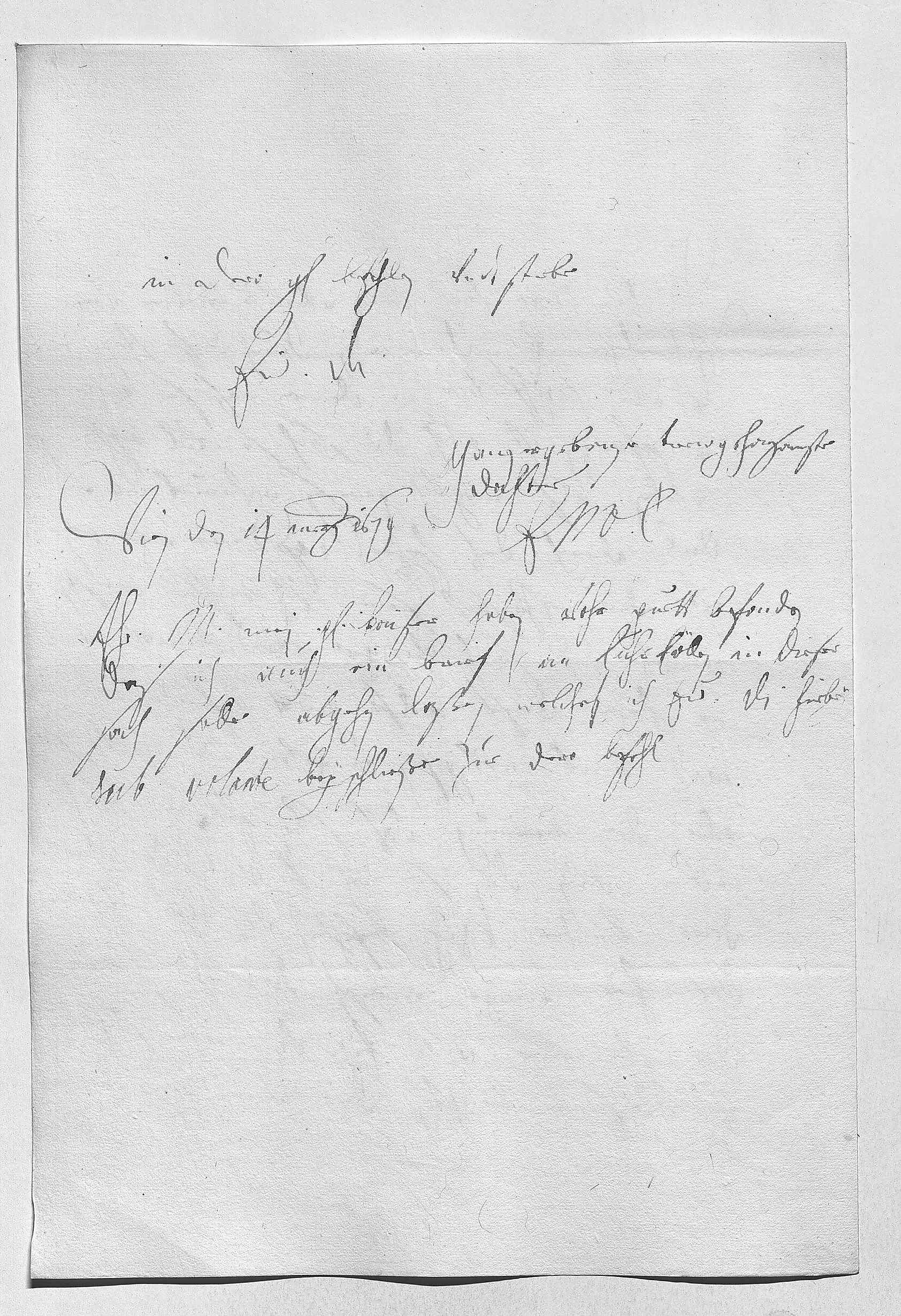 0001Durchleüchtiger Fürst, herz allerliebster herr vatter 0002Ich hoffe, ewer Durchlaucht werden durch diese staffette 0003ah alle satisfaction in deme, was sie verlanget, 0004empfangen. Ist auch die sach so vill beschleünigt 0005worden als möglich gewesen. Wahrumb nit ein 0006deil durch des Hohers expedition ergangen, 0007ist die vhrsach sein üblaufsein gewesen, 0008welches die sach lenger retardirt hätte, vndt 0009er Hoher dieses allso guett befenden das ienige, 0010was amb nötigisten in geheim zue halten, seint 0011alle der meinung, das sollen ewer Durchlaucht nuhr 0012selber duen, dan sie iah h v vndt über 0013dero kinder zue befehlen, das also nit nötig, 0014das hier einiger mensch daruon wiße. 0015Der Schellerer wirt ewer Durchlaucht weitleüfiger 0016in diesem berichten. Due mich also hiermit