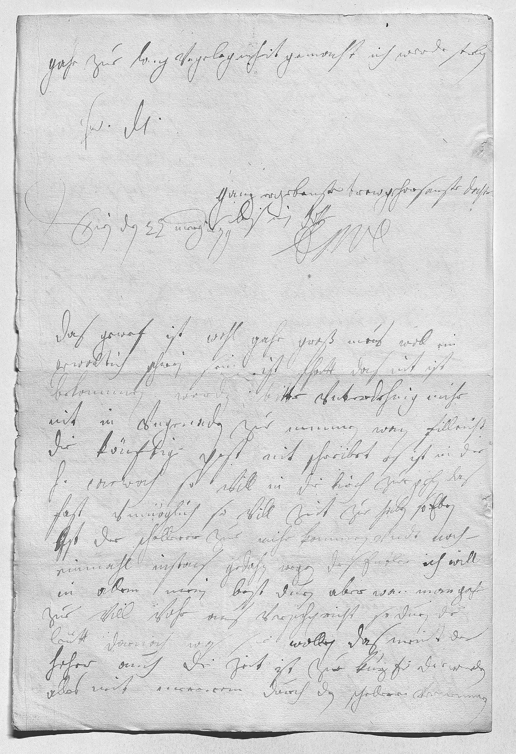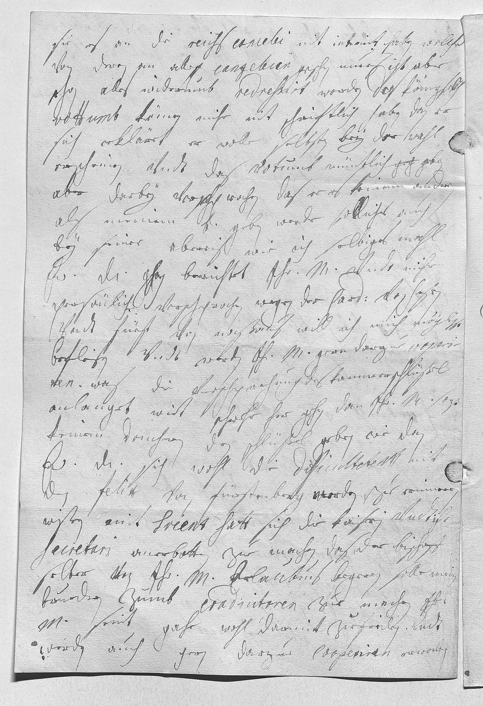 0001Durchleüchtiger Fürst, herz allerliebster herr vatter 0002Bitte vnterdehnig vmb vergebung, das ich mit 0003vohriger post meine schuldichkeit nit habe abgelegt. 0004Mihr seint aus gewesen zue Hiezingen, dan sonst 0005kan man nirgens hin wegen übelen wegs, 0006vndt so balt mihr seint widerumb kommen, 0007ist die Kaiserin kommen. Gottlob, das die Erzherzogin 0008noch continuirt in ihrer hoffnung. Die Konigin in 0009Pohlen vndt sie werden schier zuesamen kommen. 0010Meine einzige sorge ist iezt allein auf das 0011niderkommen ihr Durchlaucht meiner geliebsten frau mutter . Ewer 0012Durchlaucht haben gahr zue große sorchfalt vohr mich, 0013das sie die Marta refusiren, bitte aber 0014nuhr vnterdehnig, ewer Durchlaucht wollen gnädigst consideriren, 0015wie schwehr ihr Durchlaucht das leztere mahl nider 0016kommen, vndt sie seint seider deme nit 0017iünger worden vndt seider das sie das lezte 0018mahl zue Neüburg die grose gefahr 0019ausgestanden, seint sie noch nie widerumb 0020so gahr stark gewesen, als vohrhin. Dieses derf