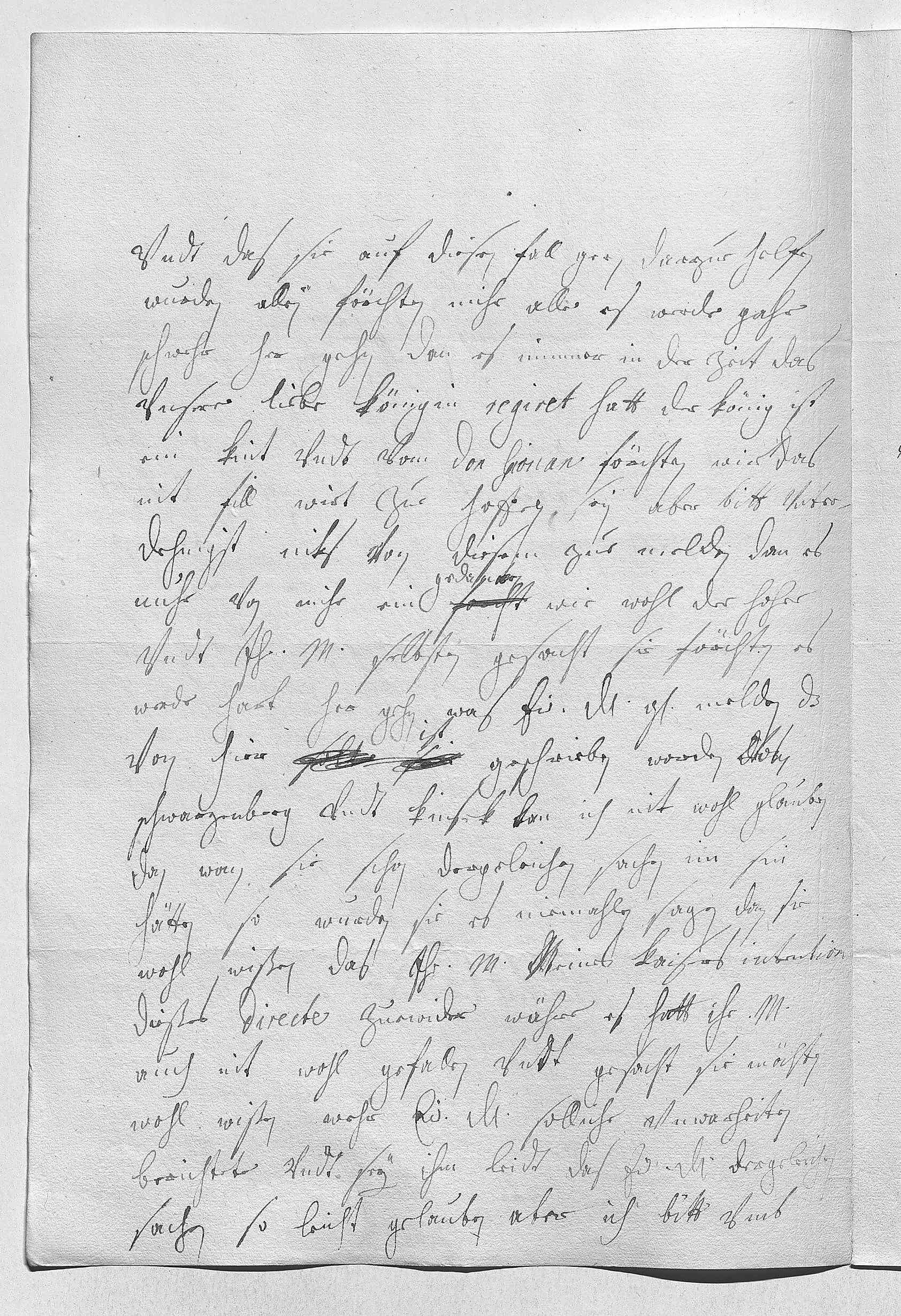 0041gottes willen, ewer Durchlaucht nemmen sich dießes niks an, 0042gegen keinen menschen auf der ganzen welt, dan 0043wan ihr Mayestät einmahl das innen wurden, so wurden 0044sie sich niemahlen gegen mich in dergleichen 0045materi herraus laßen, das ich merken kunte, 0046was ihnen angenehm währe oder nit. Es wehre 0047wohl gar guett, wan ewer Durchlaucht kein bedenken 0048hetten, die leüdt zue bennennen, die es geschrieben, 0049vndt wan ewer Durchlaucht ein anders mahl, wenn so wah was 0050fohr komt, sie es mihr durch einen anderen weg 0051schreiben, oder wan sie gern hätten, das es ihr Mayestät 0052wusten, es schreiben, aber sich darbey ahnemmen, 0053als wan sie es nit glaubeten. Ich bitte vnterdeh- 0054nig vmb vergebung, das ich so küen meine 0055vngereimte gedanken schreibe, geschicht gewis aus 0056kintliger affection. Hoffe, ewer Durchlaucht werden mihr es 0057nit in vngenaden nemmen. Ich trawe dannoch 0058niemant als dem Hoher recht, aber mihr haben 0059der leüt von nöthen, müeßen dem henker ein 0060liechtel anzünden. Ewer Durchlaucht glauben gewis, das ihr