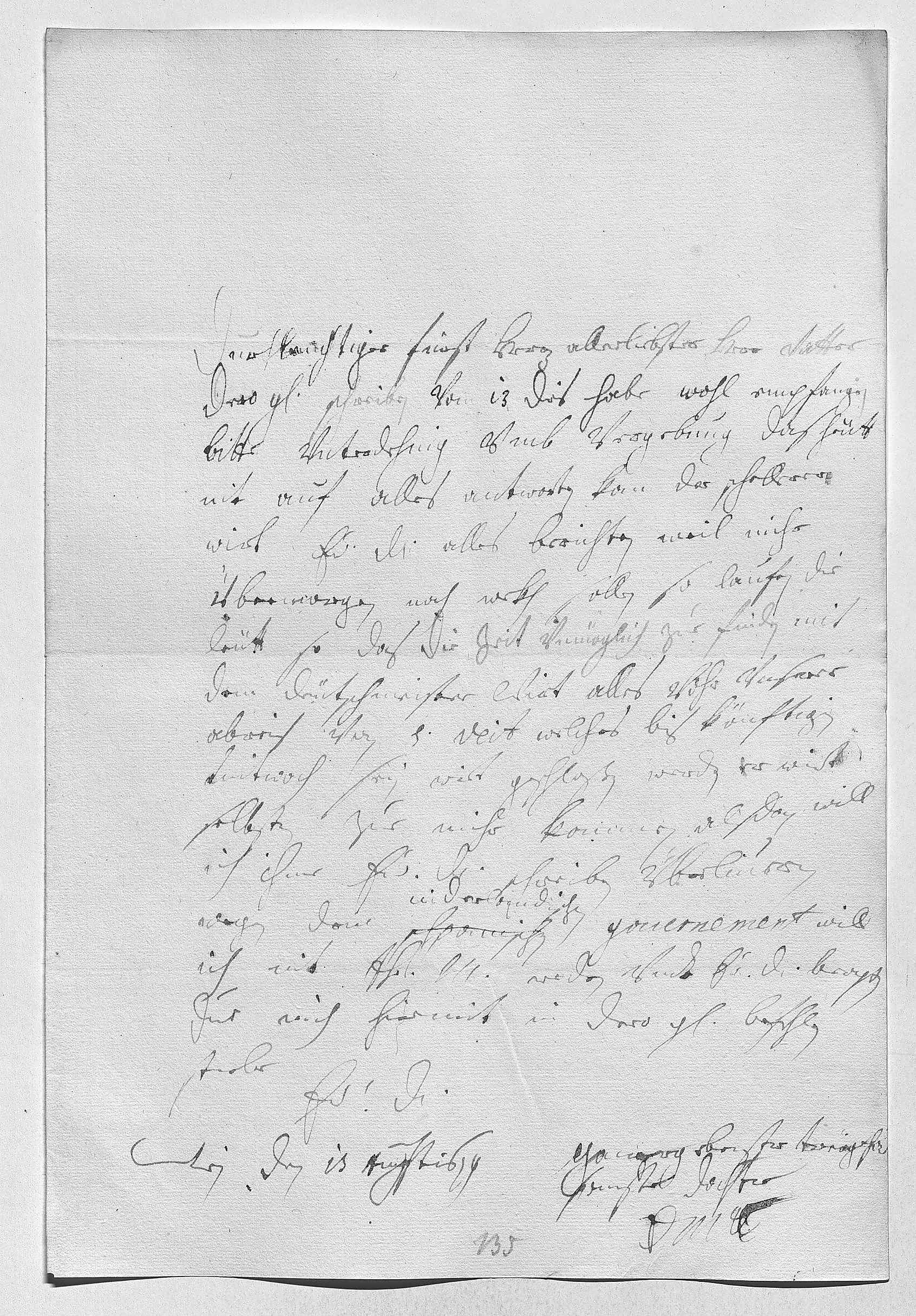 0001Durchleüchtiger Fürst, herz allerliebster herr vatter 0002Dero gnädiges schreiben vom 13 dies habe wohl empfangen. 0003Bitte vnterdehnig vmb vergebung, das heütt 0004nit auf alles antworten kan. Der Schellerer 0005wirt ewer Durchlaucht alles berichten. Weil mihr 0006übermorgen noch wekh sollen, so laufen die 0007leütt so, das die zeit vnmöglich zue finden. Mit 0008dem Deütschmeister wirt alles vohr vnserer 0009abreis von Sankt Veit, welches bis könftigen 0010mitwoch sein wirt, geschloßen werden. Er wirt 0011selbsten zue mihr kommen, alsdan will 0012ich ihme ewer Durchlaucht schreiben überliuern. 0013Wegen dem schpanischen niderlandischen gouernement will 0014ich mit ihr Mayestät reden vndt ewer Durchlaucht berichten. 0015Due mich hiermit in dero gnade befehlen 0016sterbe 0017ewer Durchlaucht 0018ganzergebenste trewgehor- 0019samste dochter 0020EMT 0021Wien den 13 august 1679