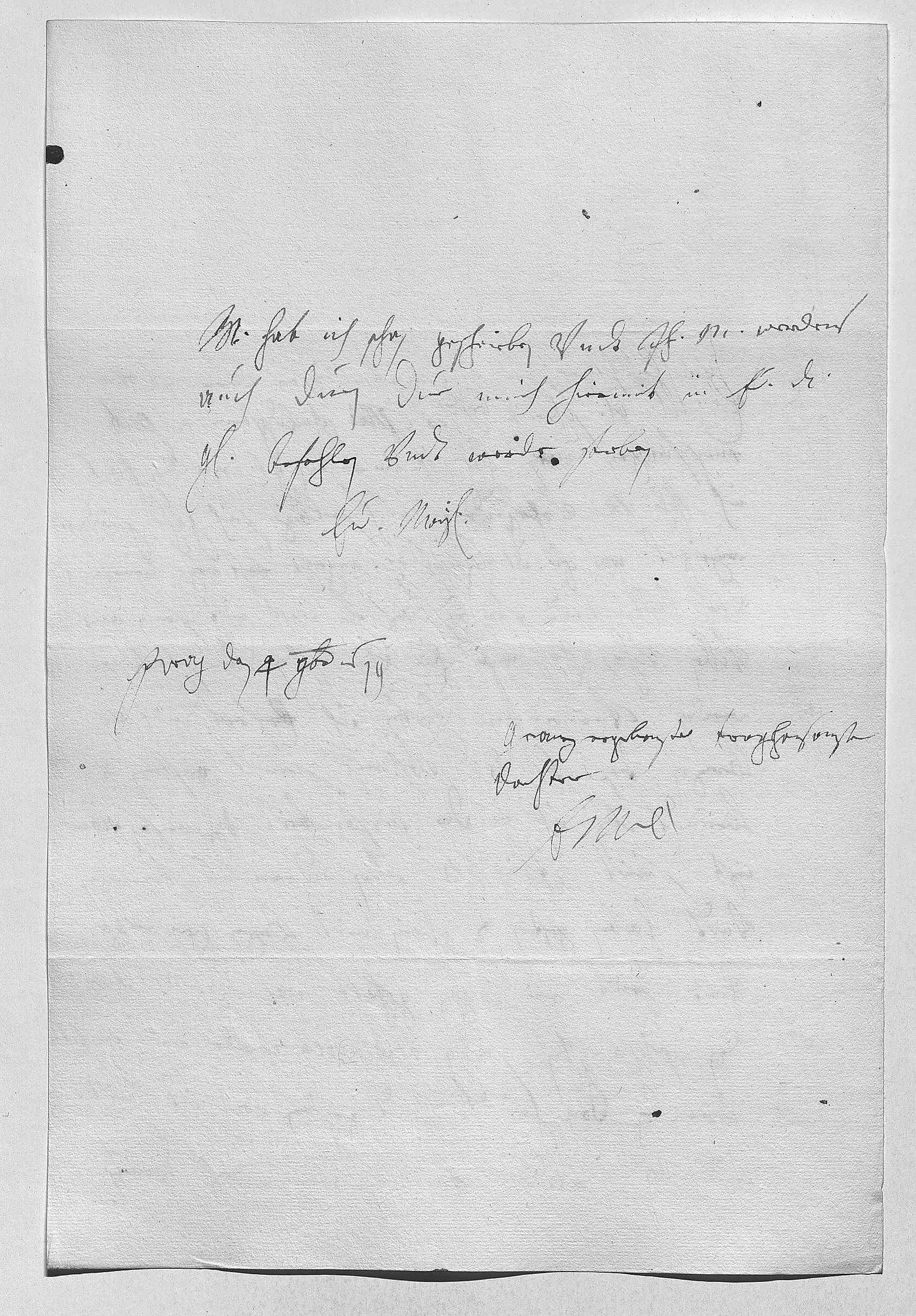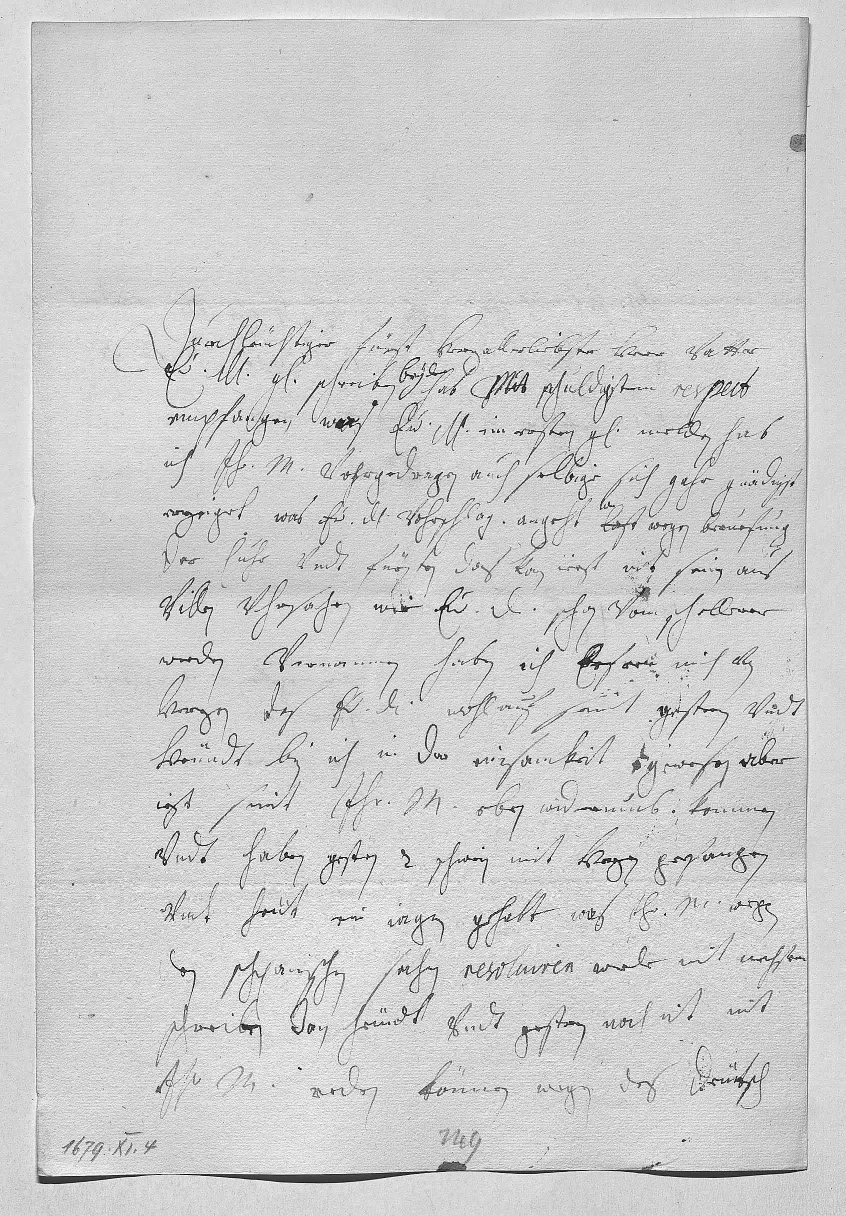 0001Durchleüchtiger Fürst, herzallerliebster herr vatter 0002Ewer Durchlaucht gnädige schreiben beyde hab mit schuldigstem respect 0003empfangen. Was ewer Durchlaucht im ersten gnädigst melden, hab 0004ich ihr Mayestät vohrgedragen, auch selbige sich gahr gnädigst 0005erzeiget. Was ewer Durchlaucht vohrschlag angeht last wegen beruefung 0006der cuhr vndt fürsten, das kan iezt nit sein aus 0007villen vhrsachen, wie ewer Durchlaucht schon vom Schellerer 0008werden vernommen haben. Ich erfrew mich von 0009herzen, das ewer Durchlaucht wohlauf seint. Gestern vndt 0010heündt bin ich in der einsamkeit gewesen, aber 0011iezt seint ihr Mayestät eben widerumb kommen 0012vndt haben gestern 2 schwein mit hezen gefangen 0013vndt heüt ein iagen gehabt. Was ihr Mayestät wegen 0014den schpanischen sachen resoluiren, werde mit nechstem 0015schreiben, dan heündt vndt gestern habe noch nit mit 0016ihr Mayestät reden können. Wegen des Deütsch