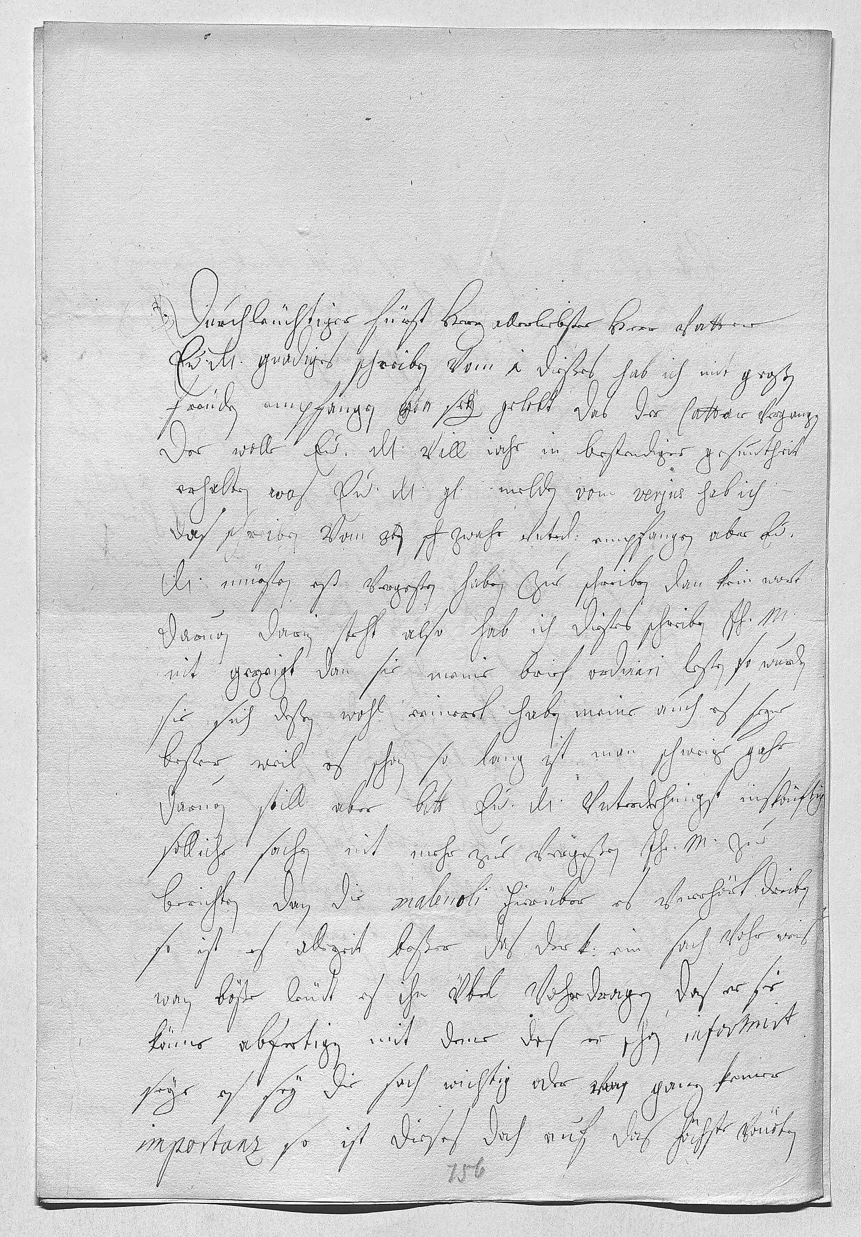 0001Durchleüchtiger Fürst, herz allerliebster herr vatter 0002Ewer Durchlaucht gnadiges schreiben vom 1 dießes hab ich mit großen 0003freüden empfangen. Gott sey gelobt, das der cattar vergangen, 0004der wolle ewer Durchlaucht vill iahr in bestendiger gesuntheit 0005erhalten. Was ewer Durchlaucht gnädig melden vom Verjus hab ich 0006das schreiben vom 3ten sch zwahr vnterdehnigst empfangen, aber ewer 0007Durchlaucht müeßen eß vergeßen haben zue schreiben, dan kein wort 0008daruon darin steht. Also hab ich dieses schreiben ihr Mayestät 0009nit gezeigt, dan sie meine brief ordinari leßen, so wurden 0010sie sich deßen wohl erineret haben. Meine auch, es seye 0011beßer, weil es schon so lang ist, man schweige gahr 0012daruon still, aber bitt ewer Durchlaucht vnterdehnigst, inskönftig 0013solliche sachen nit mehr zue vergeßen ihr Mayestät zue 0014berichten, dan die maleuoli hierüber es vnerhört dreiben. 0015So ist es allezeit beßer, das der Kaiser ein sach vohr weis, 0016wan böße leütt es ihm übel vohrdragen, das er sie 0017könne abfertigen mit deme, das er schon informirt 0018seye, es sey die sach wichtig oder von ganz keiner 0019importanz, so ist dieses doch auf das höchste vonöten.