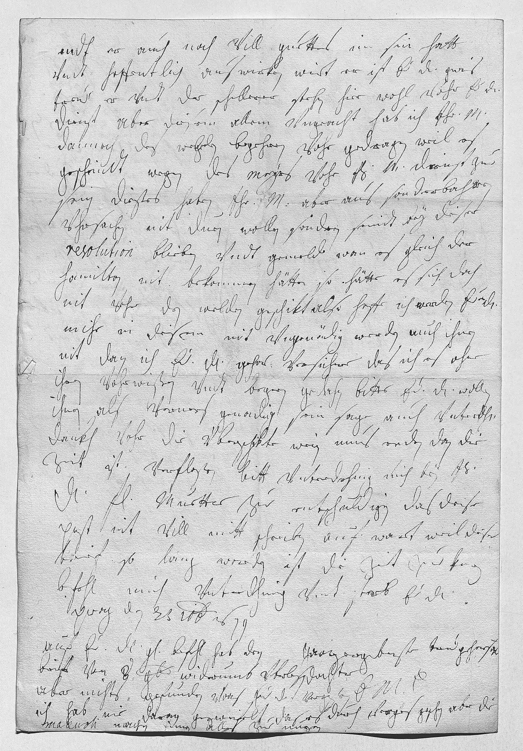 0069endt, er auch noch vill guettes im sin hatt 0070vndt hoffentlich auswirken wirt. Er ist ewer Durchlaucht gwis 0071trew, er vndt der Schellerer stehen hier wohl vohr ewer Durchlaucht 0072dienst. Aber diesem allem vngeacht hab ich ihr Mayestät 0073dannoch des Welden begehren vohr gedragen, weil es 0074gescheindt wegen des Meyrs vohr ihr Mayestät dienst zue 0075sein. Dießes haben ihr Mayestät aber aus sonderbahren 0076vhrsachen nit duen wollen, sondren seindt bey dieser 0077resolution blieben vndt haben gemeld, wan es gleich der 0078Hamilton nit bekommen hätte, so hätte es sich doch 0079nit vohr den Welden geschikt. Also, hoffe ich, werden ewer Durchlaucht 0080mihr in diesem nit vngenädig werden, auch ihnen 0081nit, dan ich ewer Durchlaucht gehorsamst versichere, das ich es ohne 0082ihren vohrwißen vndt begern gedahn. Bitte, ewer Durchlaucht wollen 0083ihnen als verners genadig sein. Sag auch vnterdehnigsten 0084dankh vohr die überschikte wein. Mues enden, dan die 0085zeit ist verfloßen. Bitt vnterdehnig, mich bey ihr 0086Durchlaucht fraw muetter zue entschuldigen, das diese 0087post nit vill mitt schreiben auf wart, weil dieser 0088brief so lang worden, ist die zeit zue kurz. 0089Befehl mich vnterdehnig vndt sterb ewer Durchlaucht 0090ganzergebenste trewgehorsamste 0091dochter 0092EMT 0093Prag den 23 decembris 16790094Auf ewer Durchlaucht gnädigen befehl hab den 0095brief von 3 novembris widerumb vberlesen, 0096aber nichts gefunden, was ewer Durchlaucht vergeßen. 0097Ich hab nie daran gezweifelt, das es durch verges geschen, aber die 0098maleuoli machen innen alles zue nuzen.