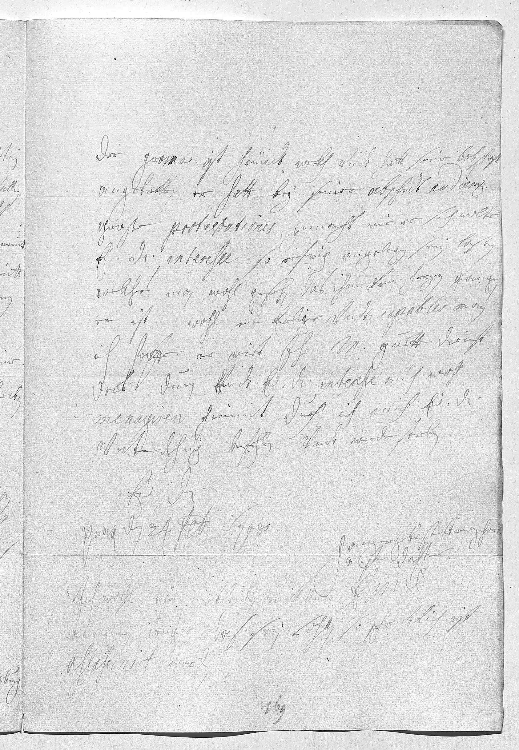 0036Der Grana ist heündt wekh vndt hatt seine botschaft 0037angetretten. Er hatt bey seiner abschidt audienz 0038große protestationes gemacht, wie er sich wolte 0039ewer Durchlaucht interesse so eifrig angelegen sein laßen, 0040welches man wohl gesehn, das ihm von herzen gangen. 0041Er ist wohl ein erliger vndt capabler man, 0042ich hoffe, er wirt ihr Mayestät guette dienst 0043dort duen vndt ewer Durchlaucht interesse auch wohl 0044menagiren. Hiermit dueh ich mich ewer Durchlaucht 0045vnterdehnig befehlen vndt werde sterben 0046ewer Durchlaucht 0047ganzergebenste trewgehors- 0048amste dochter 0049EMT 0050Prag den 24 februarij 1679800051Ich trage wohl ein mitleiden mitt dem 0052armmen Iörger, das sein sohn so schantlich ist 0053assassinirt worden.