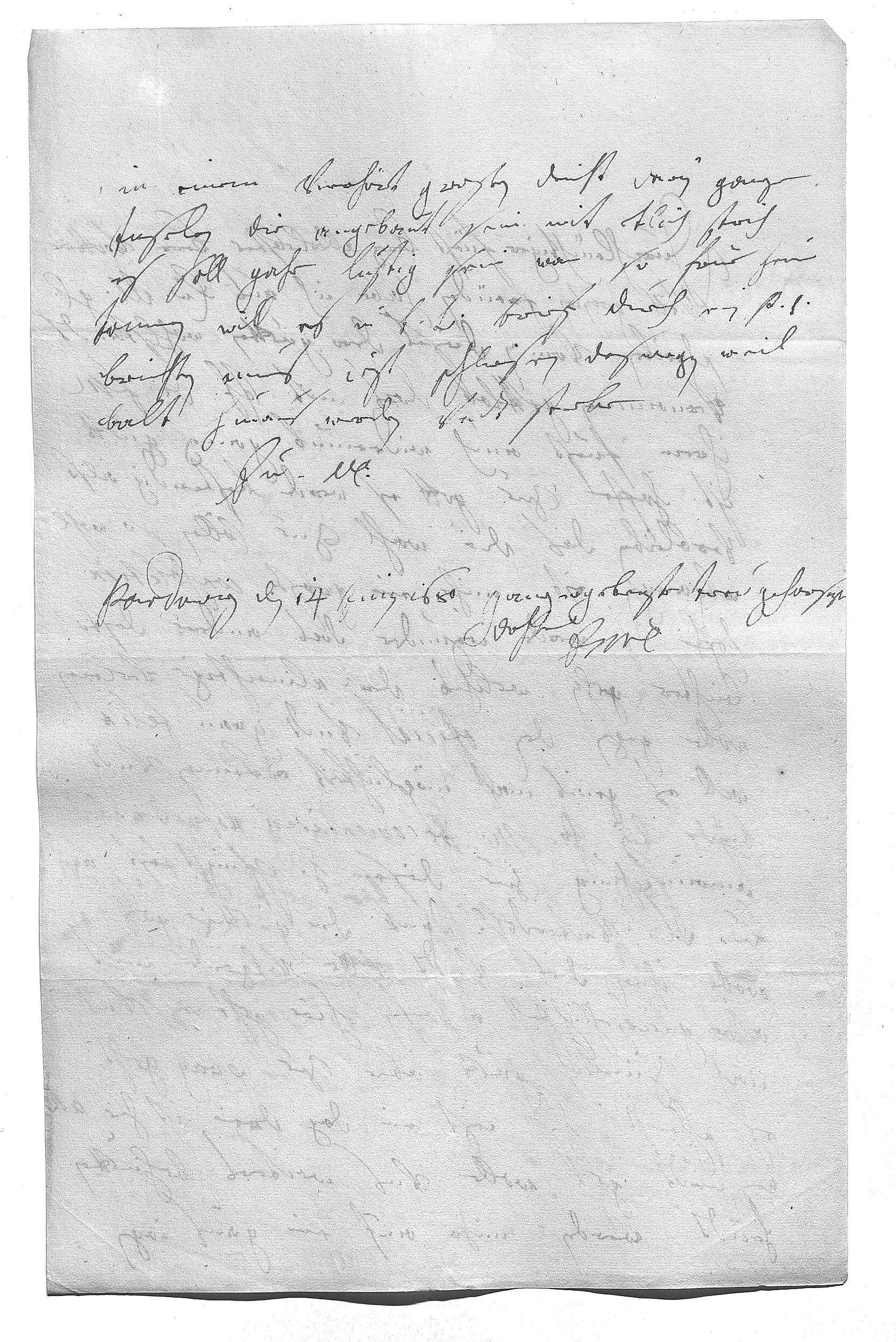 0022in einem vnerhört großen deicht darin ganze 0023inselen, die angebaut sein mit etlich strich. 0024Es soll gahr lustig sein, wan so früe heim 0025kommen, will es in bruder Ludwig brief durch ein Postscriptum 0026berichten. Mues izt schliesen, deswegen weil 0027balt hinaus werden, vndt sterbe 0028ewer Durchlaucht 0029ganz ergebenste trew gehorsamst 0030dochter EMT 0031Pardowiz den 14 junij 1680