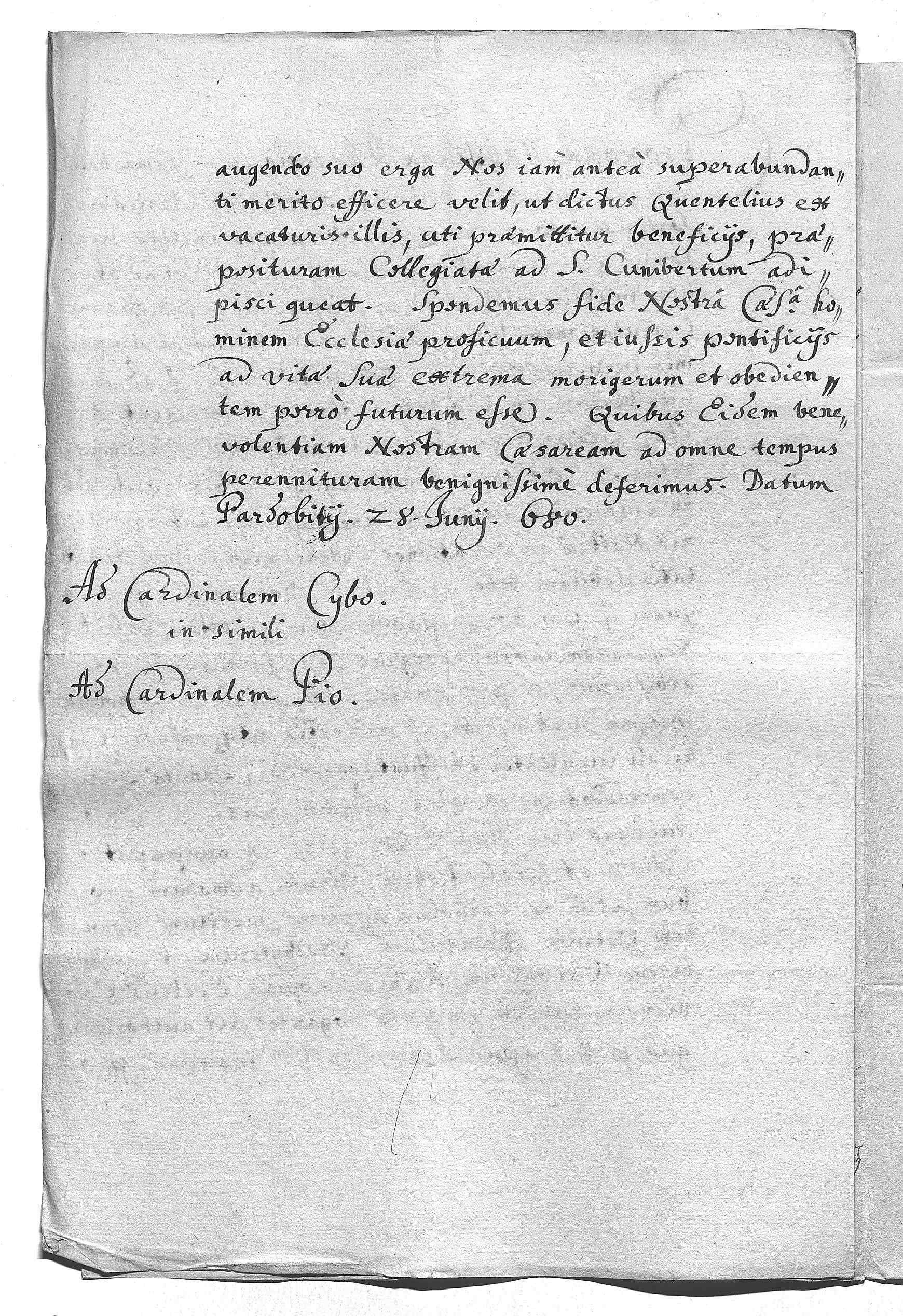 Empfänger: Kardinal Alderano Cibo Kardinal Carlo Pio di Savoia