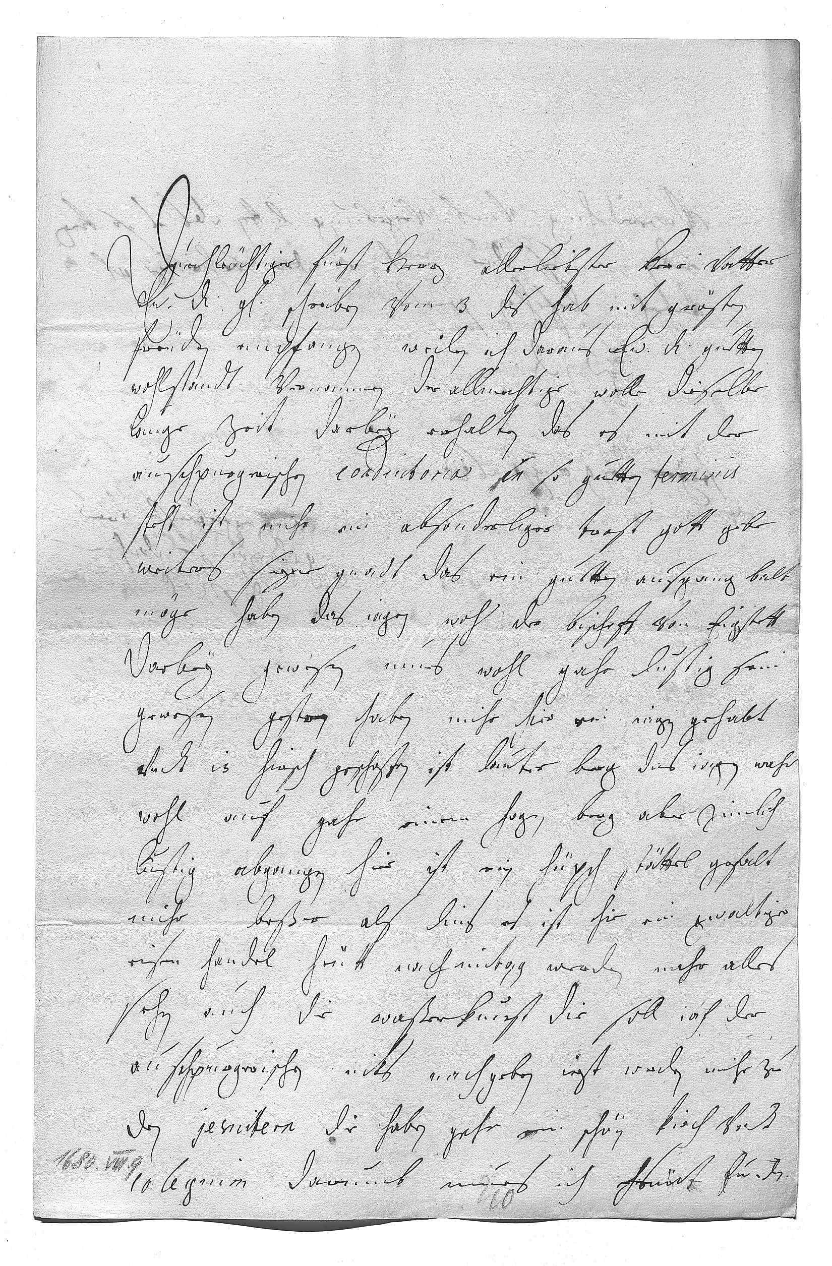 0001Durchleüchtiger Fürst, herz allerliebster herr vatter 0002Ewer Durchlaucht gnädiges schreiben vom 3 dis hab mit grösten 0003freüden empfangen, weilen ich daraus ewer Durchlaucht guetten 0004wohlstandt vernommen, der allmechtige wolle dieselbe 0005lange zeit darbey erhalten. Das es mit der 0006auschpurgerischen coadiutoria in so guetten terminis 0007steht, ist mihr ein absonderliger trost, gott gebe 0008weiters seyne gnadt, das ein guetten ausgang balt 0009möge haben. Das iagen, woh der Bischoff von Eigstett 0010darbey gewesen, mues wohl gahr lustig sein 0011gewesen. Gestren haben mihr hier ein iagen gehabt 0012vndt 13 hirsch geschoßen. Ist lauter berg, das iagen wahr 0013wohl auf gahr einem hogen berg, aber zimlich 0014lustig abgangen. Hier ist ein hüpsch stättel, gefalt 0015mihr beßer als Lins, es ist hie ein gwaltiger 0016eisen handel. Heütt nachmitag werden mihr alles 0017sehn, auch die waßerkunst, die soll iah der 0018auschpurgerischen niks nachgeben. Iezt werden mihr zu 0019den jesuitern, die haben gahr ein schön kirch vndt 0020colegium, darumb mues ich heünt ewer Durchlaucht