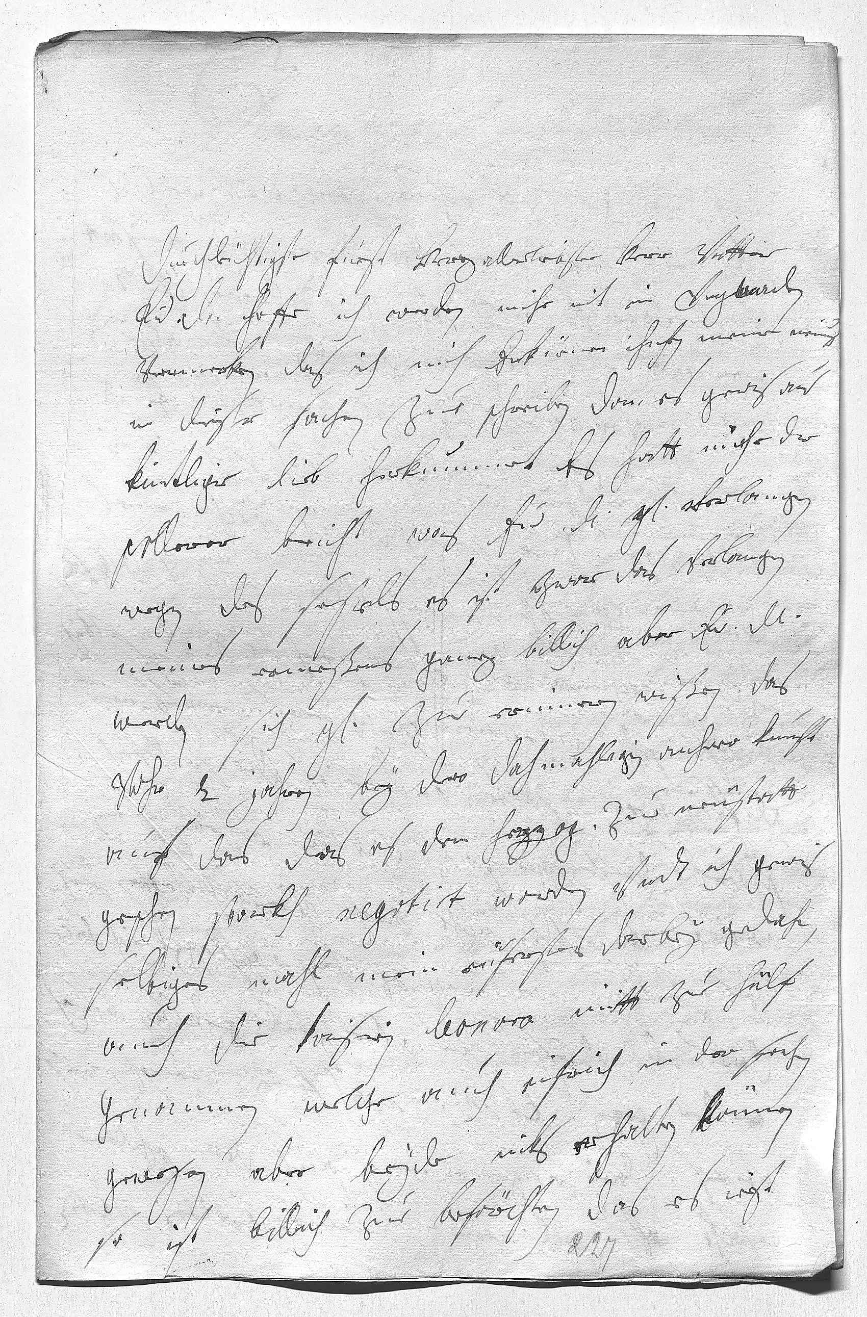 0001Durchleüchtigster Fürst, herzallerliebster herr vatter 0002Ewer Durchlaucht, hoffe ich, werden mihr nit in vngnaden 0003vermerken, das ich mich erküene, ihnen meine meinung 0004in dieser sachen zue schreiben, dan es gewis aus 0005kintliger lieb herkummet. Es hatt mihr der 0006Schellerer bericht, was ewer Durchlaucht gnädig verlangen 0007wegen des seßels. Es ist zwar das verlangen 0008meines ermeßens ganz billich, aber ewer Durchlaucht 0009werden sich gnädig zue erinnern wißen, das 0010vohr 2 jahren bey dero dahmahligen anhero kunft 0011auf das, das es den Herzog zue Neüstatt 0012geschen, starkh negotirt worden, vndt ich gewis 0013selbiges mahl mein eüserstes darbey gedahn, 0014auch die Kaiserin Leonora mitt zue hülf 0015genommen, welche auch eifrich in der sachen 0016gewesen, aber beyde niks erhalten können. 0017So ist billich zue beförchten, das es iezt