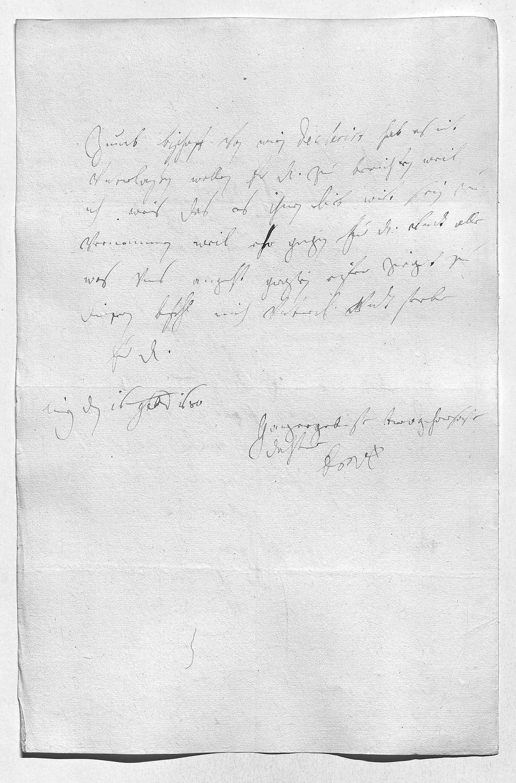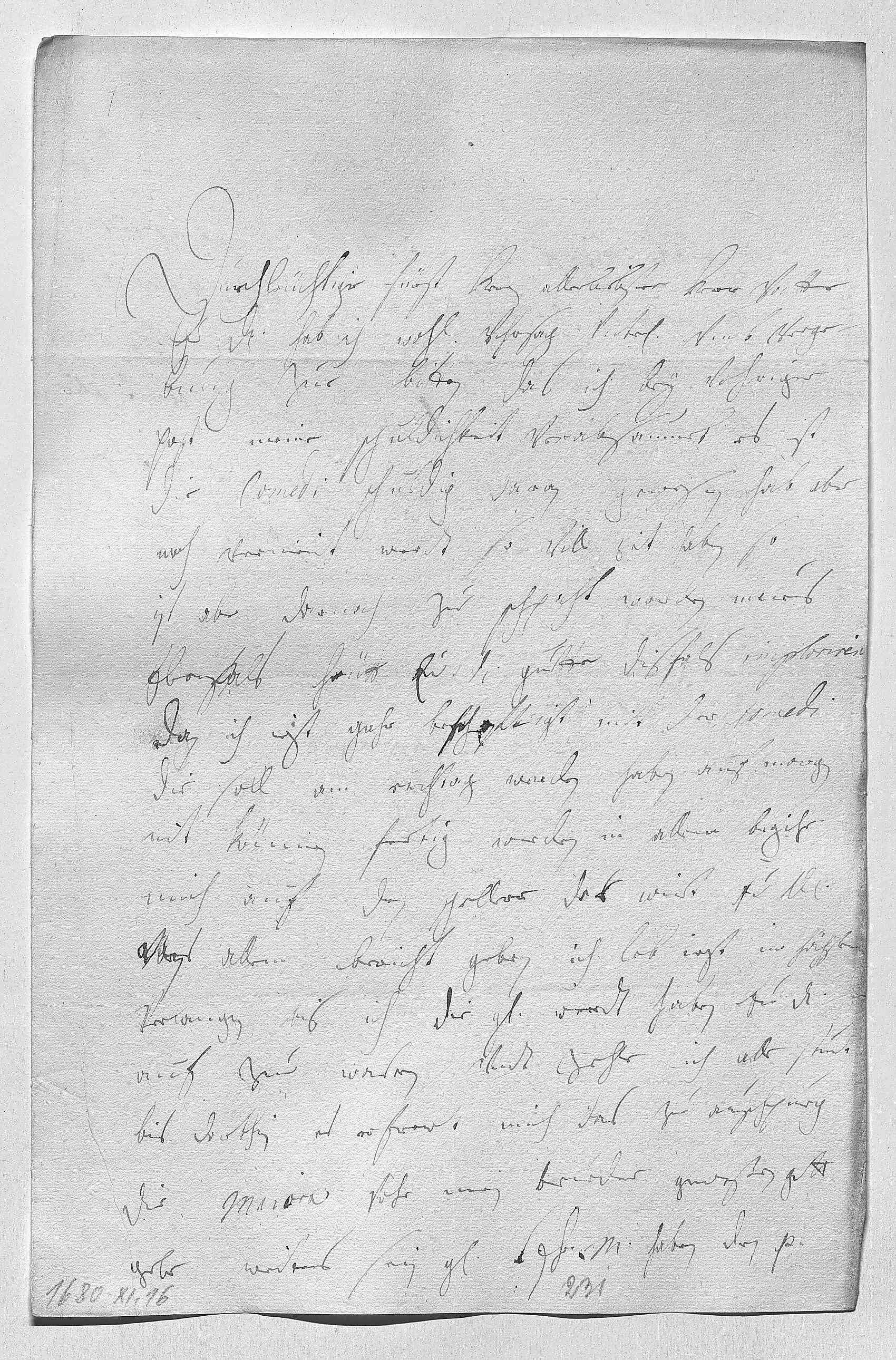 0019zumb Bischoff von Wien declarit, hab es nit 0020vnterlaßen wollen, ewer Durchlaucht zue berichten, weil 0021ich weis, das es ihnen lieb wirt sein zue 0022vernemmen, weil ehr gegen ewer Durchlaucht vndt alle 0023was vns angeht großen eifer zeiget zu 0024dienen. Befehl mich vnterdehnigst vndt sterbe 0025ewer Durchlaucht 0026ganzergebenste trewgehorsamste 0027dochter 0028EMT 0029Linz den 16 novembris 1680