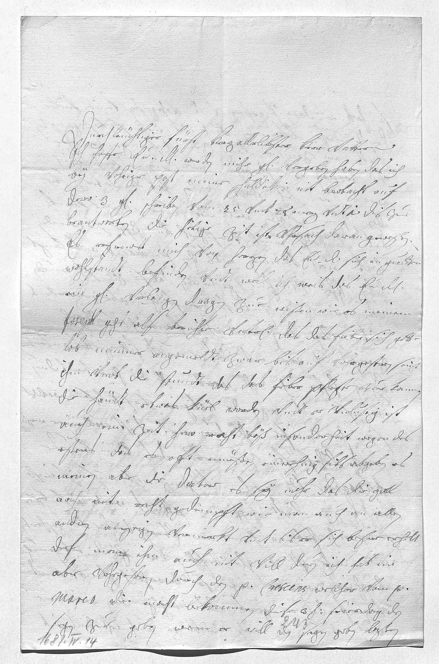 0001Durchleüchtiger Fürst, herzallerliebster herr vatter 0002Ich hoffe, ewer Durchlaucht werden mihr gnädig vergeben haben, das ich 0003bey vohriger post meine schuldichkeit nit beobacht, auf 0004dero 3 gnädige schreiben vom 25 vndt 28 merz vndt 1 dis zue 0005beantworten. Die heilige zeit ist vhrsach daran geweßen. 0006Es erfrewet mich von herzen, das ewer Durchlaucht sich in guettem 0007wohlstandt befinden. Vndt weil ich weis, das ewer Durchlaucht 0008ein gnädiges verlangen dragen zue wißen, wie es meinem 0009Josephl geht, als berichte vnterdehnigst, das das fieber sich gott- 0010lob nimmer angemeldt. Zwar bis auf vohrgestren seint 0011ihm vmb die stundt, das das fieber pflegte zue kommen, 0012die händt etwas küel worden vndt er vnlustig, ist 0013auch ein zeit hero recht böß, insonderheit wegen des 0014eßens, das es oft müeßen einwehnig fils abgeben. Es 0015meinen aber die doctor, es sey nuhr, das die gall 0016noch nit recht gedempft, wie man auch an allen 0017andren anzeigen vermerkt, vndt bis er sich beßer erholt, 0018derf man ihm auch nit vill duen. Ich hab im 0019aber vohrgestren durch den Pater Crescens, welcher vom Pater 0020Marco die macht bekommen, diese 3 heiligen feierdag den 0021segen zue geben, wem er will, den segen geben laßen,