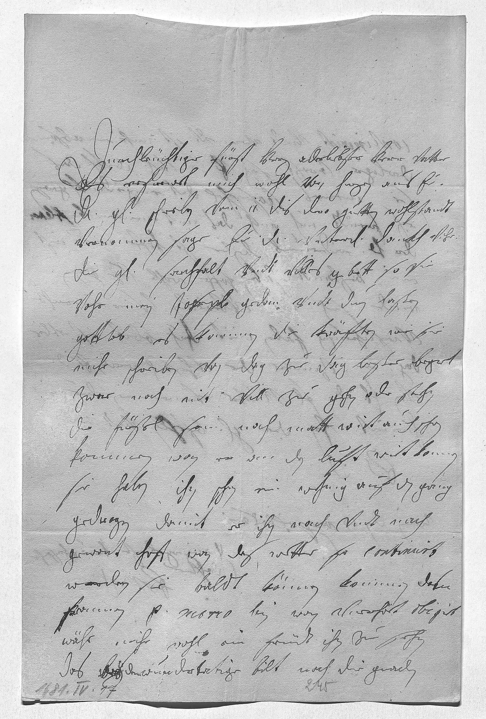 0019continuirt vndt vermehrt, ist mihr ein abson- 0020derliger trost, sag ewer Durchlaucht vnterdehnigsten dankh, das 0021sie meines Josephrl dort eingedenkh gewesen. 0022Es freüdt mich auch, das mit meinen bruder Alexan - 0023der Liebden widerumb beßer ist, hoffe, werdt izt 0024ein bestandt haben. Hoffe wohl, Cuhr Beyern 0025werde sich nit übereilen, bis er ein rechte 0026versicherung haben wirt. Ich bleib izt etlige 0027dag im zimmer, die vhrsach werden ewer Durchlaucht 0028von ihr Durchlaucht fraw mutter vernemmen. Due mich 0029hirmit in dero gnade befehlen vndt sterbe 0030ewer Durchlaucht 0031ganzergebenste trewgehorsamste 0032dochter 0033EMT 0034Wien den 17 apprill 1681