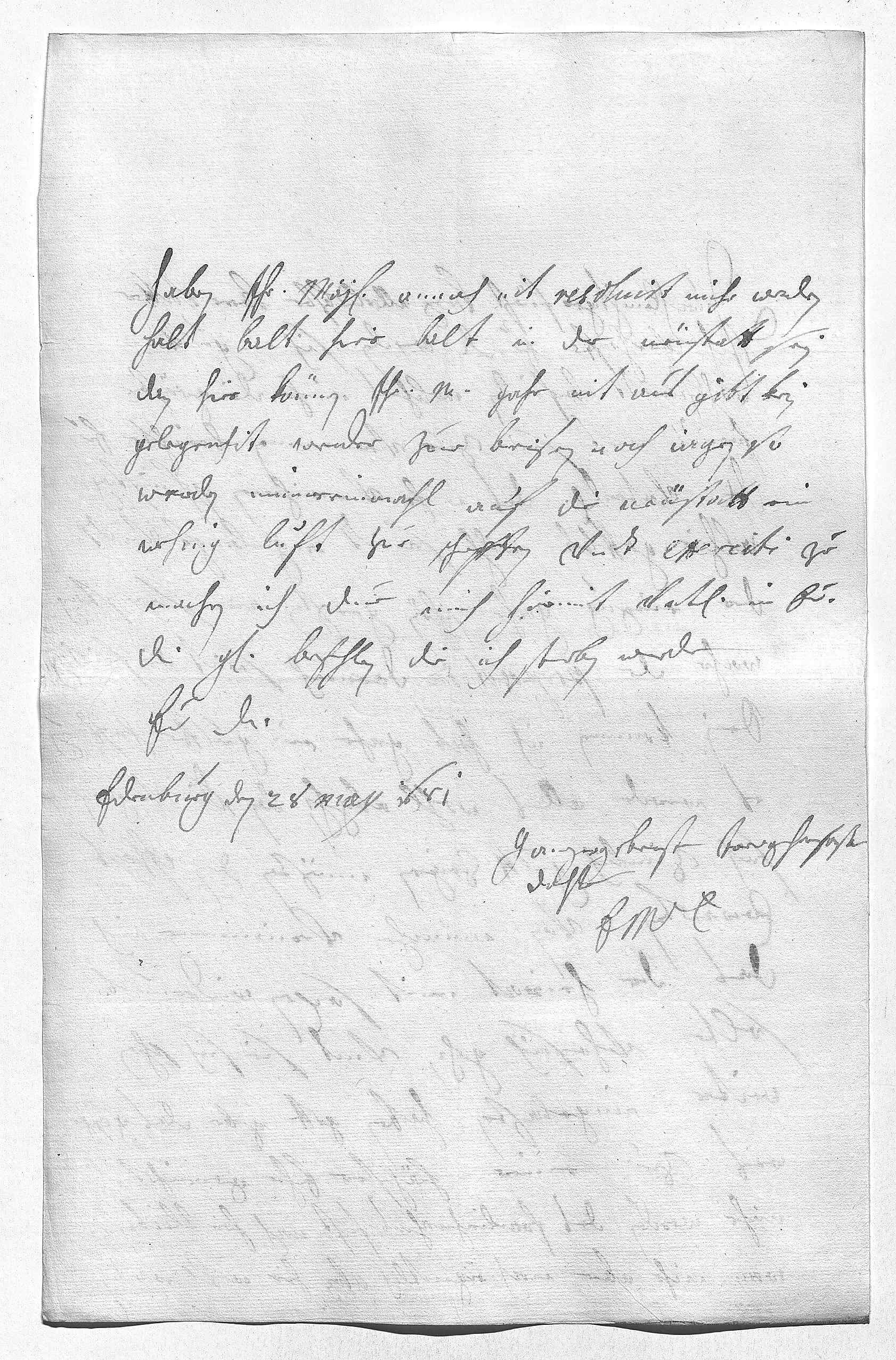 0019haben ihr Mayestät annoch nit resoluirt. Mihr werden 0020halt balt hier, balt in der Neüstatt sein, 0021dan hier können ihr Mayestät gahr nit aus, gibt kein 0022gelegenheit weder zue beisen noch iagen, so 0023werden immereinmahl auf die Neüstatt, ein 0024wehnig luft zue schepffen vndt exerciti zue 0025machen. Ich due mich hiermit vnterdehnigst in ewer 0026Durchlaucht gnade befehlen, die ich sterben werde 0027ewer Durchlaucht 0028ganzergebenste trewgehorsamste 0029dochter 0030EMT 0031Edenburg den 28 maij 1681