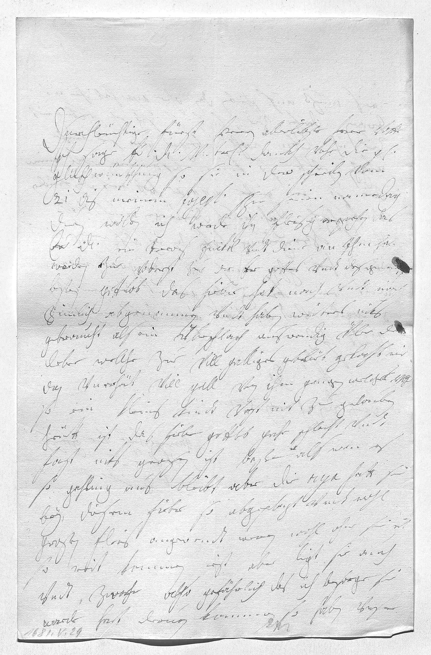 0001Durchleüchtiger Fürst, herz allerliebster herr vatter 0002Ich sage ewer Durchlaucht vnterdehnigsten dankh vohr die gnädige 0003glükhwüntschung, so sie in dero schreiben vom 000421 dis meinem Josepl zu seinen namedag 0005duen wollen. Ich werde ihn fleisig erziehen, das 0006ewer Durchlaucht ein trewes enikel vndt diener an ihm haben 0007werden, zue voderst zue der er gottes vndt des gemeinen 0008besten. Gottlob das fieber hat nach vndt nach 0009zimlich abgenommen vndt haben weiters niks 0010gebraucht als ein überschlach auswendig über die 0011leber, welche zue vill galliges geblüet gehabt, wie 0012dan vnerhört vill gall von ihm gangen, welches vohr0013so ein kleins kindt vast nit zue glauben. 0014Heütt ist das fieber gottlob gahr schlecht vndt 0015fast niks gewesen, ist beßer, als wan es 0016so gahling aus bleibt. Aber die Aya hatt sie 0017bey diesem fieber so abgeplagt vndt wohl 0018großen fleis angewendt, weren wohl ohne sie nit 0019so weit kommen. Izt aber ligt sie auch, 0020vndt zwahr also gefährlich, das ich besorge, sie 0021werde hart deruon kommen. So haben vnsere