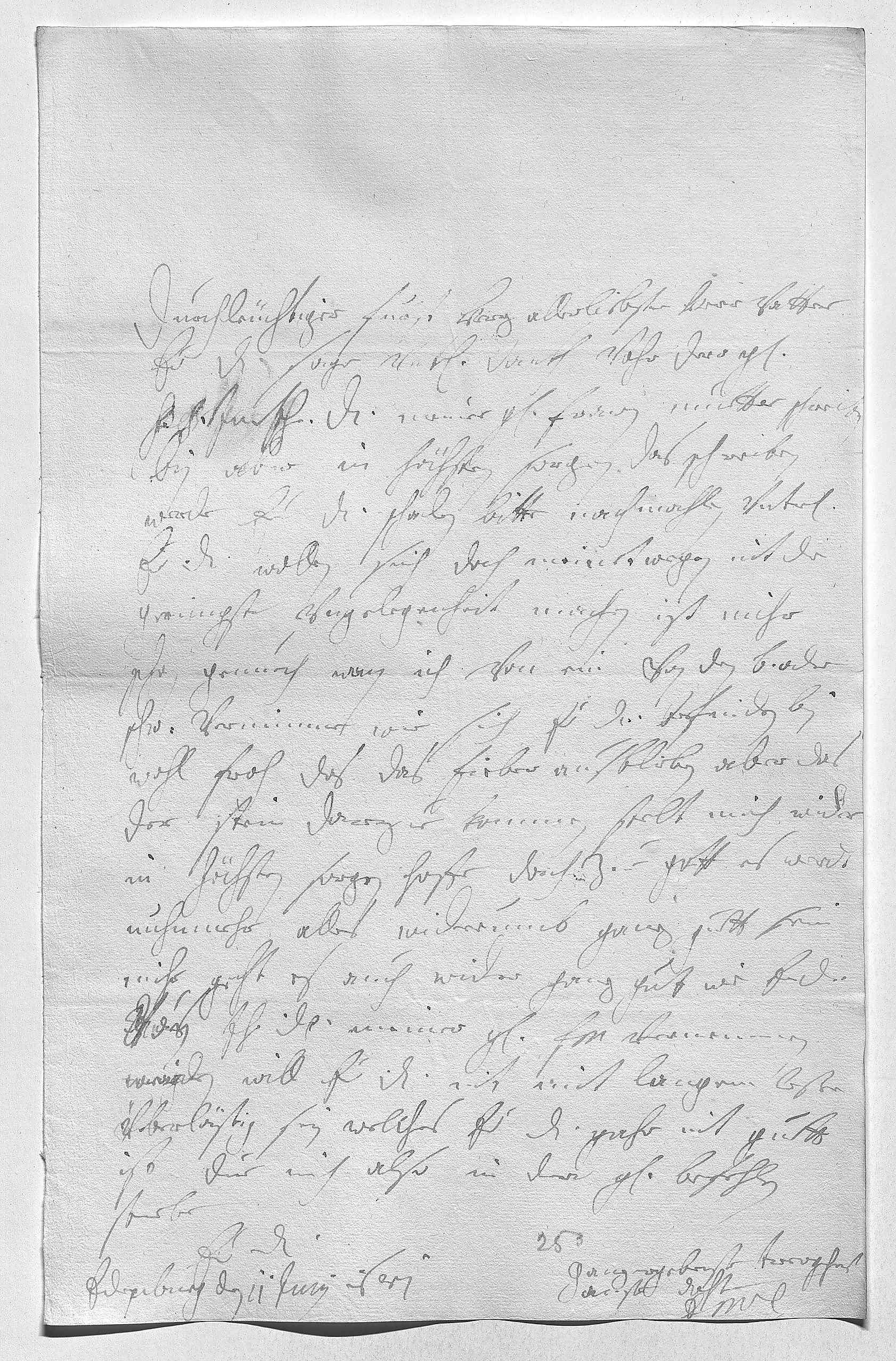 0001Durchleüchtiger Fürst, herz allerliebster herr vatter 0002Ewer Durchlaucht sage vnterdehnigsten dankh vor dero gnade 0003postscriptum in ihr Durchlaucht, meiner geliebsten frawen muetter, schreiben, 0004bin aber in höchsten sorgen, das schreiben 0005werde ewer Durchlaucht schaden. Bitte nachmahlen vnterdehnigst, 0006ewer Durchlaucht wollen sich doch meinetwegen nit die 0007geringste vngelegenheit machen, ist mihr 0008schon genuech, wan ich von ein von den brüdern oder 0009schwestern vernimme, wie sich ewer Durchlaucht befinden. Bin 0010wohl froh, das das fieber ausblieben, aber das 0011der stein darzue kommen, stelt mich wider 0012in höchsten sorgen. Hoffe doch zue gott, es werdt 0013nuhnmehr alles widerumb ganz guett sein. 0014Mihr geht es auch wider ganz gut, wie ewer Durchlaucht 0015von ihr Durchlaucht meiner geliebsten frau mutter vernemmen 0016werden. Will ewer Durchlaucht nit mit langem leßen 0017überlästig sein, welches ewer Durchlaucht gahr nit guett 0018ist. Due mich also in dero gnade befehlen, 0019sterbe 0020ewer Durchlaucht 0021ganz ergebenste trewgehors- 0022amste dochter 0023EMT 0024Edenburg den 11 junij 1681