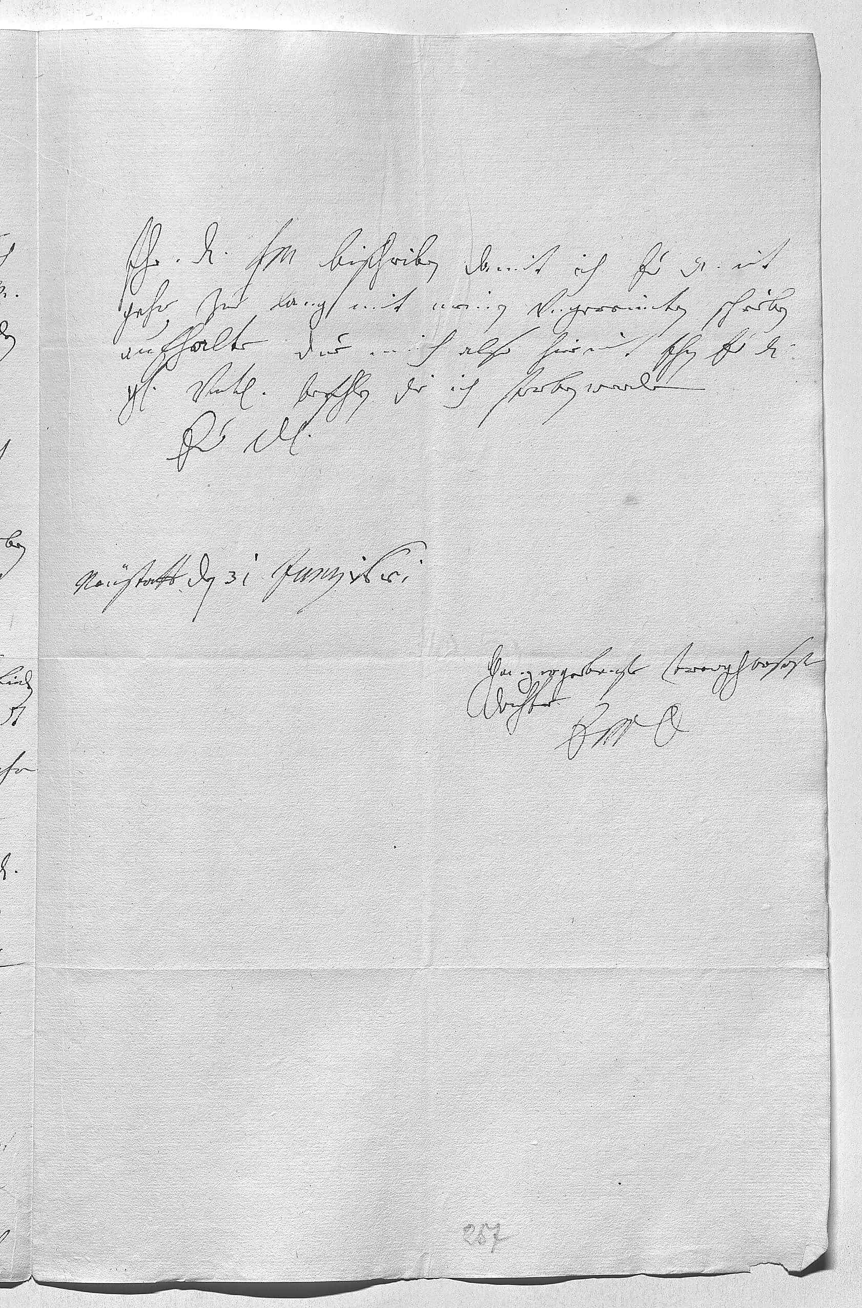 0046ihr Durchlaucht fraw mutter bischriben, damit ich ewer Durchlaucht nit 0047gahr zue lang mit meinem vngereimten schreiben 0048aufhalte. Due mich also hiermit ihn ewer Durchlaucht 0049gnade vnterdehnigst befehlen, die ich sterben werde 0050ewer Durchlaucht 0051ganzergebenste trewgehorsamste 0052dochter 0053EMT 0054Neüstatt den 31 junij 1681