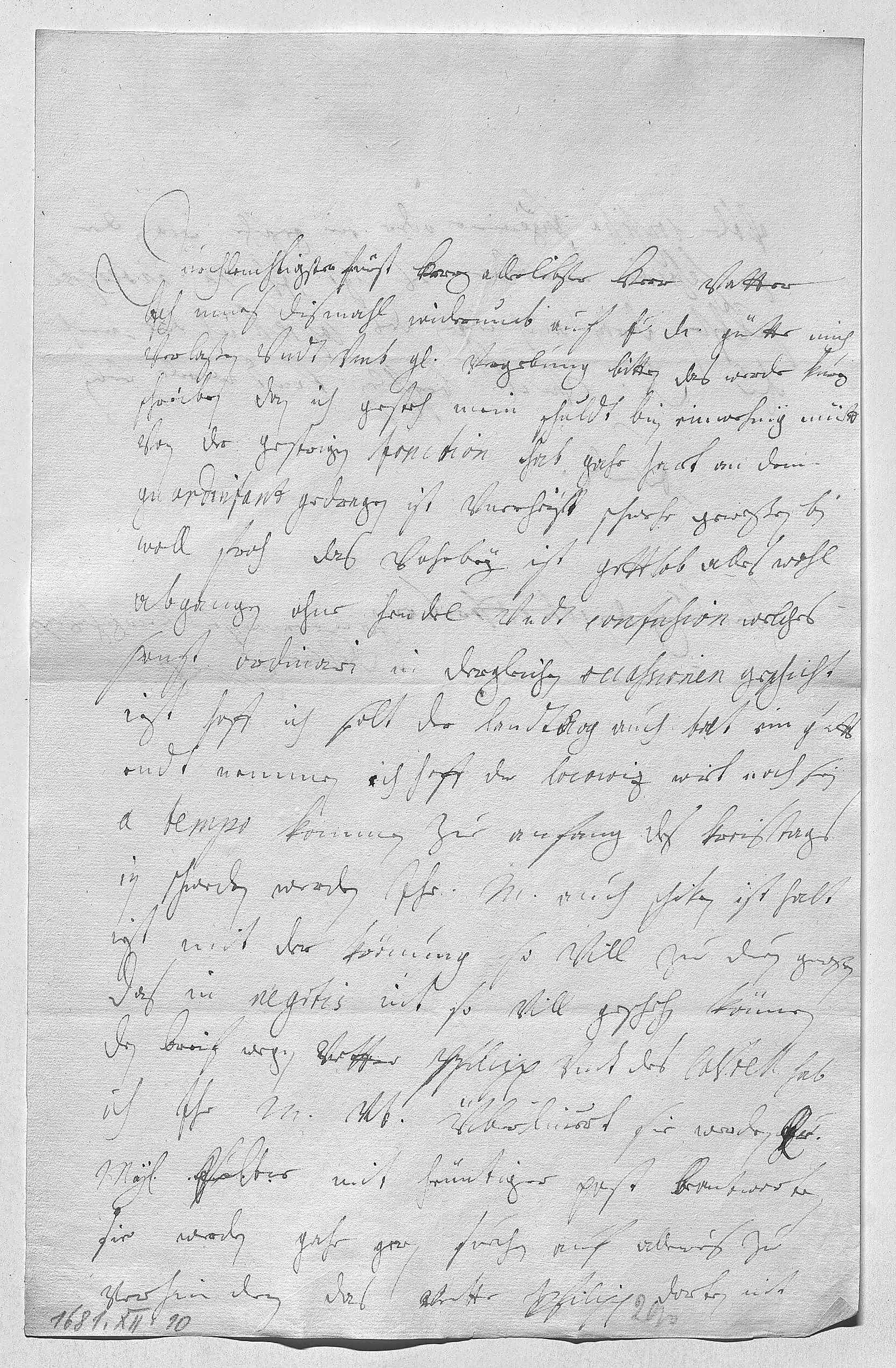 0001Durchleuchtigster Fürst, herz allerliebster herr vatter 0002Ich mues dismahl widerumb auf ewer Durchlaucht güette mich 0003verlaßen vndt umb gnädige vergebung bitten, das werde kurz 0004schreiben, dan ich gesteh mein schuldt, bin einwehnig müdt 0005von der gestrigen fonction. Hab gahr hart an dem 0006guardinfant gedragen, ist vnerhörst schwehr geweßen, bin 0007woll froh, das vohrbey ist. Ist gottlob alles wohl 0008abgangen, ohne hendel vndt confusion, welches 0009sonst ordinari in dergleichen occasionen geschicht. 0010Izt, hoff ich, solt der landtdag auch balt ein guetts 0011endt nemmen. Ich hoff, der Locowiz wirt noch sein 0012a tempo kommen zue anfang des kreistags. 0013In Schweden werden ihr Mayestät auch schiken, ist halt 0014izt mit der krönung so vill zue duen geweßen, 0015das in negotis nit so vill geschehn können. 0016Den brief wegen vetter Pfilipp vndt des Castell hab 0017ich ihr Mayestät vnterdehnigst überliuert, sie werden ewer 0018Mayestät selber mit heüntiger post beantworten. 0019Sie werden gahr gern suechen auf alleweis zue 0020verhindern, das vetter Pfilipp dorten nit