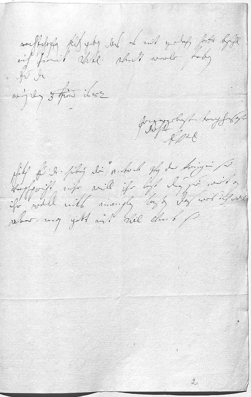 0042rechtschaffen fils geben, das es nit gedahn hatt. Befihl 0043mich hiemit vnterdehnigst vndt werde sterben 0044ewer Durchlaucht 0045ganz ergegebenste trewgehorsamste 0046dochter 0047EMT 0048Wien den 3 jiener 16820049Schikh ewer Durchlaucht hiebey die antwort von der Königin . Sie 0050verschpricht mihr, sie will ihr best duen. Sie wirt an 0051ihr woll niks manglen laßen, das weis ich woll, 0052aber man gibt nit vill vmb sie.