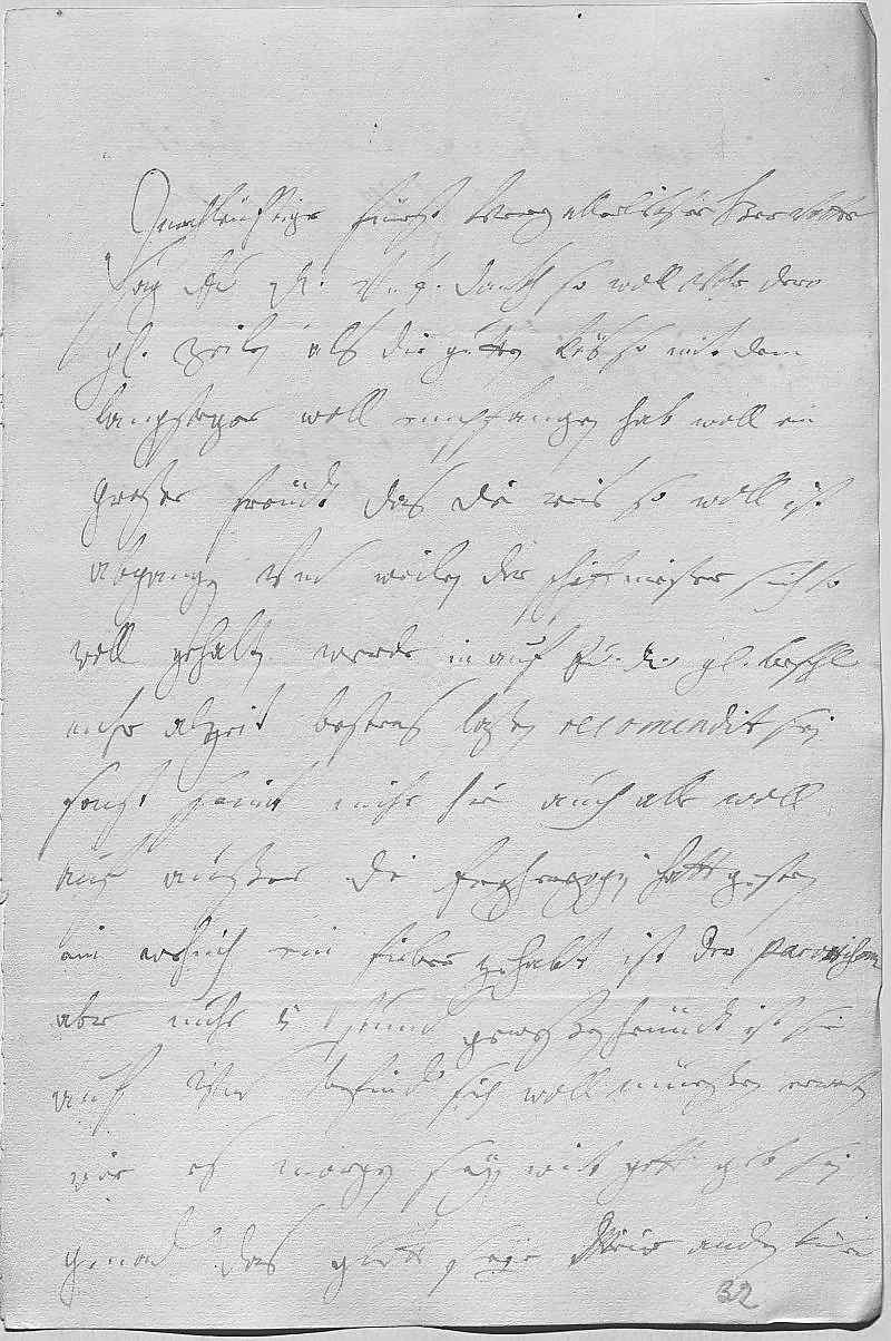 0001Durchleüchtiger Fürst, herz allerliebster herr vatter 0002Sag ewer Durchlaucht vnterdehnigsten dankh, so woll vohr dero 0003gnädige zeilen als die gutten käs, so mit dem 0004Langsteger woll empfangen. Hab woll ein 0005großer freüdt, das die reis so woll ist 0006abgangen, vnd weilen der schiffmeister sich so 0007woll gehalten, werde in auf ewer Durchlaucht gnädigen befehl 0008mihr alzeit bestens laßen recomendirt sein. 0009Sonst seint mihr hie auch alle woll 0010auf außer die Erzherzogin, hatt gestern 0011ein wehnich ein fieber gehabt, ist der paroxismus0012aber nuhr 5 stund geweßen. Heündt ist sie 0013auf vnd befind sich woll, müeßen erwarten, 0014wie es morgen seyn wirt, gott geb sein 0015genad, das gutt seye. Mein andren kinder