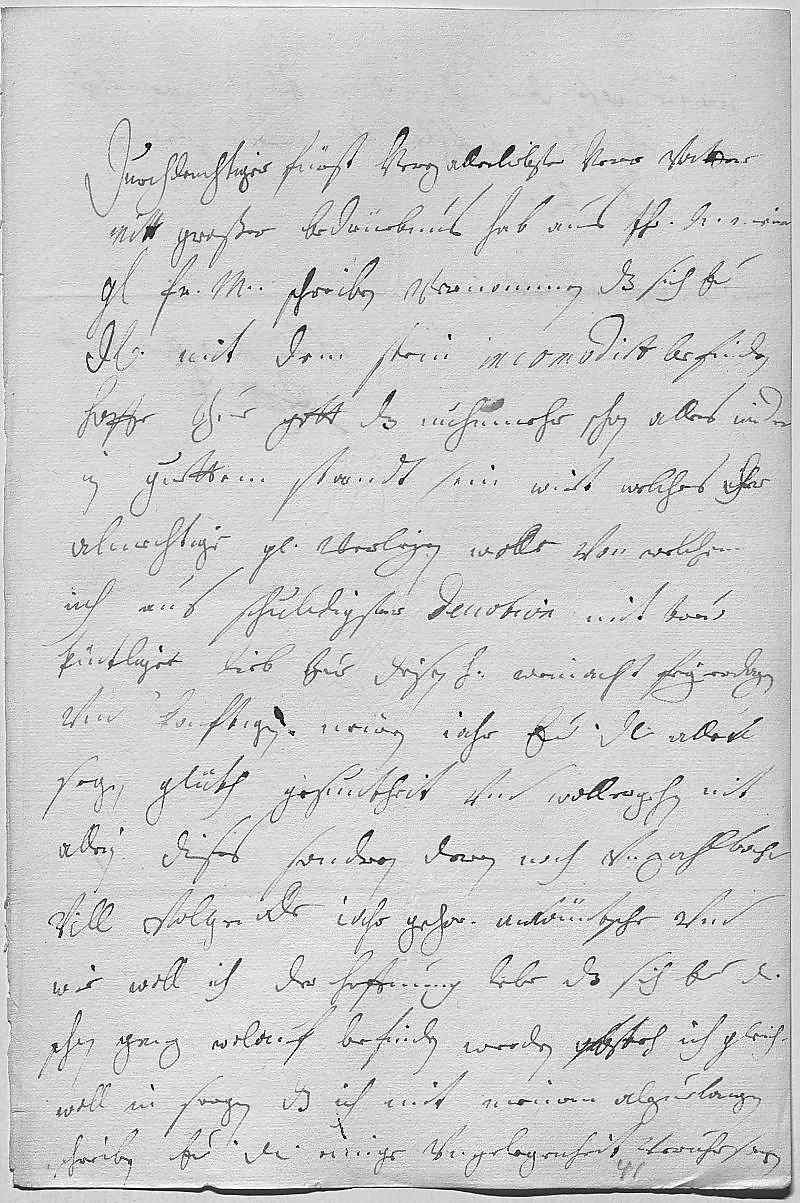 0001Durchleüchtiger Fürst, herz allerliebster herr vatter 0002Mitt großer bedrüebnus hab aus ihr Durchlaucht, mein 0003geliebsten fraw mutter, schreiben vernommen, das sich ewer 0004Durchlaucht mit dem stein incomodirt befinden. 0005Hoffe zue gott, das nuhnmehr schon alles wider 0006in guettem standt sein wirt, welches der 0007almechtige gnädigst verleyen wolle, von welchem 0008ich aus schuldigster deuotion mit trew 0009kintliger lieb zue diesen heiligen weinacht feyerdagen 0010vnd konftigen newen iahr ewer Durchlaucht alles 0011segen, glükh, gesuntheit vnd wollergehn nit 0012allein dises, sondern deren noch vnzahlbahr 0013vill volgende iahr gehorsamst anwüntsche. Vnd 0014wie woll ich der hoffnung lebe, das sich ewer Durchlaucht 0015schon ganz wolauf befinden werden, ab steh ich gleich 0016woll in sorgen, das ich mit meinem alzuelangen 0017schreiben ewer Durchlaucht einige vngelegenheit veruhrsachen