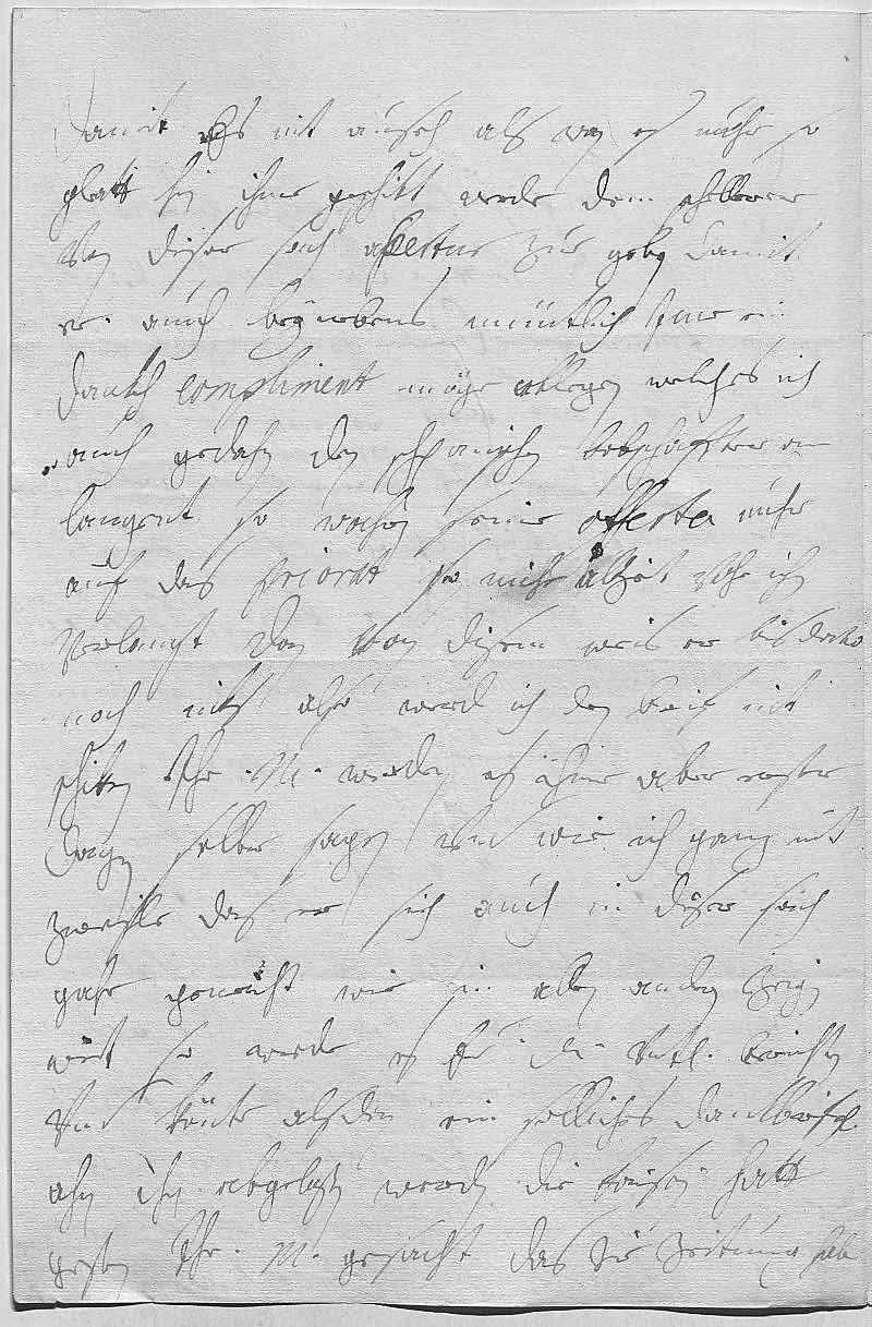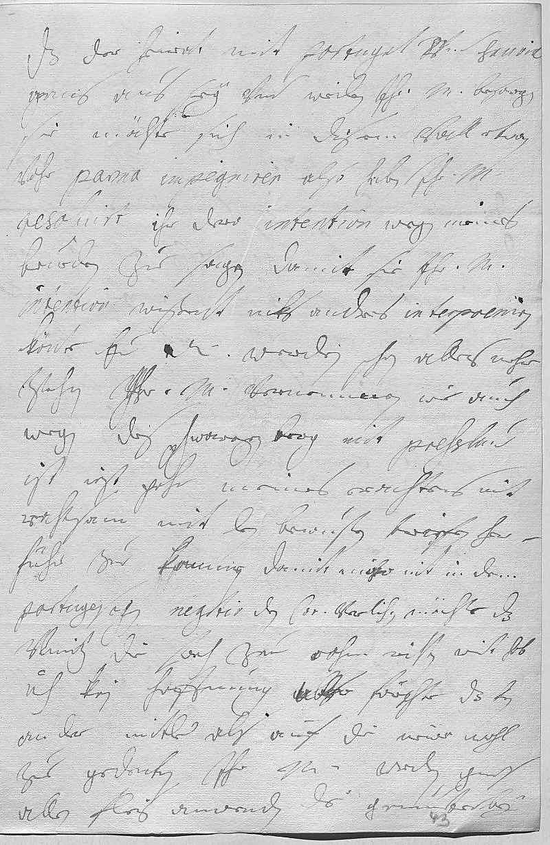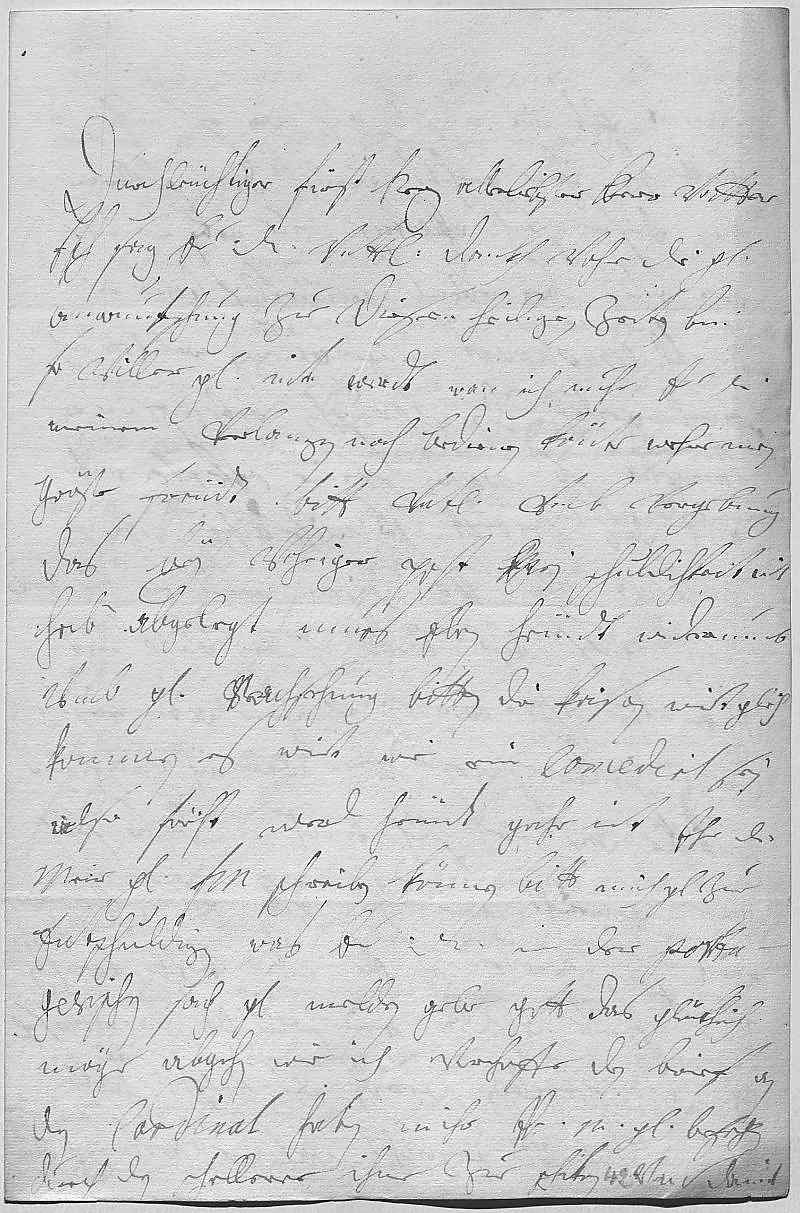0001Durchleüchtiger Fürst, herz allerliebster herr vatter 0002Ich sag ewer Durchlaucht vnterdehnigsten dankh vohr die gnädigste 0003anwüntschung zue diesen heiligen zeiten. Bin 0004so viller gnaden nit werdt. Wan ich nuhr ewer Durchlaucht 0005meinem verlangen nach bedienen könte, wehre mein 0006gröste freüdt. Bitt vnterdehnigst vmb vergebung, 0007das bey vohriger post mein schuldichkeit nit 0008hab abgelegt. Mues eben heündt widerumb 0009vmb gnädigste nachsehung bitten, die Kaiserin wirt gleich 0010kommen. Es wirt wie ein comediel sein, 0011also förcht, werd heündt gahr nit ihr Durchlaucht, 0012meiner geliebsten fraw mutter, schreiben können, bitt mich gehorsamst zu 0013entschuldigen. Was ewer Durchlaucht in der portu- 0014gesischen sach gnädigst melden, gebe gott, das glükhlich 0015möge abgehn, wie ich verhoffe. Den brief an 0016den Cardinal haben mihr ihr Mayestät gnädigst befohlen 0017durch den Schellerer ihme zue schiken vnd damit