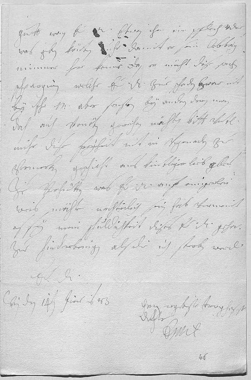 0075guett, wan ewer Durchlaucht etwan ihm ein pflech oder 0076was geben könten, nuhr damit er sein lebtag 0077nimmer her keme, dan er möcht dise sachen 0078schpargirn, welche ewer Durchlaucht zue schaden, zwar nit 0079bey ihr Mayestät, aber sonsten bey andern, deren man 0080doch auch vonöten, gereichen möchten. Bitt vnterdehnigst, 0081mihr dise freyheit nit in vngenaden zue 0082vermerken, geschicht aus kintliger lieb um aller 0083zue verhütten, was ewer Durchlaucht auf einigerlei 0084weis möchte nachteilich sein. Hab vermeint, 0085es sey mein schuldichkeit, dises ewer Durchlaucht gehorsamst 0086zue hinderbringen, als die ich sterben werde 0087ewer Durchlaucht 0088ganz ergebenste trewgehorsamste 0089dochter 0090EMT 0091Wien den 14ten jiener 1683