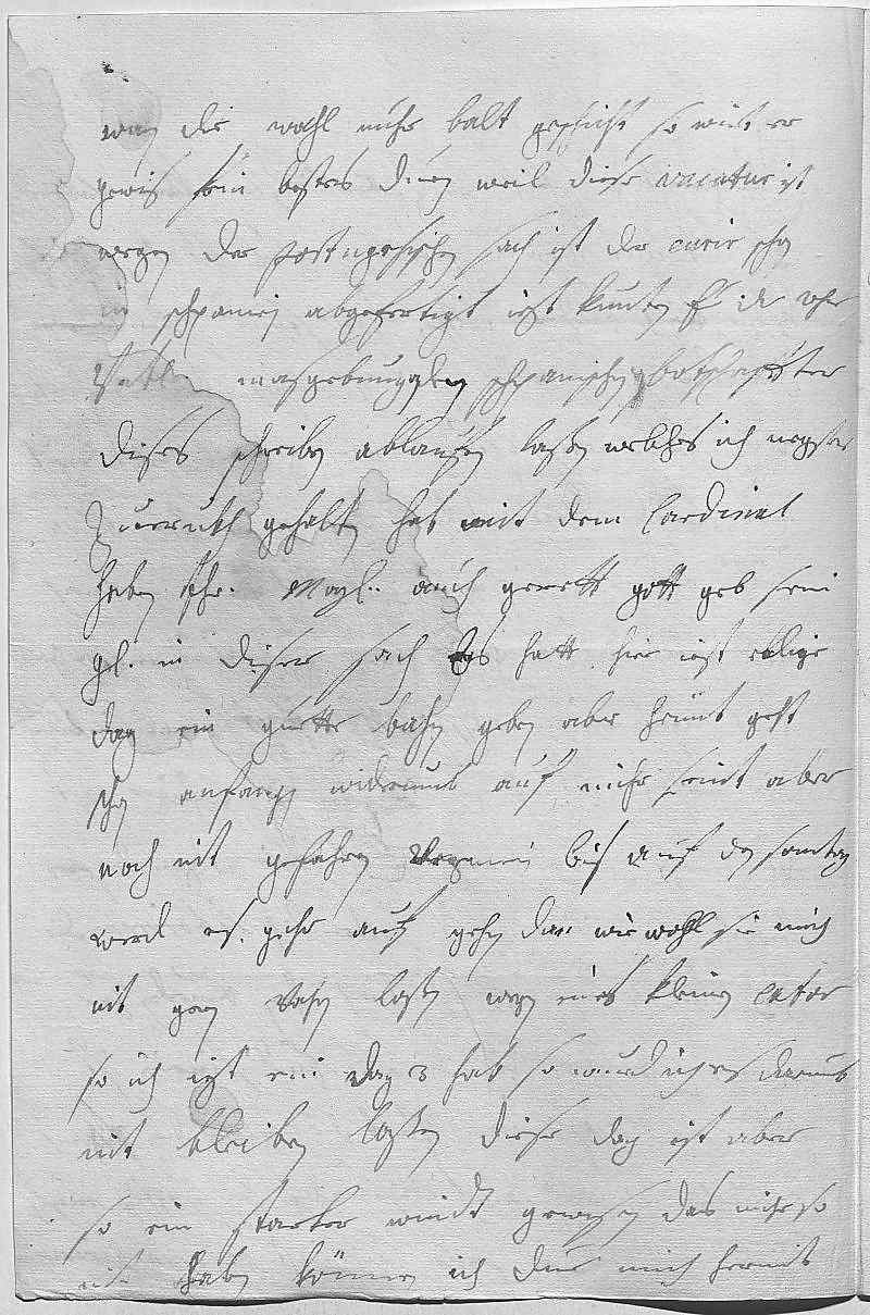 0018Wan die wahl nuhr balt geschicht, so wirt er 0019gewis sein bestes duen, weil diese vacatur ist. 0020Wegen der portugesischen sach ist der curir schon 0021in Schpanien abgefertigt, iezt kunten ewer Durchlaucht ohne 0022vnterdehnigste masgebung an den schpanischen botschaffter 0023dises schreiben ablaufen laßen, welches ich negstens 0024zuerukh gehalten hab. Mit dem Cardinal 0025haben ihr Mayestät auch geret, gott geb sein 0026gnade in diser sach. Es hatt hier izt etlige 0027dag ein guette bahn geben, aber heünt geht 0028schon anfangen widerumb auf. Mihr seint aber 0029noch nit gefahren, vermein bis auf den sonntag 0030werd es gahr auf gehn, dan wie wohl sie mich 0031nit gern vahrn laßen wegen eines kleinen catar, 0032so ich iezt ein dag 3 hab, so wurd ich es darumb 0033nit bleiben laßen. Diese dag ist aber 0034so ein starker windt gewesen, das mihr so 0035nit haben können. Ich due mich hirmit