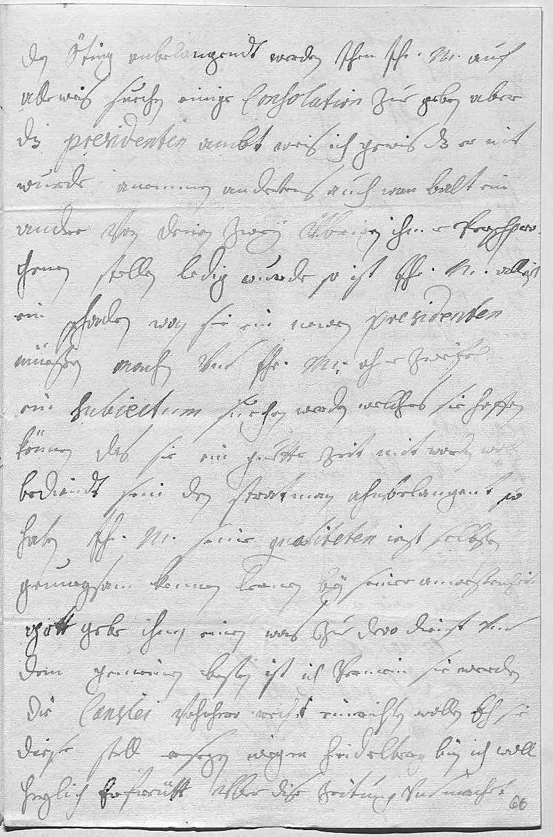 0035Den Öting anbelangendt, werden ihen ihr Mayestät auf 0036alle weis suechen einige consolation zue geben, aber 0037das presidenten ambt weis ich gewis, das er nit 0038wurde anemmen, andertens auch, wan balt ein 0039andre von denen zwey übrigen ihme verschpro- 0040chenen stellen ledig wurde, so ist ihr Mayestät allzeit 0041ein schaden, wan sie ein newen presidenten 0042müeßen machen, vnd ihr Mayestät ohne zweifel 0043ein subiectum suechen werden, welches sie hoffen 0044können, das sie ein guette zeit mit worden woll 0045bediendt sein. Den Stratman ahnbelangent, so 0046haben ihr Mayestät seine qualiteten jezt selbsten 0047genuegsam kennen lernen bey seiner anweßenheit, 0048gott gebe ihnen einen, was zue dero dienst vnd 0049dem gemeinen besten ist. Ich vermein, sie werden 0050die canslei vohrhero recht einrichten wollen, eh sie 0051diese stell ersezen. Wegen Heidelberg bin ich woll 0052herzlich erfreütt vber dise zeitung, vnd machet