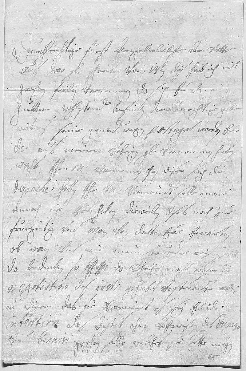 0001Durchleüchtiger Fürst, herz allerliebster herr vatter 0002Aus dero gnädigsten schreiben vom 13ten dis hab ich mit 0003großen freiden vernommen, das sich ewer Durchlaucht in 0004guettem wohlstand befinden, der almechtige gebe 0005weiters seine genad. Wegen Portugal werden ewer 0006Durchlaucht aus meinem vohrigen gnädigst vernommen haben, 0007wahs ihr Mayestät vermeinen in diser sach. Die 0008depeche, haben ihr Mayestät vermeindt, solle man 0009annoch nit vortschiken, dieweil dises noch zue 0010fruezeitig vnd man von dorten zue erwarten, 0011ob, wan vnd wie mein brueder reisen soll. 0012Das bedenken, so ihr Mayestät das vohrige mahl wider die 0013negotiation des Iusti gehabt, bestuendte allein 0014in disem, das sie vermeint, es sey ewer Durchlaucht 0015intention, das dißes ohne vohrwißen des Durazo 0016vnd Bonuisi geschen solle, welches sie hette mögen