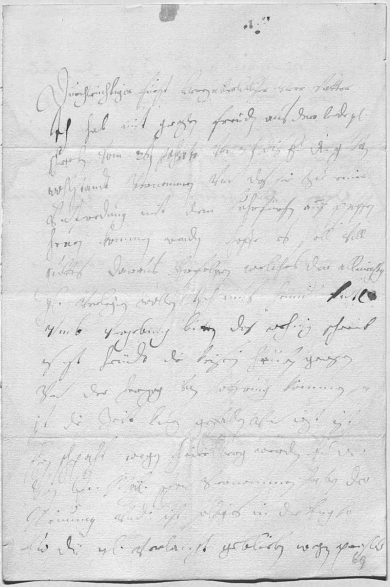 0001Durchleüchtiger Fürst, herz allerliebster herr vatter 0002Ich hab mit großen freüden aus dero beide gnädigste 0003schreiben vom 26ten passato vnd 2ten dis ewer Durchlaucht guetten 0004wohlstandt vernommen, vnd das sie zue einer 0005vnteredung mit dem Cuhrfürsten auf Pfaffen- 0006houen kommen werden. Hoffe, es soll vill 0007guetts daraus erfolgen, welches der almechtig 0008gnädigst verleyen wollen. Ich mus heünd vnterdehnigst 0009vmb vergebung bitten, das wehnig schreib. 0010Es ist heüdt die Keiserin herüben gewesen 0011vnd der Herzog von Lottring kommen, so 0012ist die zeit kurz gefallen, vnd izt ist 0013schon schpaht. Wegen Heidelberg werden ewer Durchlaucht 0014von ihr Mayestät schon vernommen haben dero 0015meinung, vnd ist solliges in der eng, so 0016ewer Durchlaucht gnädigst verlangt, geblieben. Wegen Preslaw