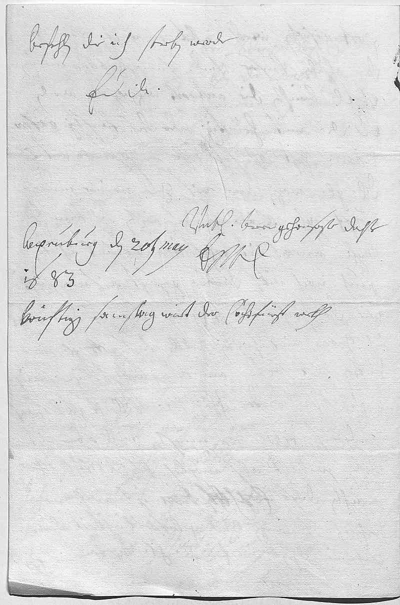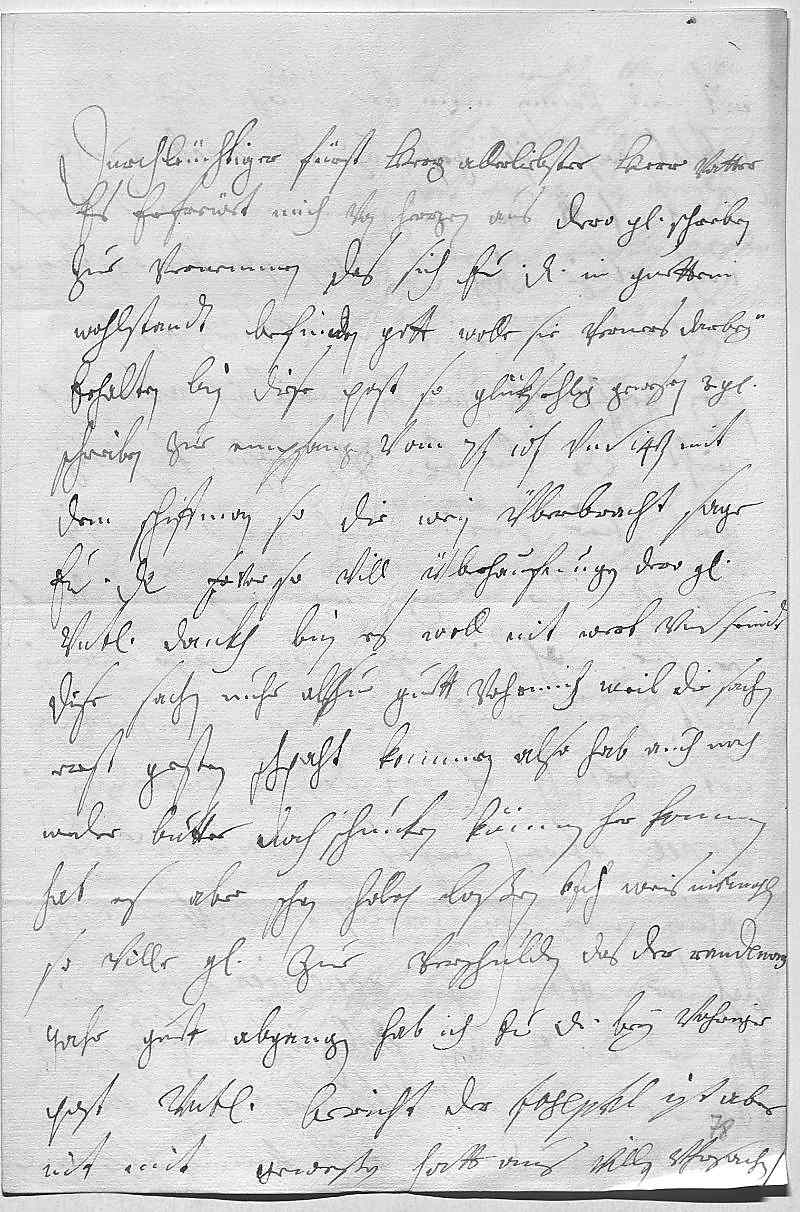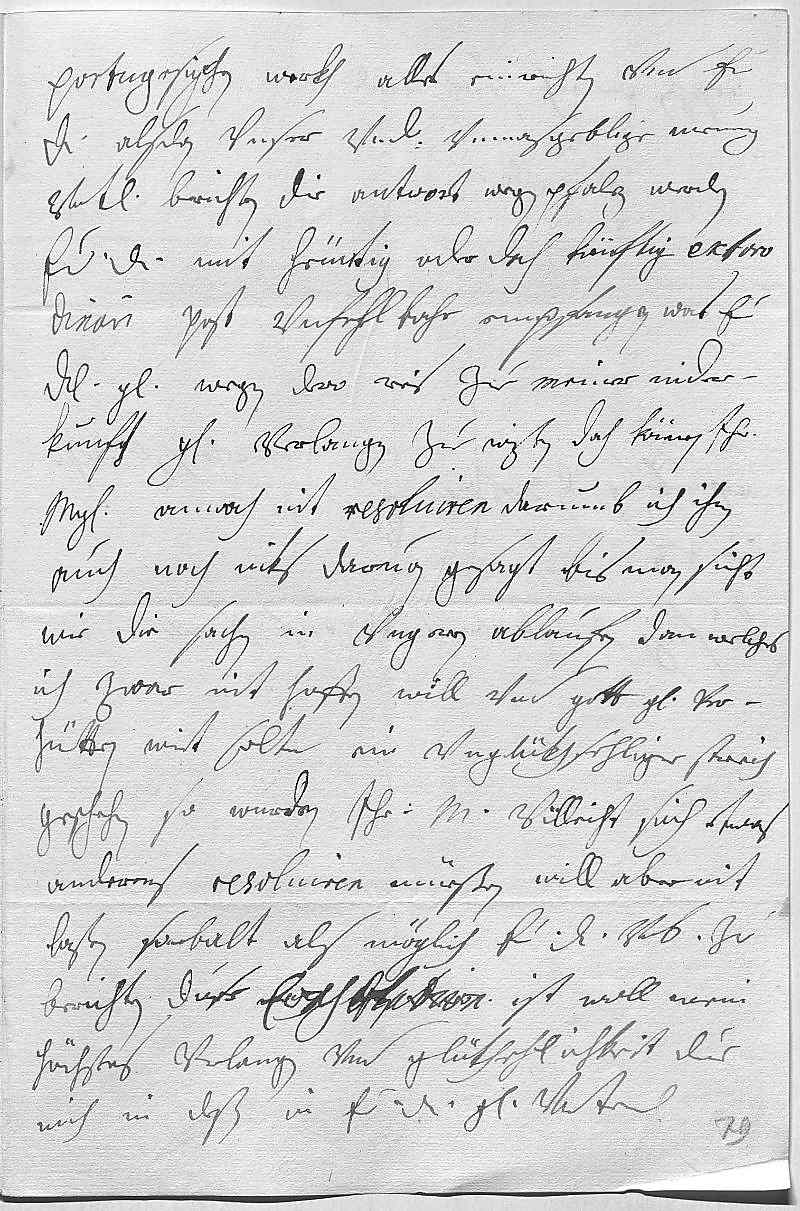 0001Durchleüchtiger Fürst, herz allerliebster herr vatter 0002Es erfrewet mich von herzen, aus dero gnädigem schreiben 0003zue vernemmen, das sich ewer Durchlaucht in guettem 0004wohlstandt befinden, gott wolle sie verners darbey 0005erhalten. Bin diese post so glüksehlig gewesen, 3 gnädige 0006schreiben zue empfangen, vom 7ten, 10ten vnd 14ten mit 0007dem schiffman, so die wein überbracht. Sage 0008ewer Durchlaucht so vor so vill überhaufungen dero gnade 0009vnterdehnigsten dankh, bin es woll nit wert, vnd seindt 0010dise sachen nuhr alzue guett vohrmich. Weil die sachen 0011erst gestern schpaht kommen, also hab auch noch 0012weder butter noch schunken können her kommen, 0013hab es aber schon holen laßen. Ich weis niemahlen 0014so ville gnade zue verschulden. Das der rendeuouz 0015gahr guett abgangen, hab ich ewer Durchlaucht bey vohriger 0016post vnterdehnigst bericht. Der Josephl ist aber 0017nit mit geweßen, hatt aus villen vhrsachen
